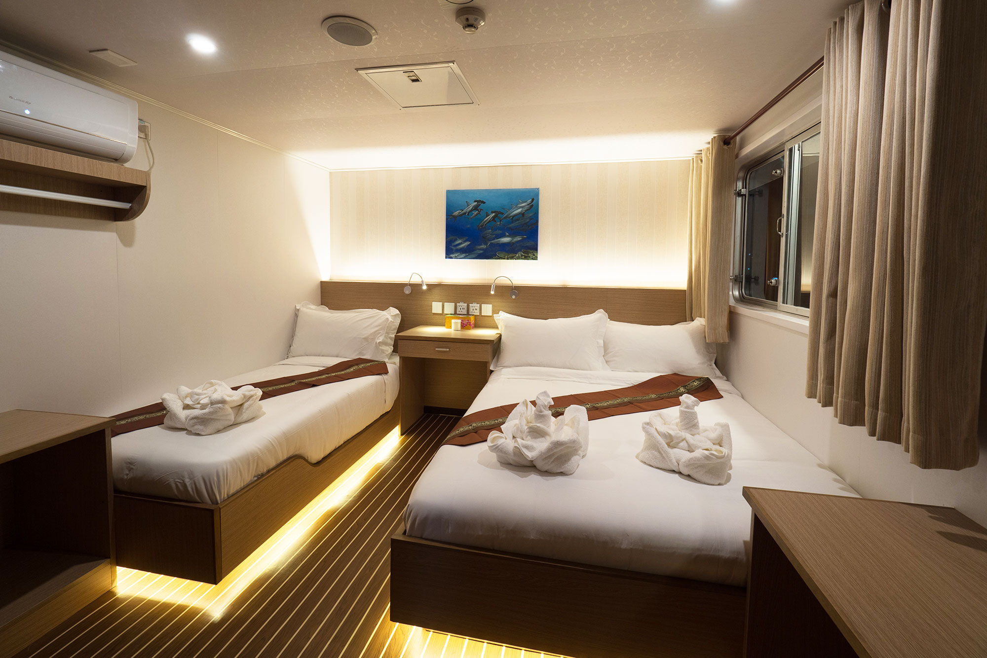 探索印度尼西亚群岛中一些最具多样性的地区,New White Manta潜水船提供了在安汶(Ambon)、班达海(Banda Sea)、拉贾安帕特(Raja Ampat)和莱姆贝(Lembeh)的绝佳潜水行程,并在满都拉(Manado)地区探索巡航。作为该地区最大的专用潜水船之一,令人印象深刻的46米长度使White Manta游艇为20位客人提供14间精美装饰的舱房。每个卧舱平均20平方米,设有双人、双床或三人共用床位选择。每间舱房均配有独立卫浴设施、豪华设施和精美的装饰,为您提供家外之家的完美体验。船上的厨师精心准备种类丰富的美味佳肴。每天不少于五餐,美食让饥饿的潜水员满足。大面积的部分遮阳甲板带有躺椅和户外露台,是您放松身心的完美场所。