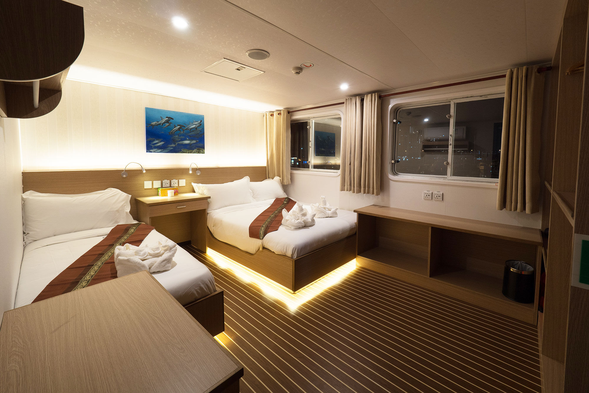 New White Manta由潜水员建造,为潜水员服务,是摄影师的梦想船。配备了适合相机的设施,潜水甲板上有一个宽敞的室外工作台、一个室内干燥相机室和干拍装置。小型潜水组4:1的比例确保摄影师不会错过任何精彩瞬间。宽敞的潜水甲板为穿戴装备和个人装备存储提供了充足的空间,使潜水变得轻松无忧。四艘60马力的小艇确保到达和离开潜水点变得容易。训练有素的船员和潜水导游致力于确保您在印度尼西亚潜水船宿之旅期间的舒适和享受。