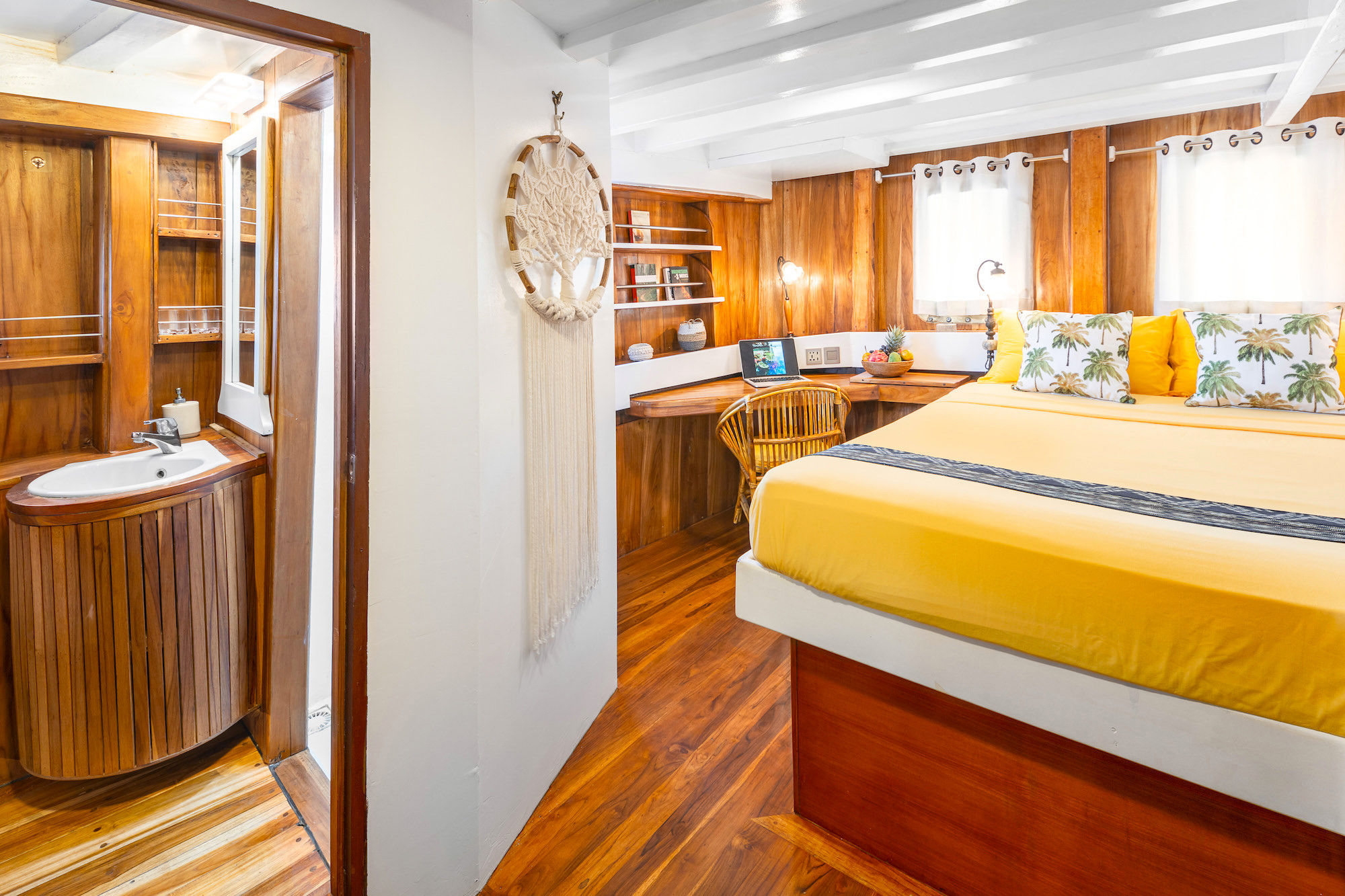 船上,Seahorse采用phinisi风格设计,仅接待16位客人,拥有8间舱房。下层甲板有5间双床舱和1间双人舱,主甲板上有两间海景双人舱。每间舱房都有独立控制的空调、充足的储物空间、带冷热水的独立浴室,提供毛巾、洗浴用品、肥皂、洗发水和牙膏。社交区域包括室内空调休息室和餐饮区,附带娱乐设施和图书馆。在这里提供新鲜制作的西式和当地美食及小吃。日光甲板是潜水间隙或一天结束后放松的理想场所,您可以享受一杯冰饮,欣赏壮丽的印度尼西亚景观。