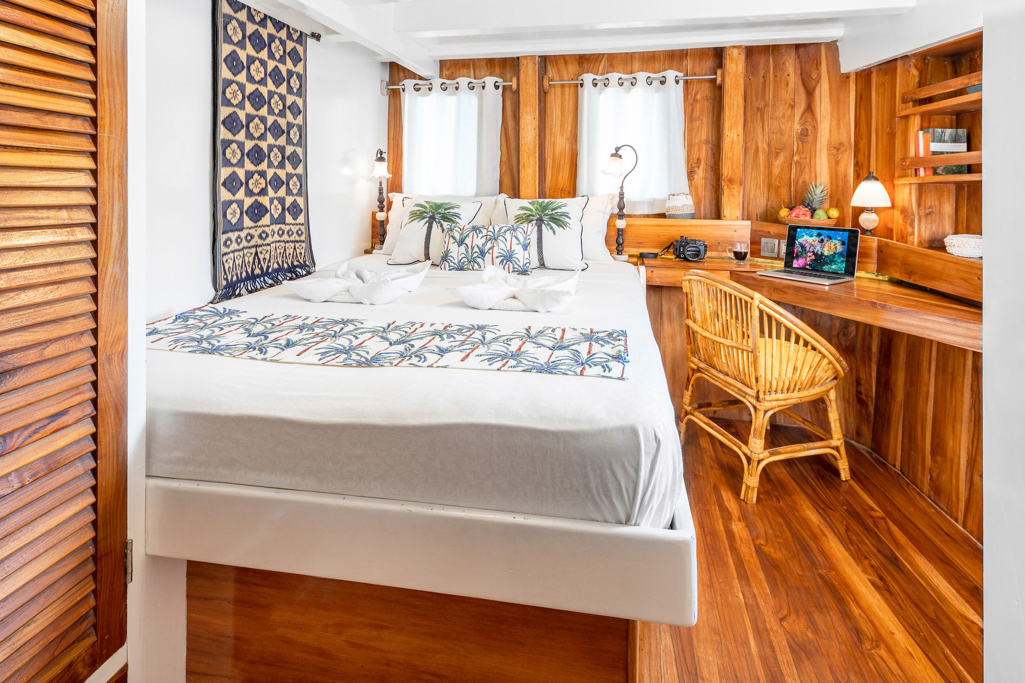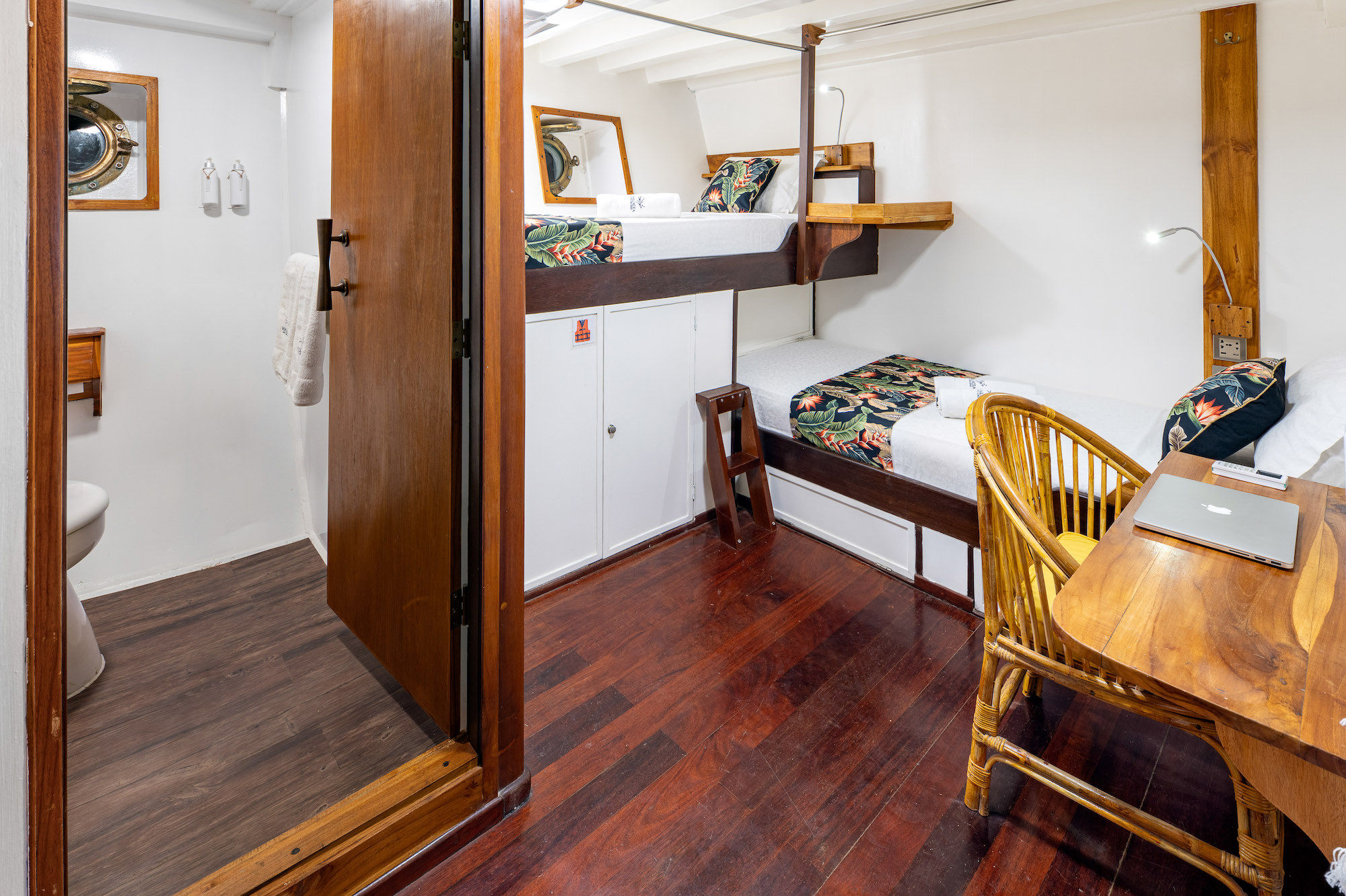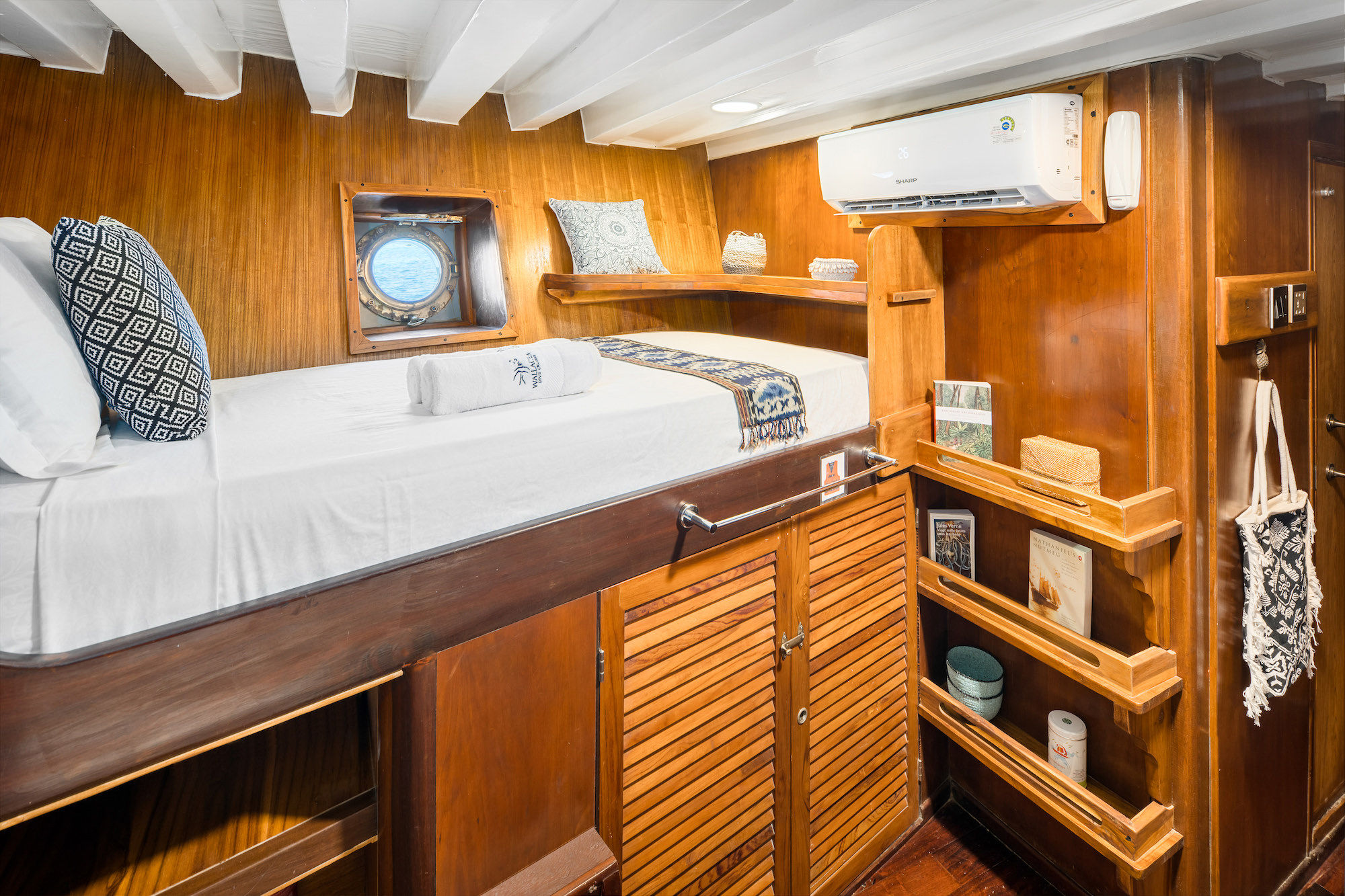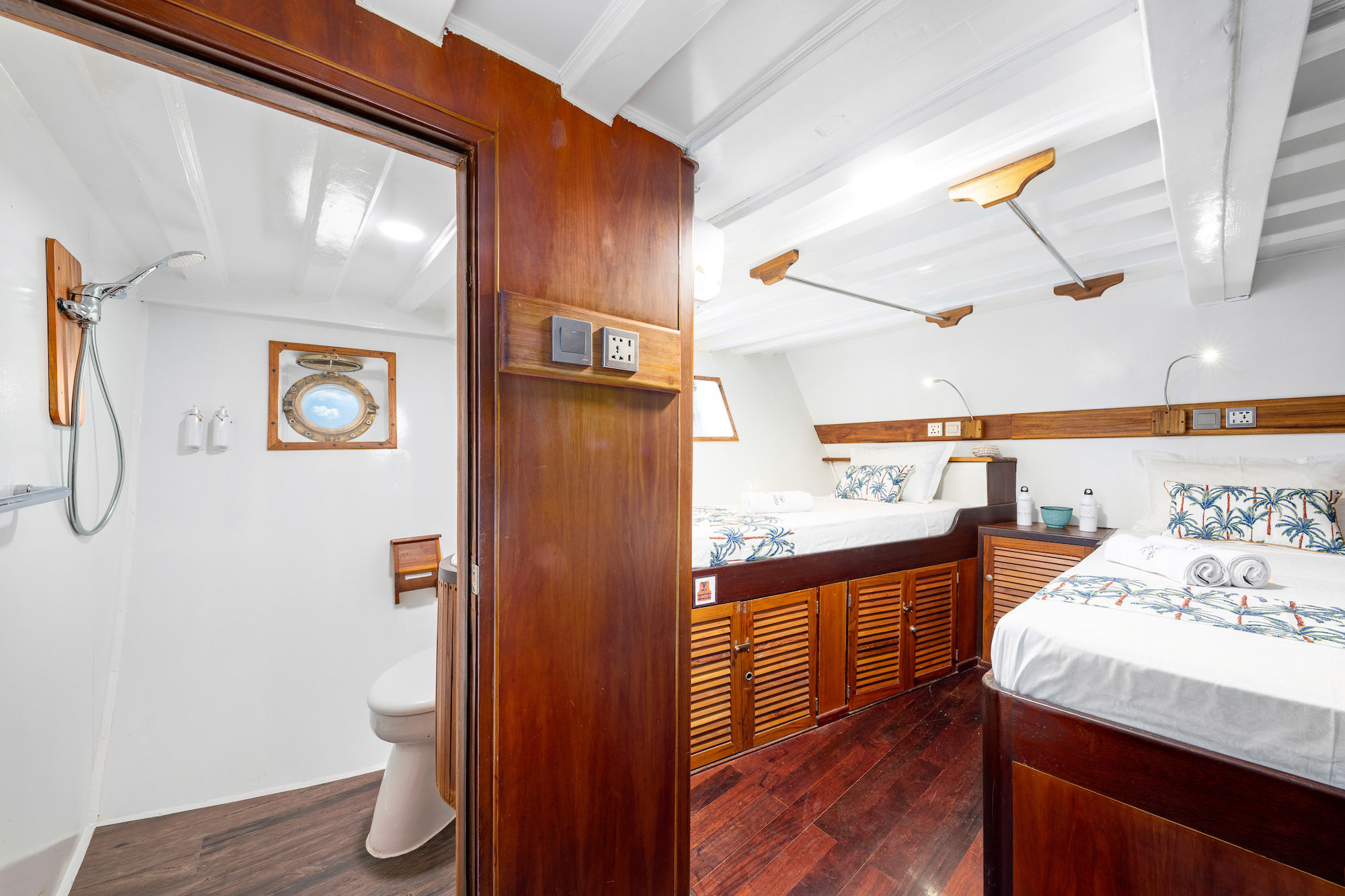 船上,Seahorse采用phinisi风格设计,仅接待16位客人,拥有8间舱房。下层甲板有5间双床舱和1间双人舱,主甲板上有两间海景双人舱。每间舱房都有独立控制的空调、充足的储物空间、带冷热水的独立浴室,提供毛巾、洗浴用品、肥皂、洗发水和牙膏。社交区域包括室内空调休息室和餐饮区,附带娱乐设施和图书馆。在这里提供新鲜制作的西式和当地美食及小吃。日光甲板是潜水间隙或一天结束后放松的理想场所,您可以享受一杯冰饮,欣赏壮丽的印度尼西亚景观。