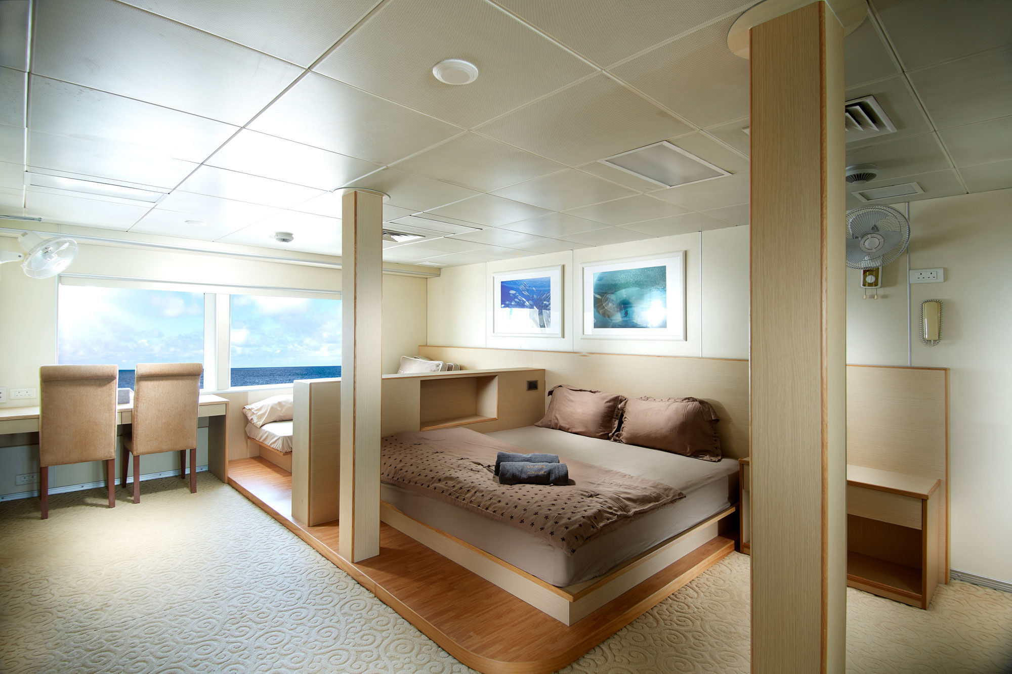 Solitude Adventurer潜水船经过2017年全面翻新,全年在印度尼西亚一些最佳潜水区域提供潜水游船服务。船舱可容纳18名客人,由潜水员为潜水员建造,提供现代舒适和高水平服务。船上有三种舱型,包括1间特等舱,设有特大号床或两张单人床加一张日间床,6间豪华舱配有双床,1间标准四人舱,适合家庭或朋友群体入住。每间舱房都配备了独立浴室,内有冷热水淋浴,以及空调、保险箱、电吹风、浴巾/面巾、淋浴啫喱和洗发水。所有舱房均位于主甲板或上层甲板,并有大型观景窗提供绝美的风景。