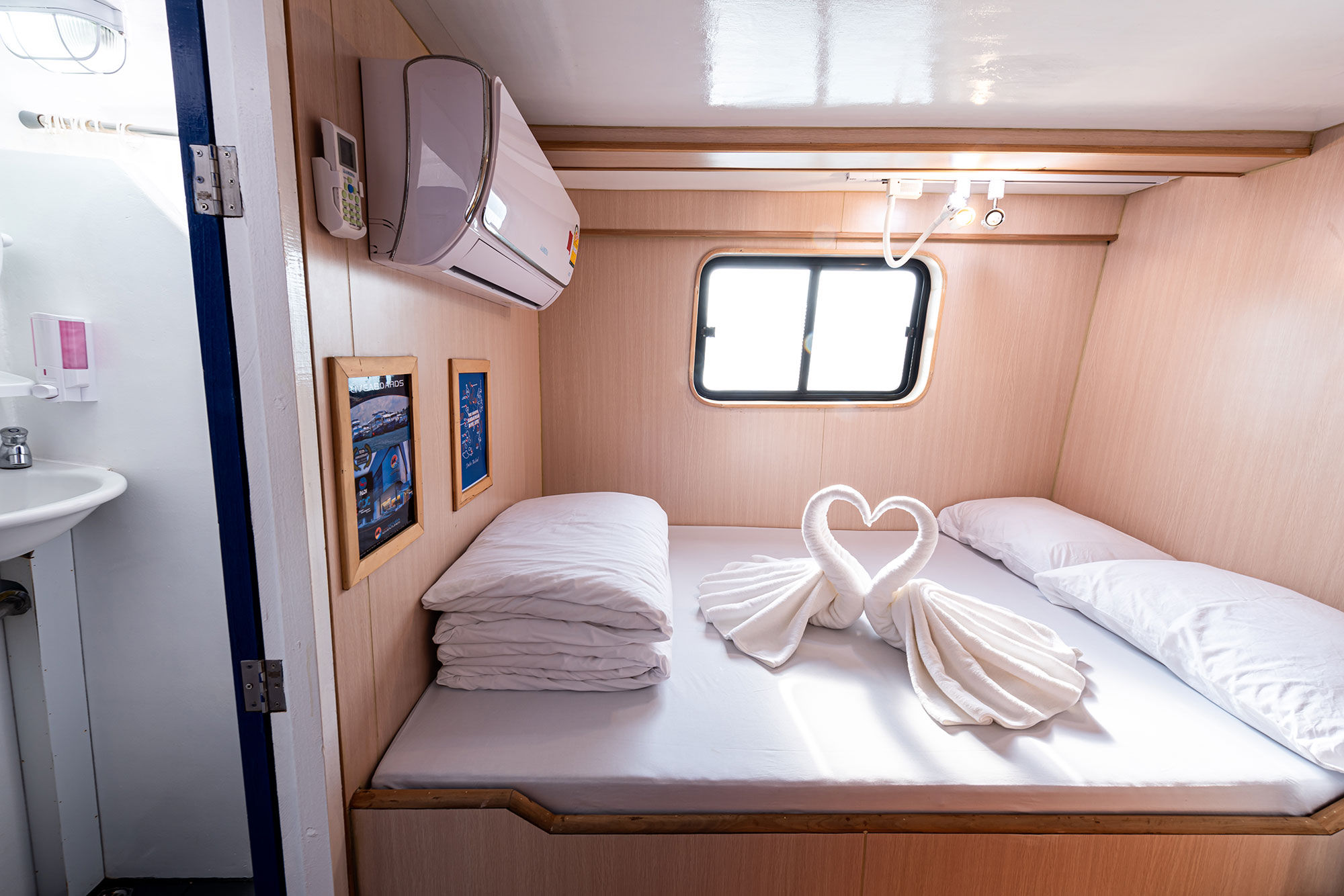 加入Manta Queen 7号潜水船,体验4晚精彩的斯米兰群岛(Similan Islands)潜水之旅,并在船上享受卓越的服务和舒适的环境。Manta Queen 7号拥有10间舱房,可容纳最多24位客人,为游客提供前往斯米兰群岛的舒适旅程。每间舱房均配备空调,卫生设施为公用。潜水期间,游客可以在大型日光甲板上放松休息,或乘坐小艇前往斯米兰群岛其中一个美丽的白色沙滩。休息室配有高清电视可以观看电影,所有餐点均为新鲜烹制,并在露天用餐区以自助形式供应。