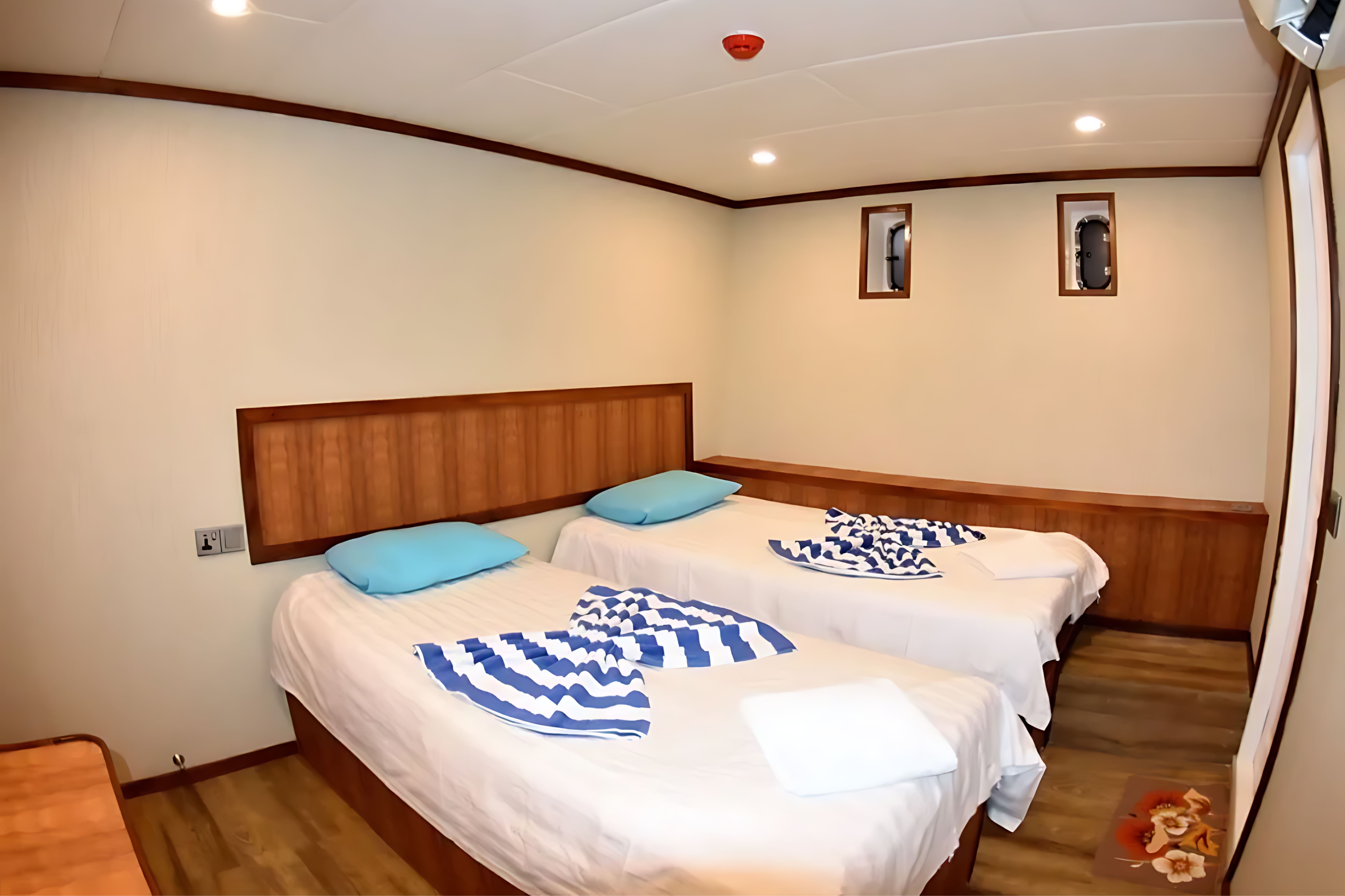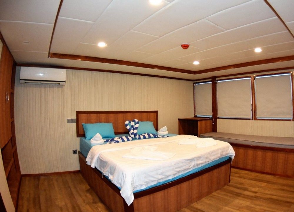 埃姆佩勒·利奥(Emperor Leo)潜水船在马尔代夫(Maldives)全年提供物超所值的船宿潜水体验。船上可容纳24名客人,设有12间带独立浴室和空调的客舱。底层甲板有八间双人或双床客舱,上层甲板有三间双人或双床客舱,还有一个大型行政套房。主甲板上设有大型室内休息室,拥有娱乐区、酒吧和餐厅,通向前部甲板可享受温泉浴缸。上层甲板设有室外露台,可在日落时分享用鸡尾酒,上层甲板还有舒适的躺椅,供潜水间隙日光浴使用。