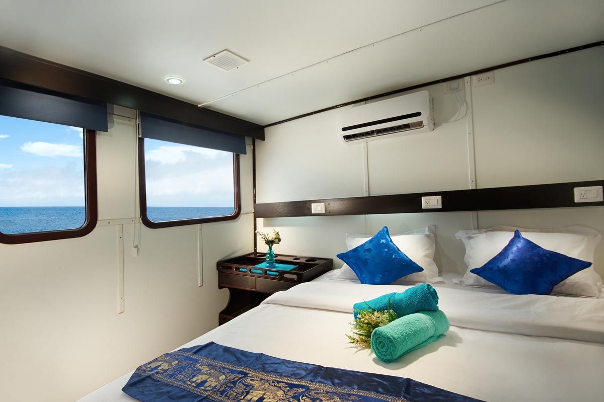 中层甲板设有一个室内休息室和用餐区,全面空调,配有舒适的软垫长椅和完善的娱乐系统。餐点由船上厨师以自助餐形式在室内餐厅提供,而毗邻的鸡尾酒吧则可享用饮品。外甲板设有遮阳座位,是潜水间隙休息的好去处,而上层的阳光甲板和鸡尾酒吧则是潜水员们聚集起来,重温一天潜水冒险的通常地点。