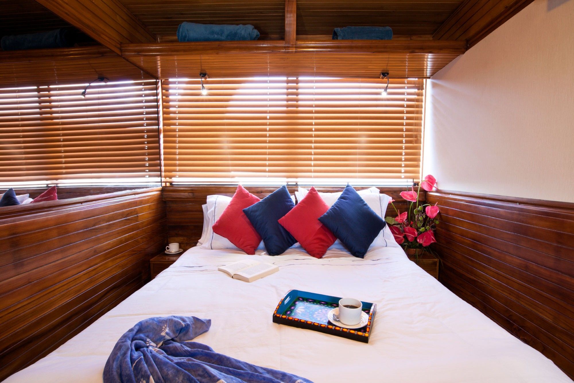 加拉帕戈斯Aggressor III潜水船宿提供舒适的船上环境和优质服务,在探索加拉帕戈斯群岛(Galapagos Islands)世界级潜水地点的同时,最多可容纳16位客人,共有9个客舱。住宿包括4间位于下层甲板的豪华客舱,配备双床,以及4间位于上层甲板的主客舱,配备双床或双人床。所有客舱均设有独立卫生间、可独立调控的空调、带播放器的电视显示器和吹风机。主客舱还提供大窗户海景。加拉帕戈斯Aggressor III的社交区域包括大型休息室和餐厅,供应美国和当地菜肴的多样菜单。早餐和午餐为自助餐形式,晚餐由厨师准备并装盘。顶层甲板设有宽敞的遮阳日光浴场,配备热水浴缸、躺椅、甲板椅子、酒吧和烧烤设施。