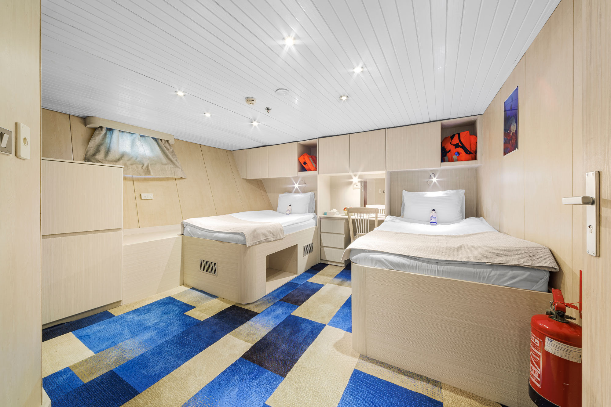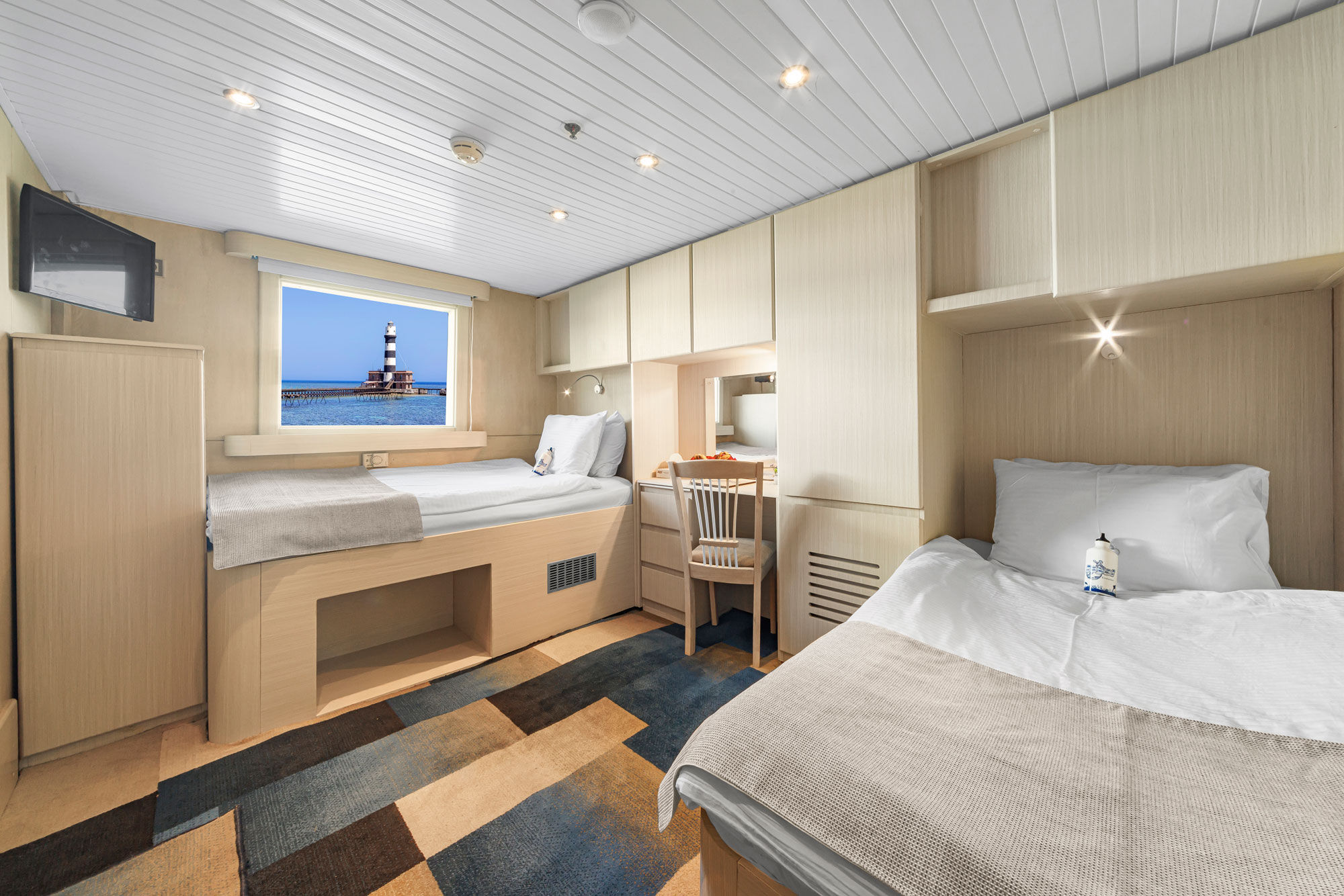 四层甲板上分布着客舱、带娱乐中心的沙龙酒吧、宽敞的用餐区,以及充足的放松和社交空间。船上提供扑克牌、五子棋、国际象棋以及其他游戏,还有一个图书馆供乘客使用。