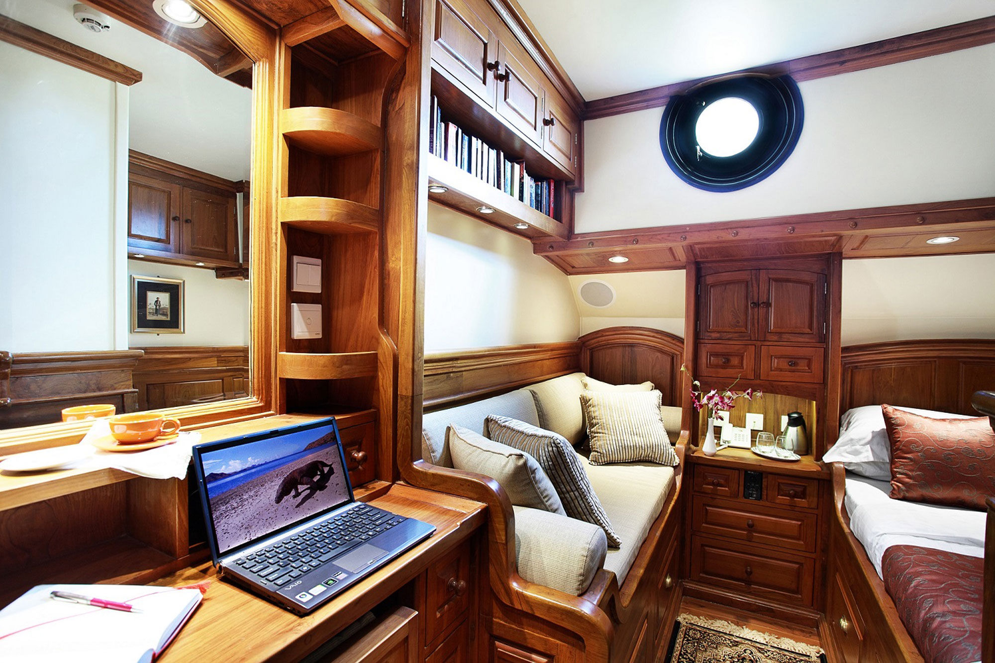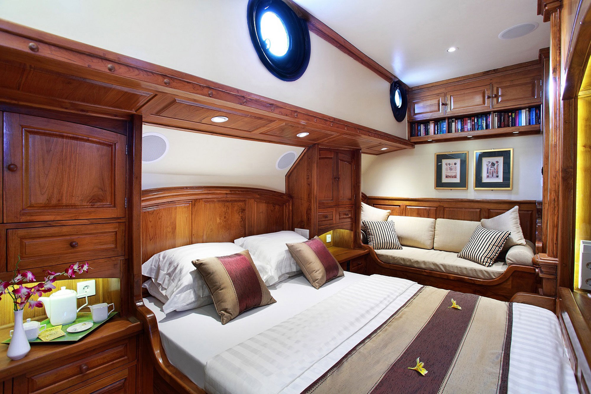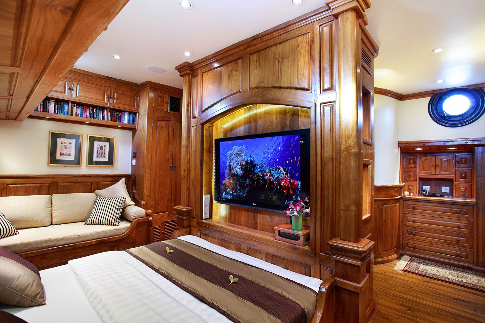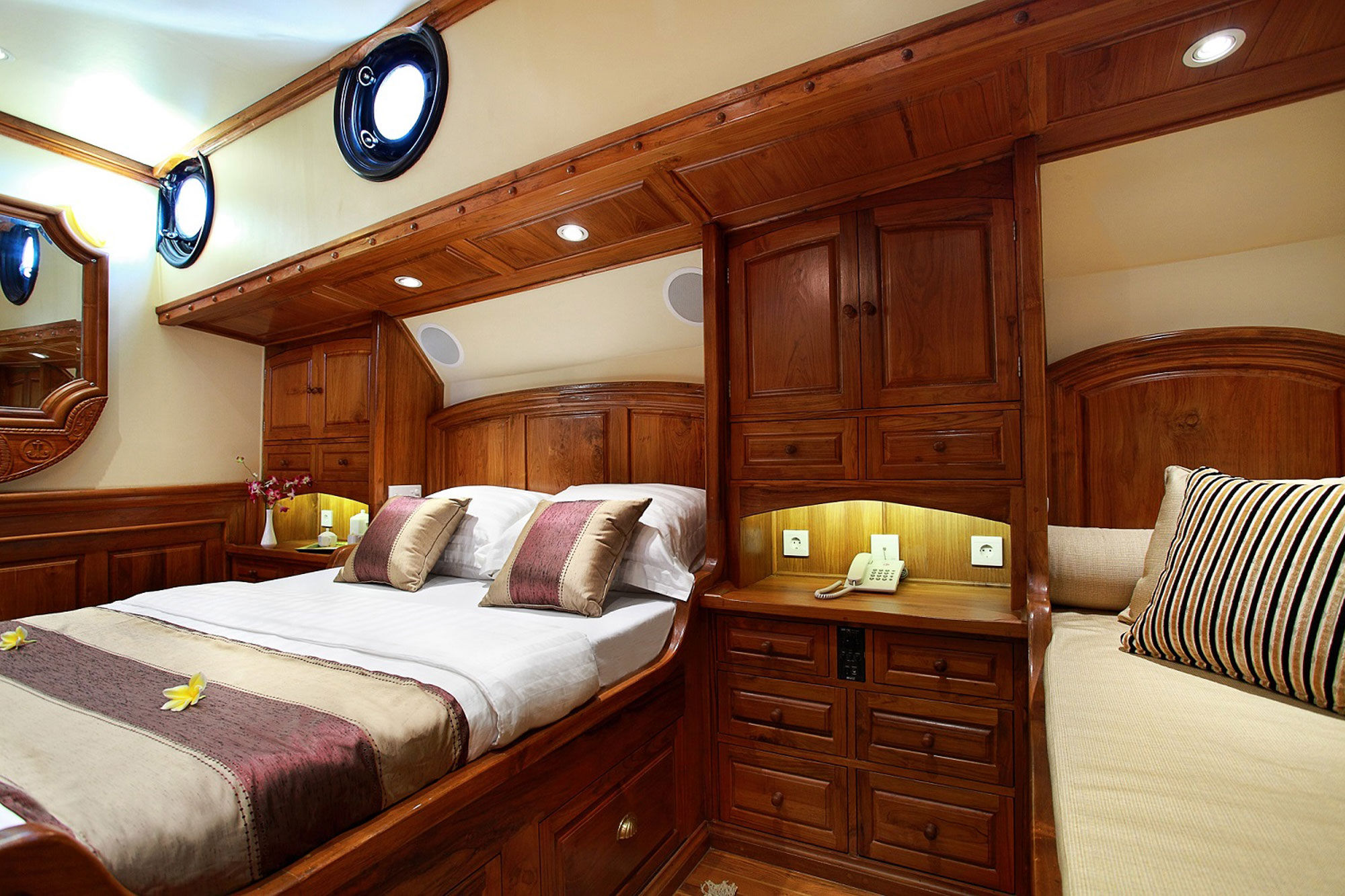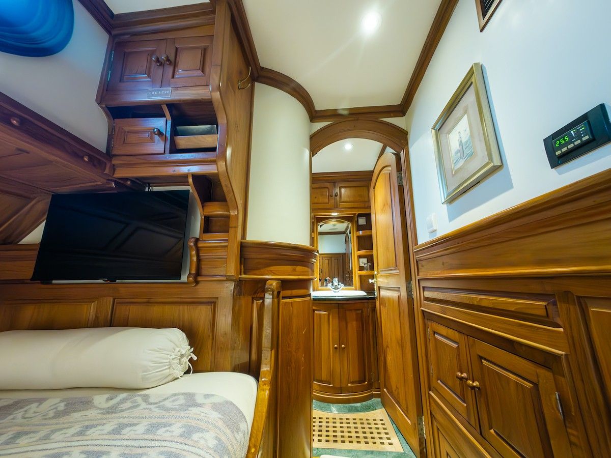所有客舱均提供独立的气候控制系统、带大理石的浴室以及平板电视。上甲板和下甲板配备舒适的座椅,提供迷人的景观。Adelaar上的十名船员能够充分满足每位客人的需求,确保他们的舒适和满意。Adelaar的训练有素的厨师准备了一份精致的印尼和西式美食菜单。酒吧储备充足,提供冷饮、本地啤酒、进口葡萄酒和烈酒。从Adelaar进行的潜水活动中,潜水员将能发现许多鱼类和大型洄游海洋生物。