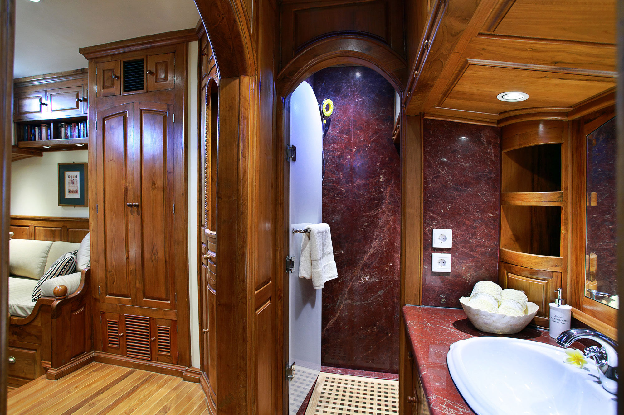 所有客舱均提供独立的气候控制系统、带大理石的浴室以及平板电视。上甲板和下甲板配备舒适的座椅,提供迷人的景观。Adelaar上的十名船员能够充分满足每位客人的需求,确保他们的舒适和满意。Adelaar的训练有素的厨师准备了一份精致的印尼和西式美食菜单。酒吧储备充足,提供冷饮、本地啤酒、进口葡萄酒和烈酒。从Adelaar进行的潜水活动中,潜水员将能发现许多鱼类和大型洄游海洋生物。