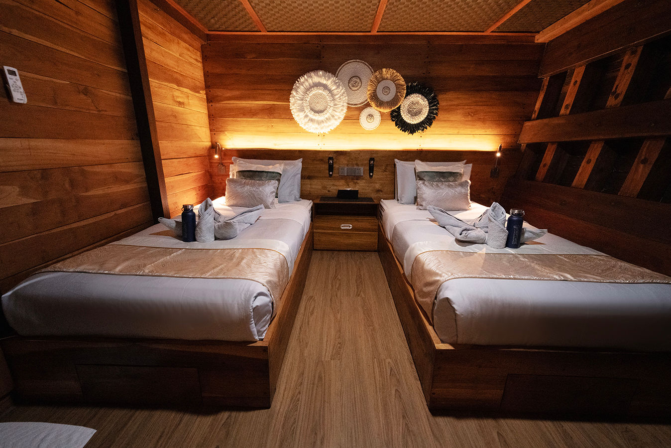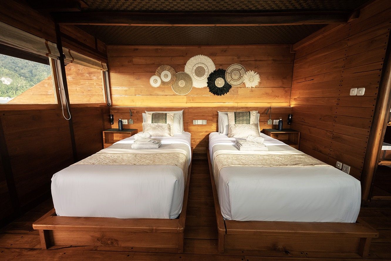 Neptune One是一艘豪华的38米/125英尺游船,可以容纳多达16名宾客,提供8间精美装饰的客舱,其中包括4间豪华套房、2间豪华海景客舱和2间带阳台的豪华海景客舱。所有客舱都配备空调,并设有带热水淋浴的独立浴室。在主甲板上,您可以找到宽敞的客厅和餐厅,同时还有宽敞的潜水甲板。在日光甲板上,您可以一边晒太阳或观星,一边欣赏海洋和天空的壮丽景色。两艘潜水小艇随主船一起运行,随时准备带潜水员前往印度尼西亚最顶级的潜水点。