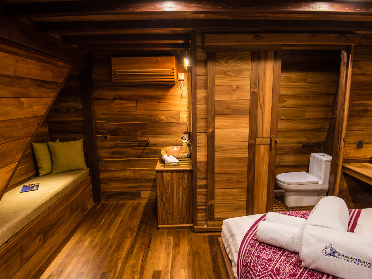 Samambaia船仅为14位客人服务,设有6间装修雅致的舱室位于下层甲板,主甲板上还有一间美丽的主舱,享有壮观的180°海景。每间舱室都配备了私人套间浴室、床下储物空间、衣柜和独立控制的空调系统。