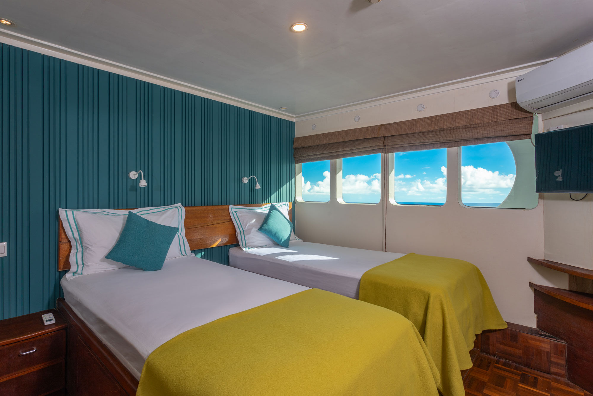 MV Carpe Vita是Carpe Diem和Carpe Novo潜水船的姐妹船,是一艘提供全年马尔代夫潜水服务的豪华游艇。船上有10间舒适的客舱,分布在三个甲板上,每间客舱均配有私人浴室设备、独立控制的空调、储物空间、保险箱、书桌和椅子。下层甲板有6间标准客舱,配有一张大床和一张加大的单人床,主甲板有两间高级客舱,设有特大号床,可分为两张加大的单人床,并享有海景。上层甲板则有两间VIP宽敞套房,设有加州大号床和海景。