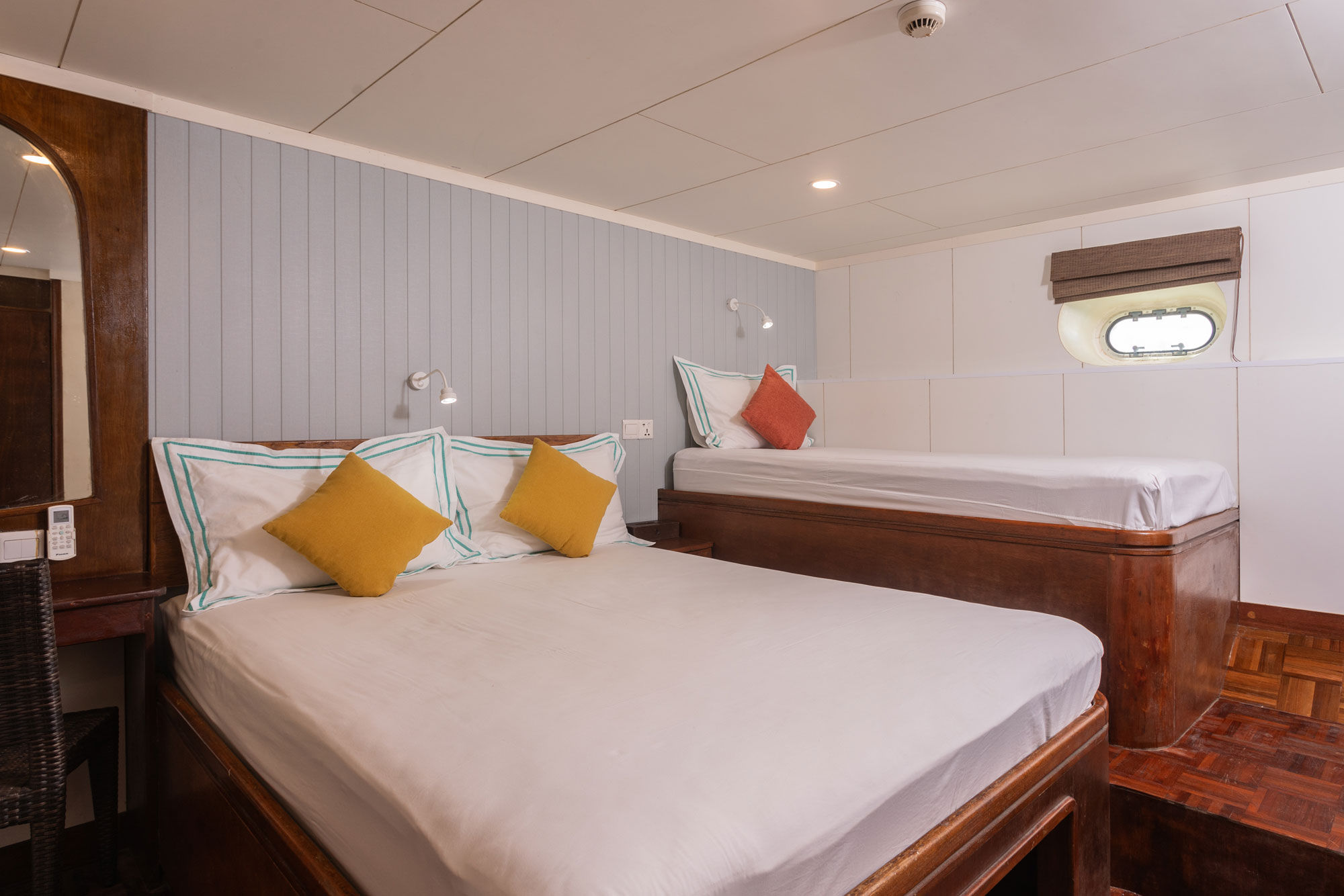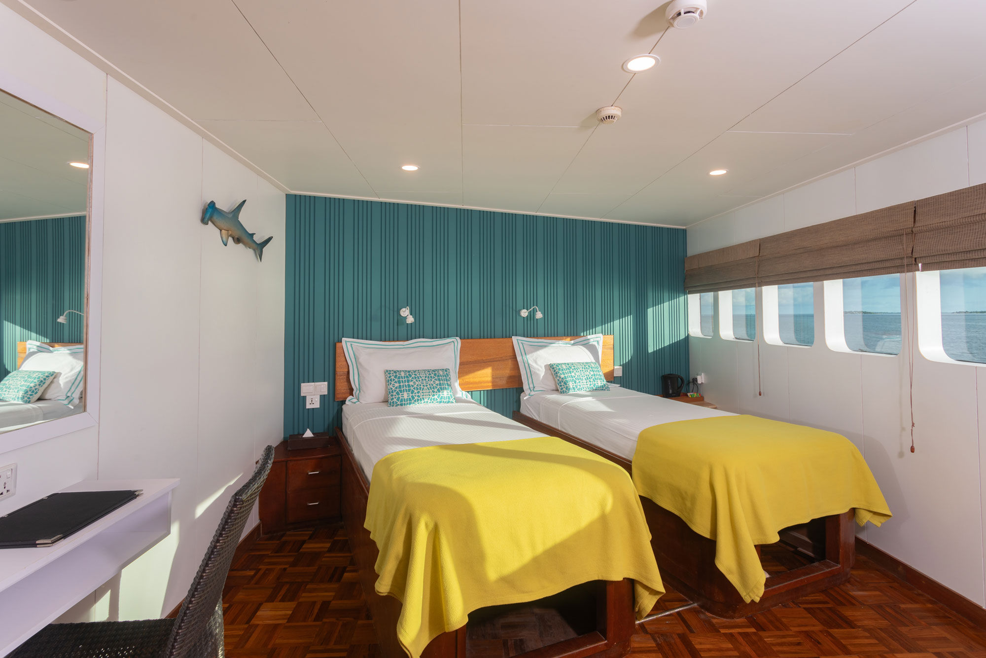 MV Carpe Vita是Carpe Diem和Carpe Novo潜水船的姐妹船,是一艘提供全年马尔代夫潜水服务的豪华游艇。船上有10间舒适的客舱,分布在三个甲板上,每间客舱均配有私人浴室设备、独立控制的空调、储物空间、保险箱、书桌和椅子。下层甲板有6间标准客舱,配有一张大床和一张加大的单人床,主甲板有两间高级客舱,设有特大号床,可分为两张加大的单人床,并享有海景。上层甲板则有两间VIP宽敞套房,设有加州大号床和海景。
