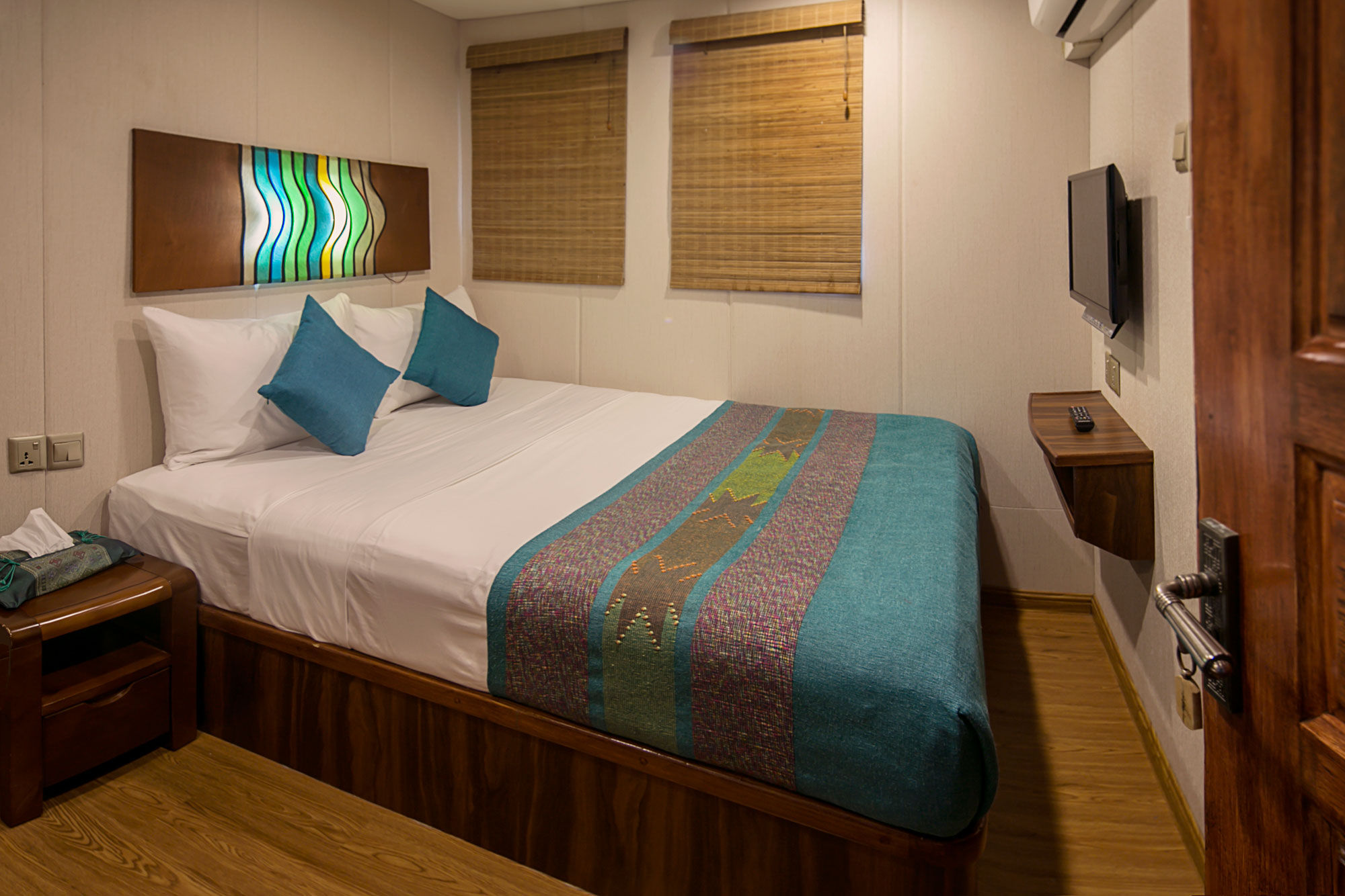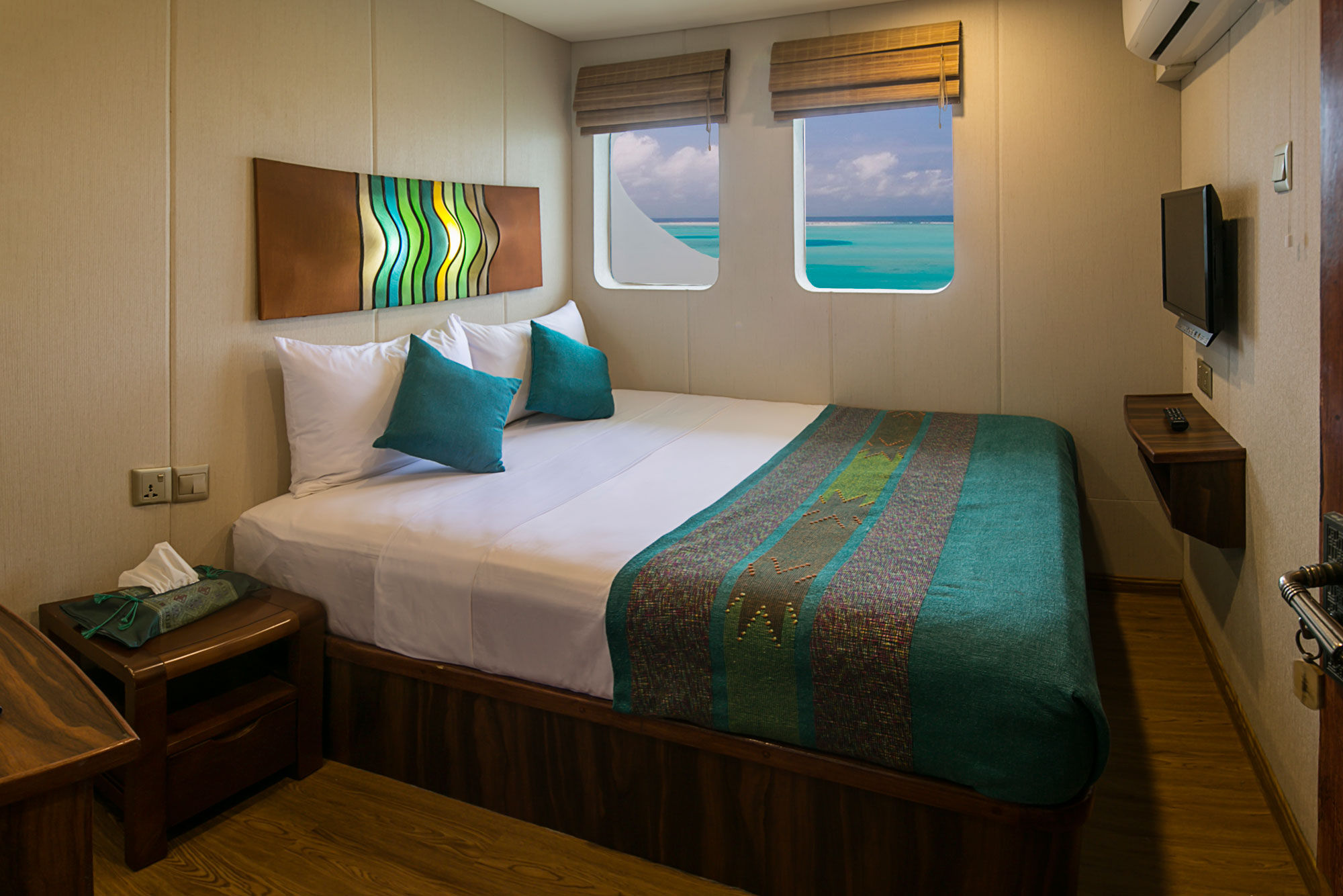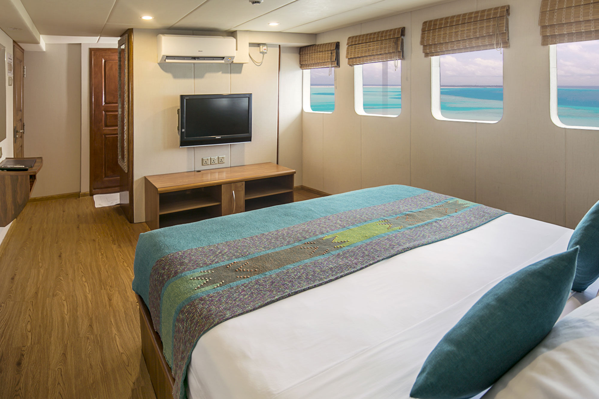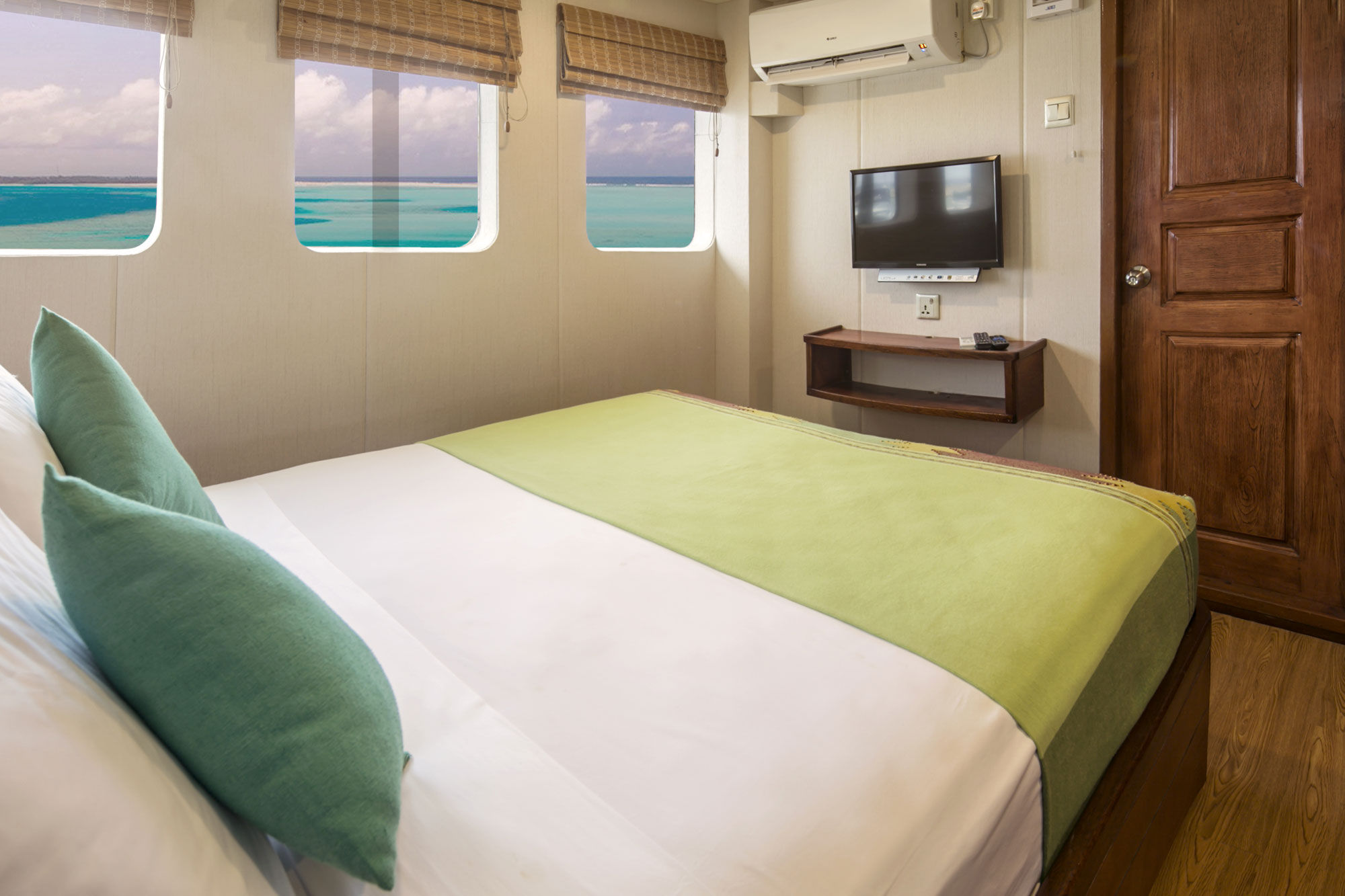 Carpe Diem潜水船以其卓越的服务和高质量著称。船上共有10个客舱,分布于三个甲板,各种标准的客舱可供选择,每个客舱都配有独立浴室和空调。在下层甲板上有6个标准客舱,其中4个有两张单人床,可以转换成双人床,另外2个各有一张单人床和一张半上下铺床。在主甲板上有两个配有大床的双人客舱,上层甲板有一个配有大床的豪华客舱和一个配有特大床的套房。所有主甲板和上层甲板的客舱都配备智能电视,并可欣赏到壮丽的海景。社交区分布在三个甲板上,包括一个室内沙龙、户外露台和用餐区,以及配有舒适躺椅的日光甲板。