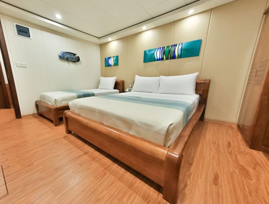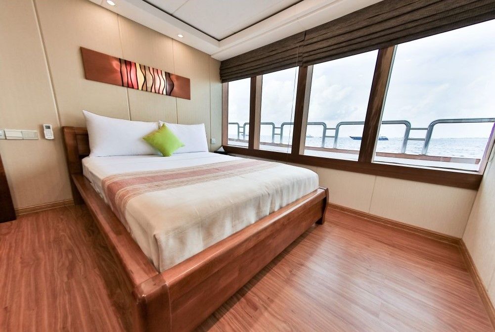 The Carpe Novo 是Carpe Diem船队中最大的游艇,全年在马尔代夫提供潜水服务。船上有3层甲板,12间舒适的客舱,可容纳22位游客。位于上层甲板的高级套房配有双人床或单人床,并享有海景。下层甲板的6间标准客舱配有一个大号床和一张单人床,或两张单人床。主甲板设有两个单人套房,适合单独旅行的游客。主甲板还有一个大型空调沙龙,提供全景视图、平板电视、娱乐系统和图书馆。上层甲板的户外餐桌提供新鲜准备的菜肴,让客人享受绝佳的景色和海风。日光浴甲板配有大量的软垫躺椅和部分遮阴的座位区,适合在潜水间隙晒太阳或享受日落鸡尾酒。