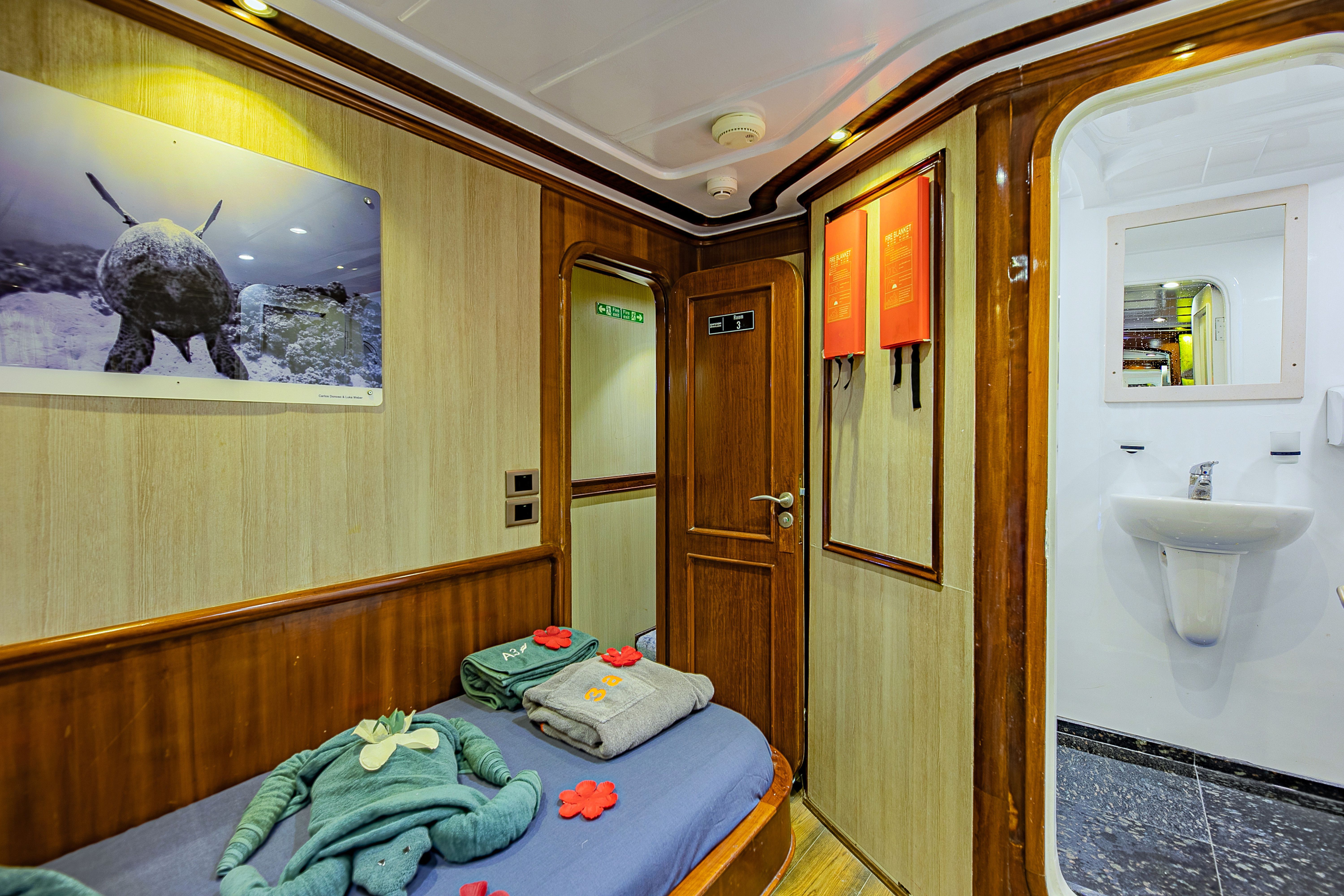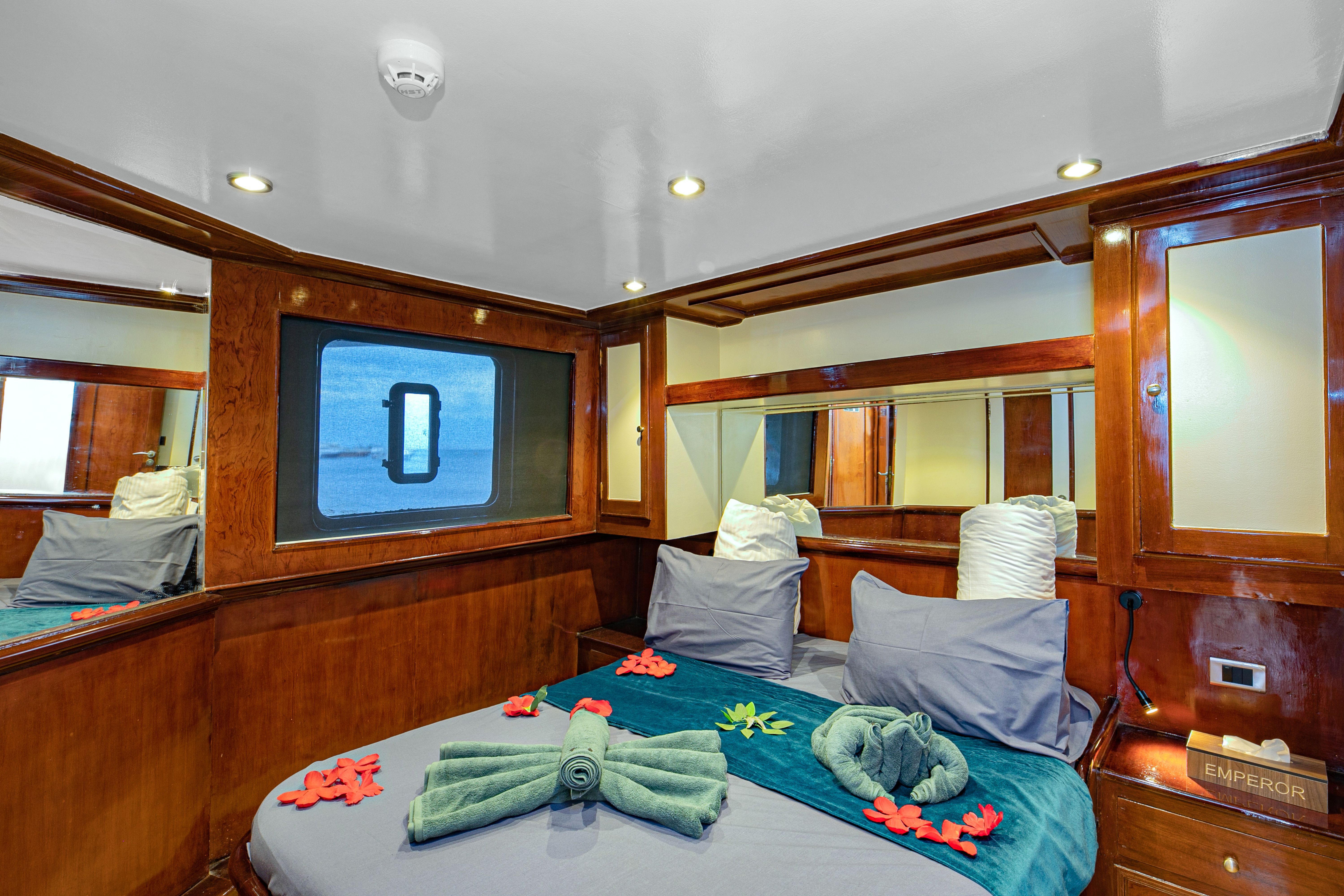 作为Emperor船队的一员,Emperor Superior全年在埃及红海提供梦幻般的潜水体验。船上可以容纳26位客人,拥有13间船舱,提供四种不同的客舱选择。所有船舱都配备私人浴室、独立控温空调、储物空间,每位客人两条毛巾。宽敞的空调沙龙设有娱乐系统,餐厅全天供应新鲜准备的佳肴。主甲板前部的露天休息室非常适合观看海豚,或者在一天结束时和其他潜水员享受一杯饮品。两个带有躺椅的日光甲板为所有客人在潜水间隙放松提供了充足的空间。