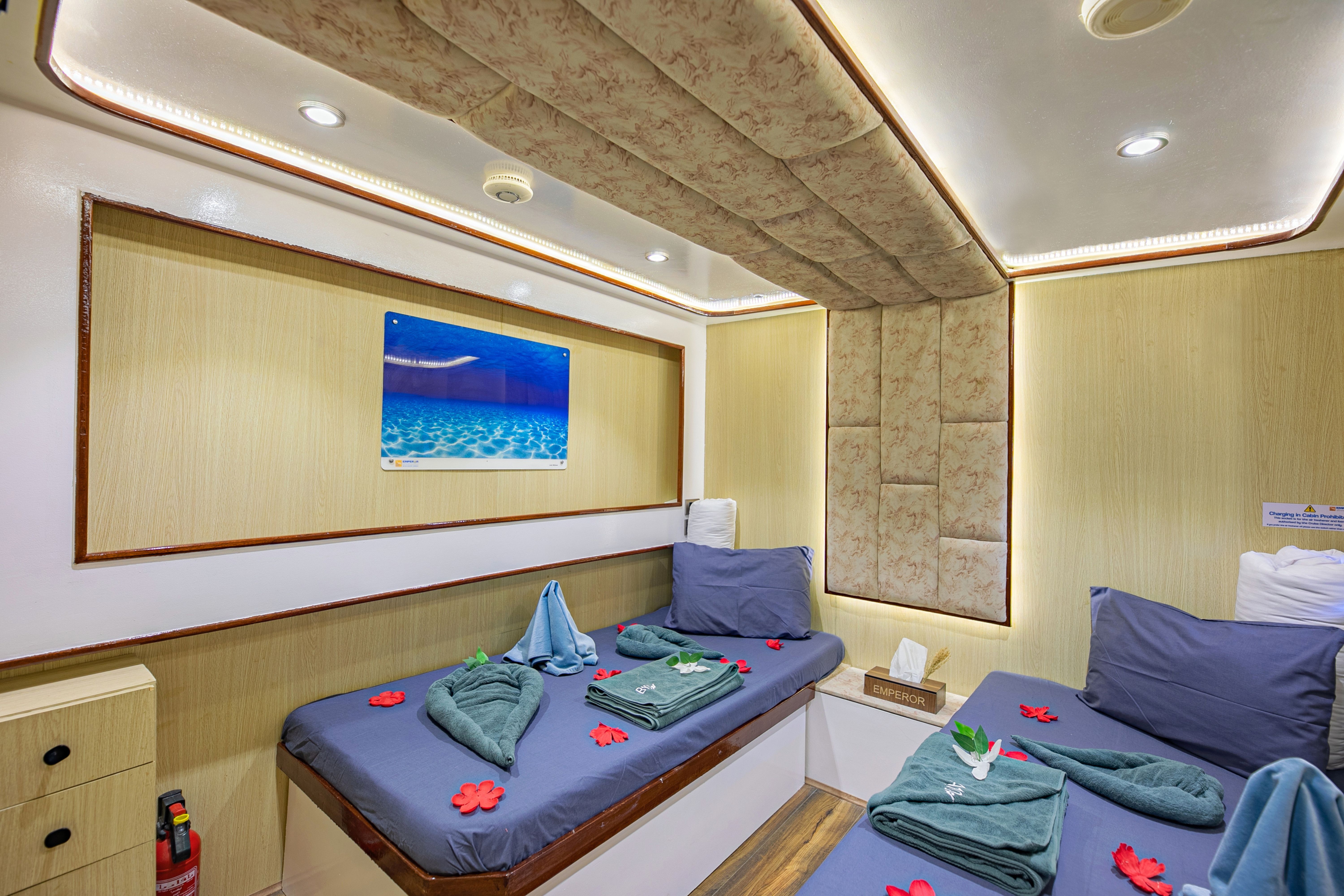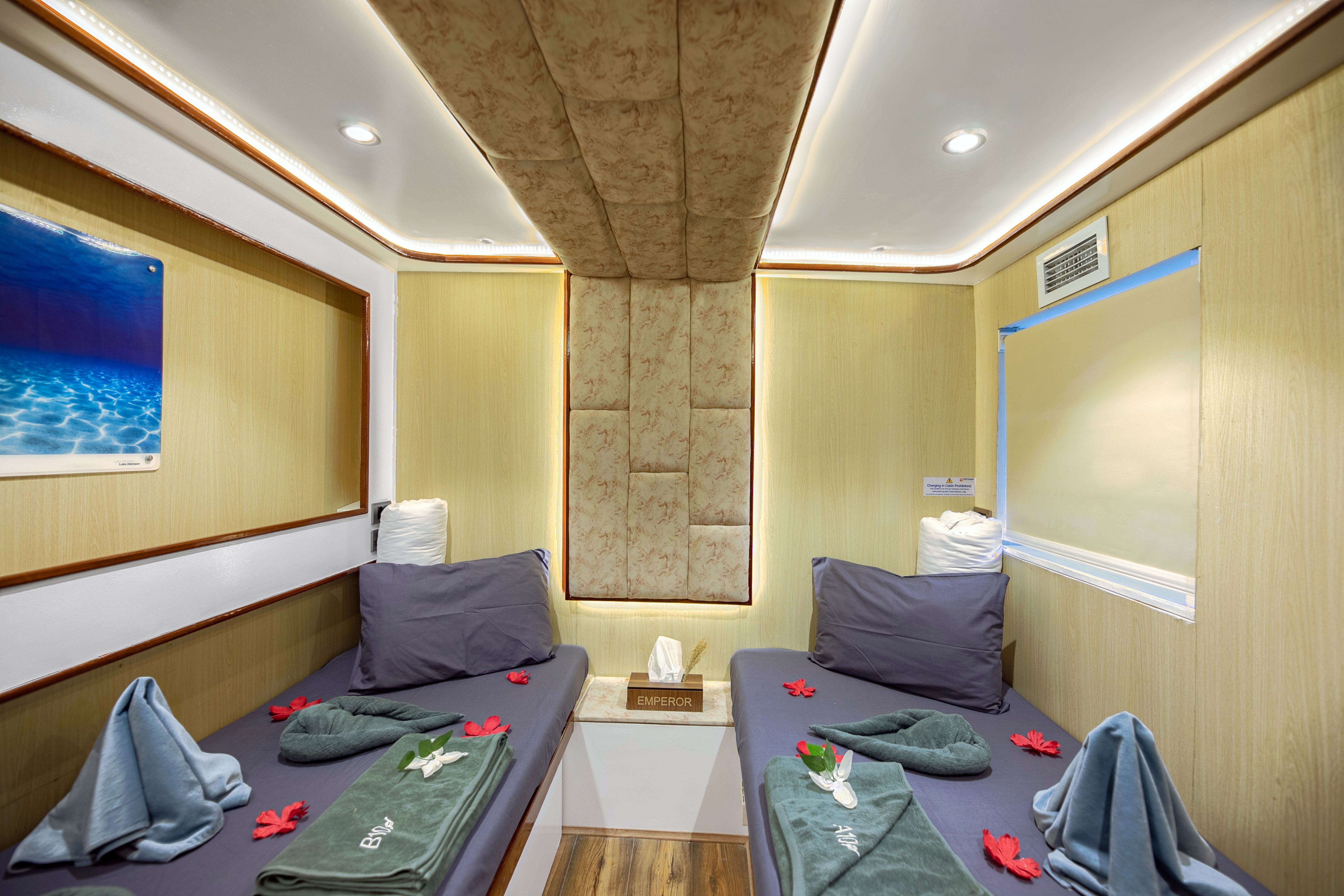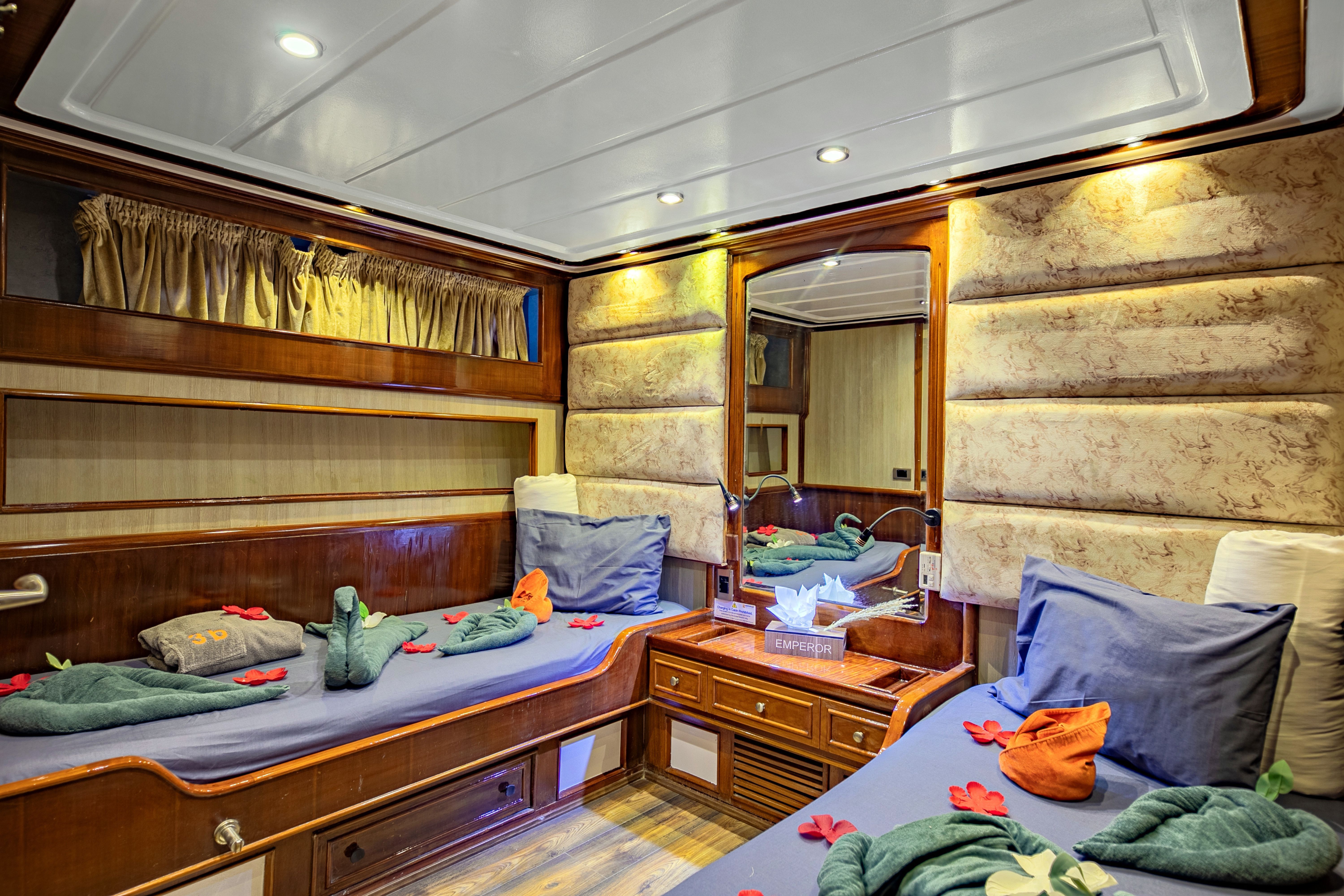 Emperor Superior的行程通常为一周,许多行程提供超过21次潜水,确保潜水者可以充分体验红海潜水探险。摄像机设置站、充电区域和专用冲洗槽使其成为摄影师的梦想之地。潜水甲板有个人装备储存空间,为所有潜水者提供充裕的准备空间,同时配备两艘潜水辅助船,使往返潜水点轻松无忧。
