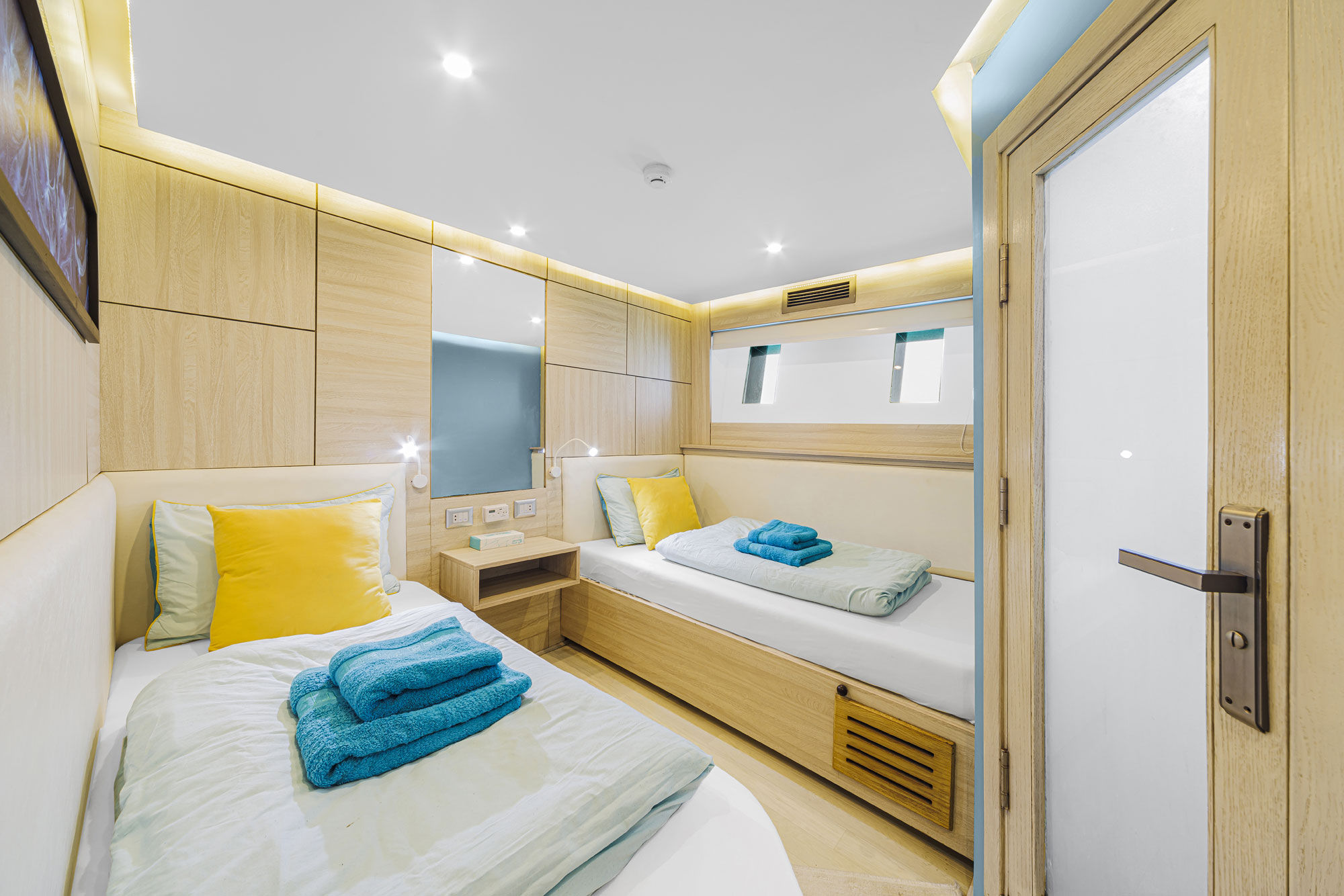 登上Sea Serpent Excellence号,这是一艘34米的木质船宿潜水船,将传统工艺与现代豪华相结合。经过2020年的重大翻新,这艘船现在拥有现代精致的内部设计,旨在为您在红海的潜水冒险过程中提供舒适、高效和放松的环境。船上可容纳最多24位宾客,提供的住宿包括12间空调套房 cabins——8间下层双床 cabins和4间上层 cabins(3间双人和1间双床 cabins),确保每位潜水者都能享受到安静舒适的停留。