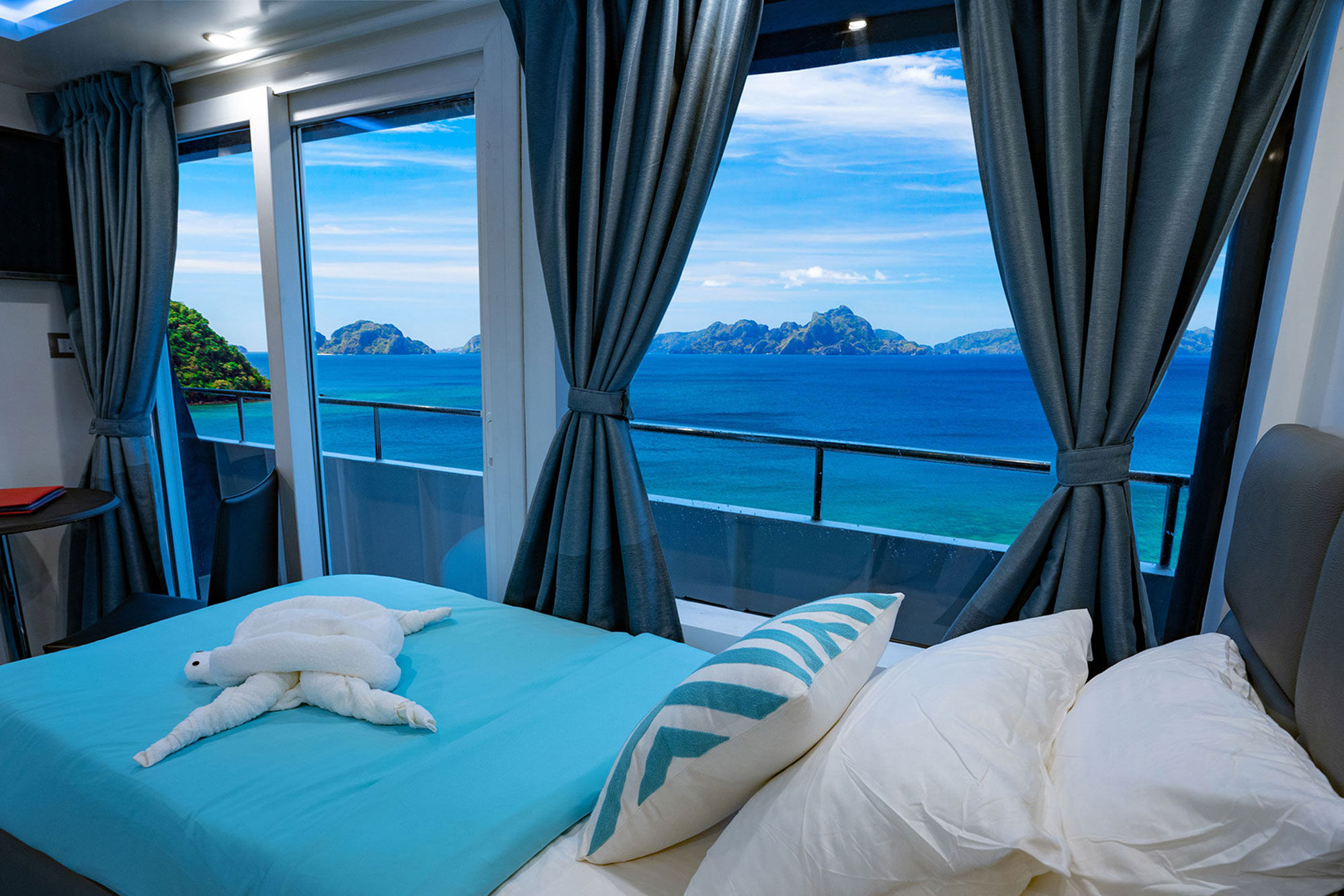2021年加入Aggressor舰队的菲律宾Aggressor游艇专为舒适和安全而建造。她拥有明亮、现代和时尚的设计,为您的菲律宾船宿潜水之旅提供了一个完美的家外之家。船上共有12间双人或双床舱房,分布于两个甲板上,提供不同标准以适应所有预算,包括Deluxe Lower、Deluxe Main和Balcony suite。每间舱房均设有私人浴室、独立控制空调、电视显示器附带媒体播放器和吹风机。上层甲板上设有宽敞的室内休息室,配有舒适的沙发、一台平板电视和一个酒吧,并通往室外露台,非常适合在一天结束时享用鸡尾酒。用餐区位于主甲板,设有大型全景窗,是享用美式菜肴、本地美食和烧烤的地方。包含免费饮料及有限选择的本地啤酒和葡萄酒。
