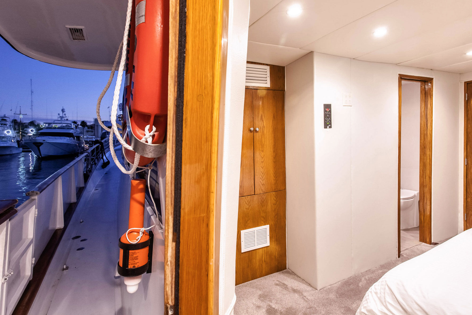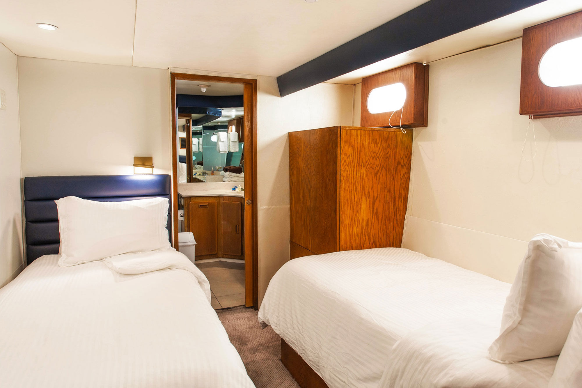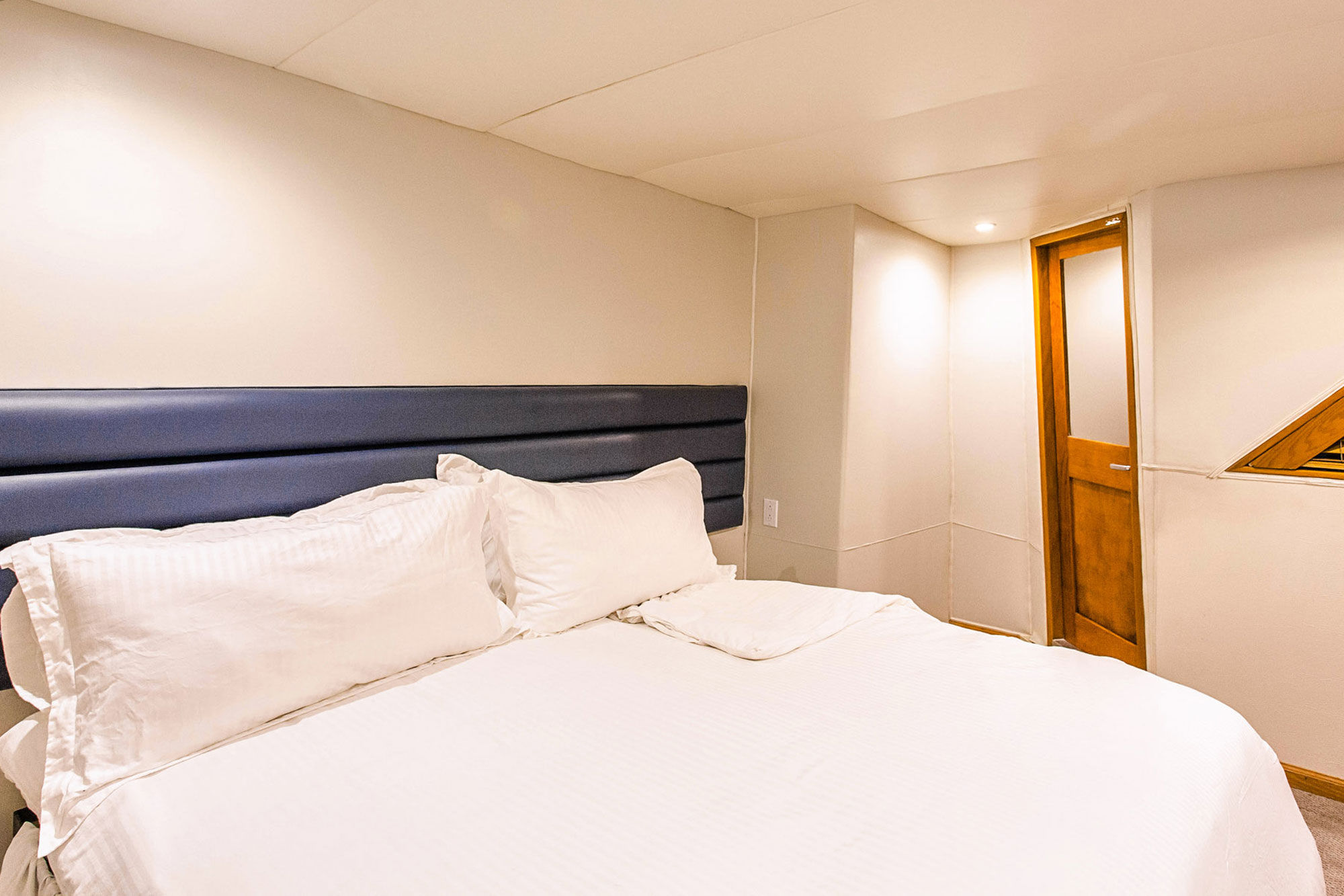 Nautilus Gallant Lady是Nautilus船队的一部分。这艘166英尺的豪华游艇仅提供给16位客人,设有6间大型套房。船舱位于下层和主甲板,有5间高级套房和一间更大的尊贵套房供选择。每个房间都配备了独立控制的空调、加州特大号床或两个双人床、充足的存储空间以及私人浴室。Gallant Lady的设计经过精心考虑,提供了许多舒适的社交区域供宾客放松。天顶甲板上的天际酒廊配有热水浴缸,是一天结束时享用鸡尾酒的完美之地,而阳光甲板则是潜水间隙放松的理想场所。主沙龙和餐厅设有备货齐全的酒吧及环绕式视野。船上厨师准备的新鲜墨西哥和北美西海岸菜肴都将满足各种饮食需求,只需提前通知即可。