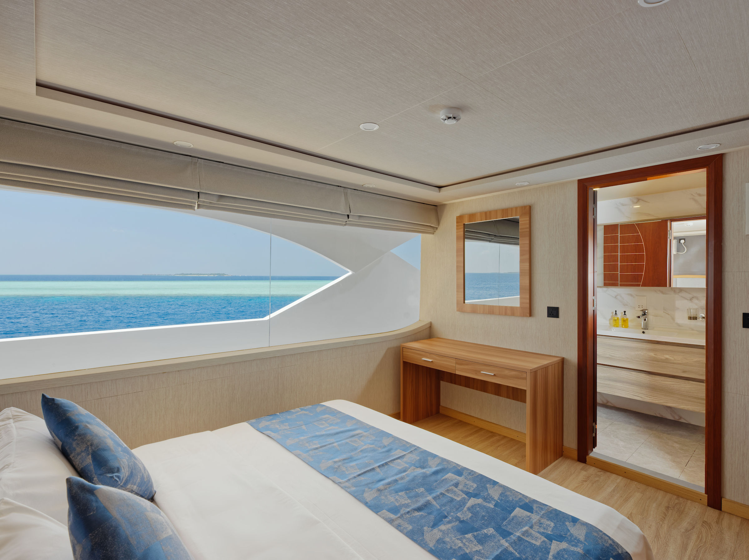 Felicity是一艘长达41米(134英尺)的豪华潜水船宿,提供12间带有现代化设施的小屋。主甲板上的主舱房配有特大号床、平板电视、热水淋浴和小冰箱。下层甲板有六间小屋,上层甲板有四间海景套房。所有舱房均配有独立卫浴。Felicity还设有餐厅、休息室和酒吧。客人在不探索马尔代夫(Maldives)美丽的珊瑚礁和岛屿时,可以在阳光甲板上放松或在船上的按摩浴缸中享受惬意时光。