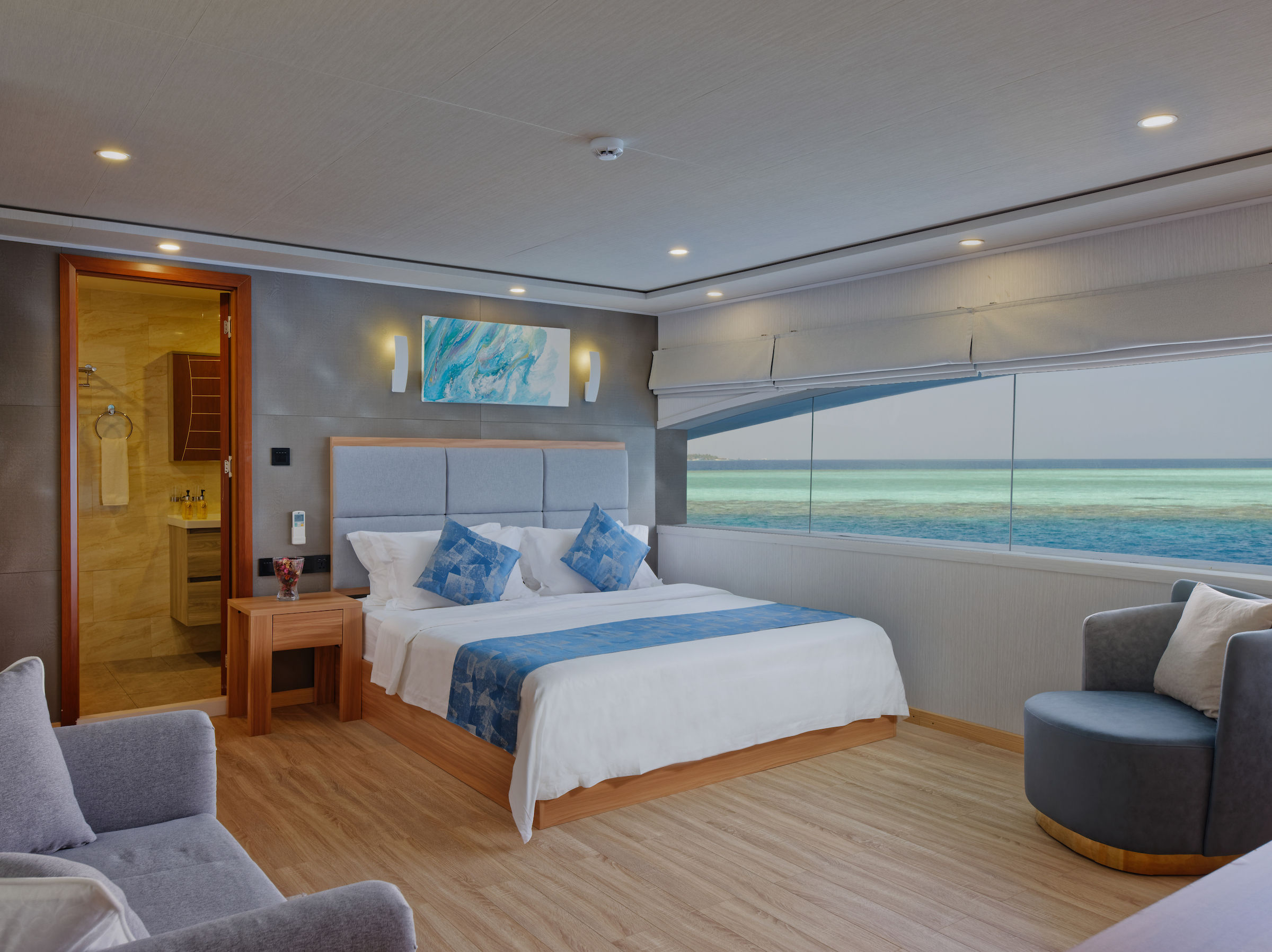 Felicity是一艘长达41米(134英尺)的豪华潜水船宿,提供12间带有现代化设施的小屋。主甲板上的主舱房配有特大号床、平板电视、热水淋浴和小冰箱。下层甲板有六间小屋,上层甲板有四间海景套房。所有舱房均配有独立卫浴。Felicity还设有餐厅、休息室和酒吧。客人在不探索马尔代夫(Maldives)美丽的珊瑚礁和岛屿时,可以在阳光甲板上放松或在船上的按摩浴缸中享受惬意时光。