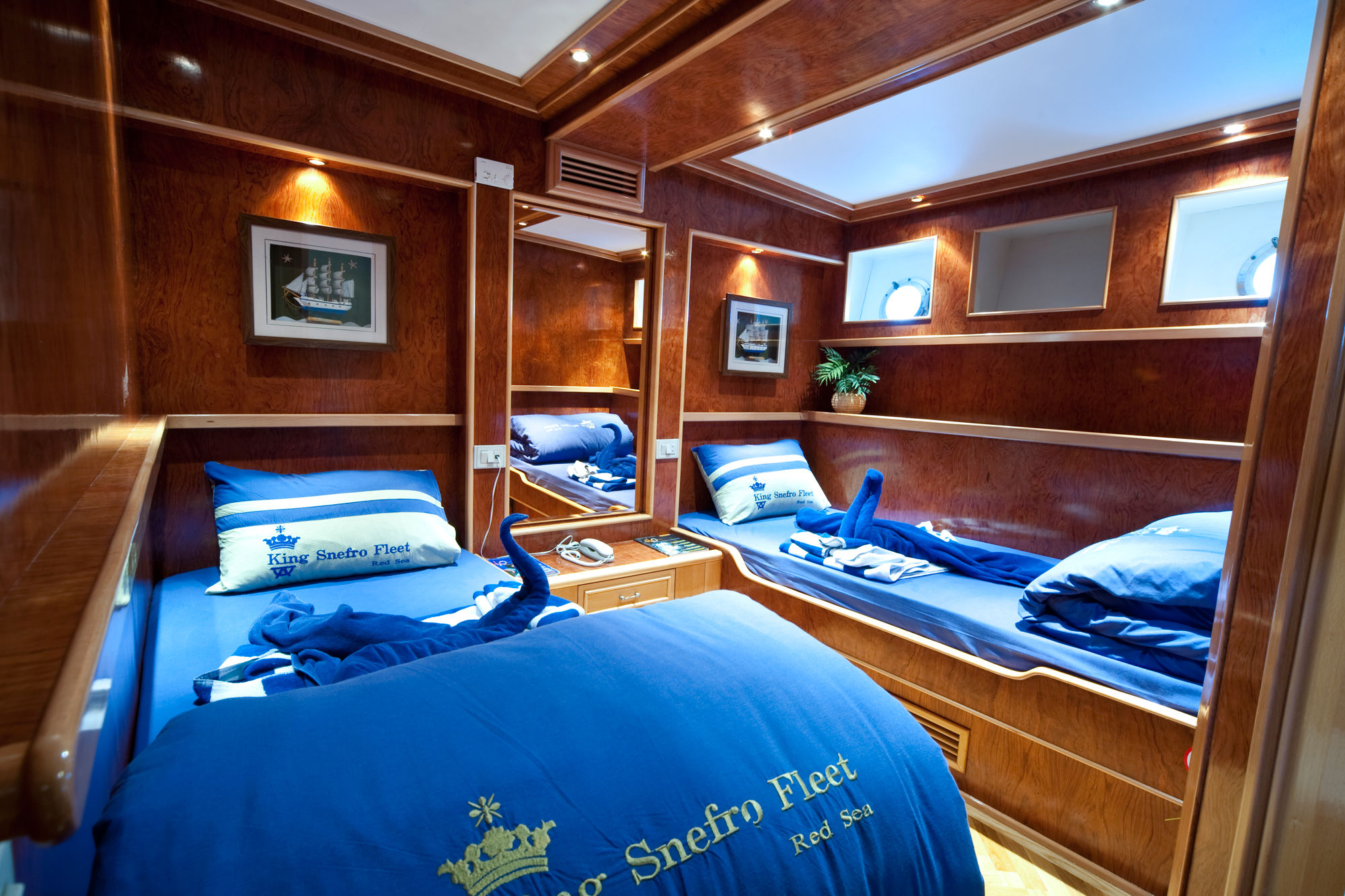 37米长的MV Snefro Target潜水船从沙姆沙伊赫(Sharm el Sheikh)出发,提供涵盖西奈地区最佳潜点的潜水行程。她拥有10间带空调的客舱,每间客舱都配有独立浴室、保险箱和中央音乐系统。MV Snefro Target游艇的餐饮和生活区也都配有空调,内设现代化娱乐设备,包括等离子电视、DVD播放器和娱乐系统。每天供应三顿主餐,提供埃及和国际美食,全天还有小吃和饮品供应。为了更好的放松,游艇的上层和顶层甲板设有三个令人印象深刻的阳光甲板,带有舒适的躺椅和部分遮阳区。