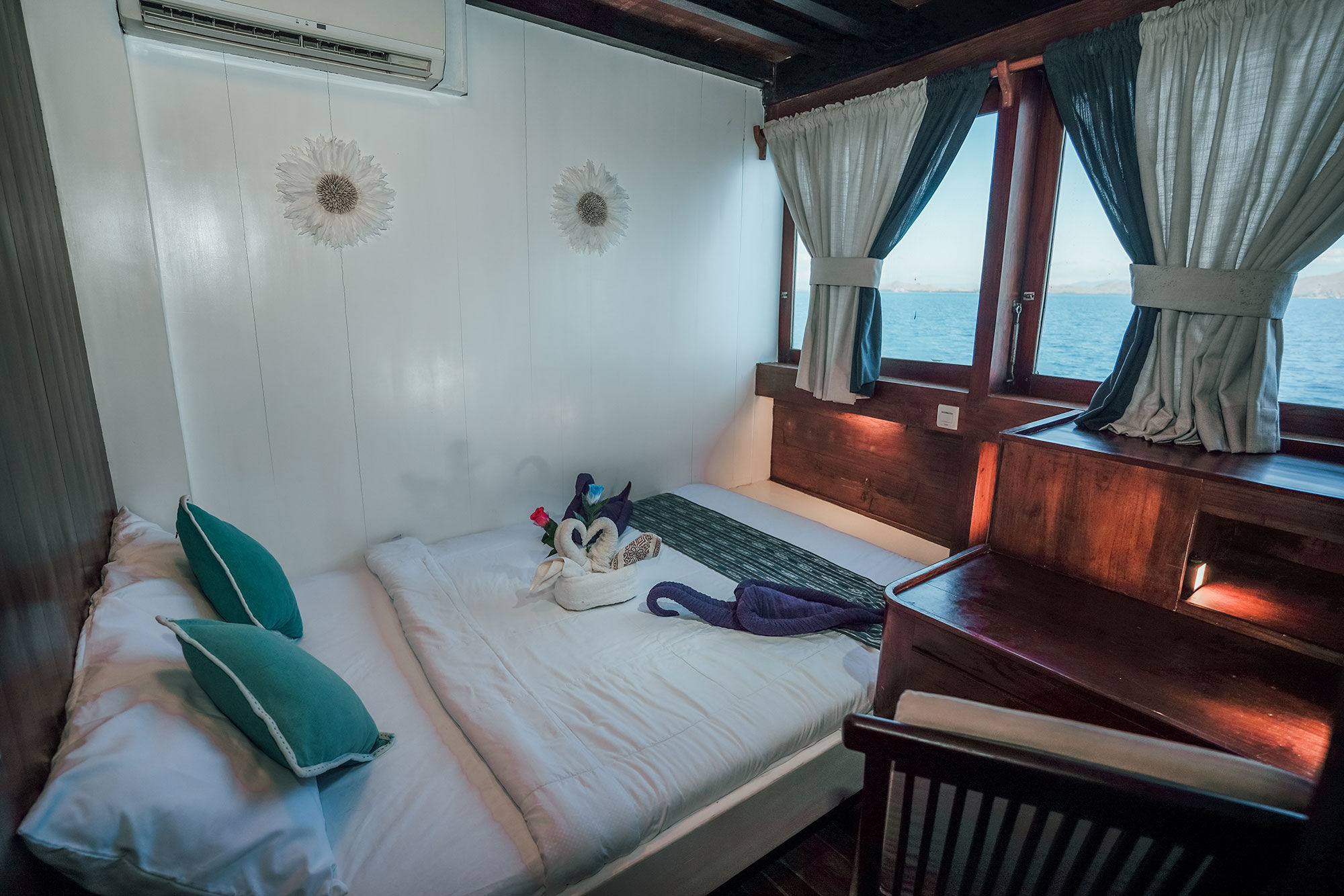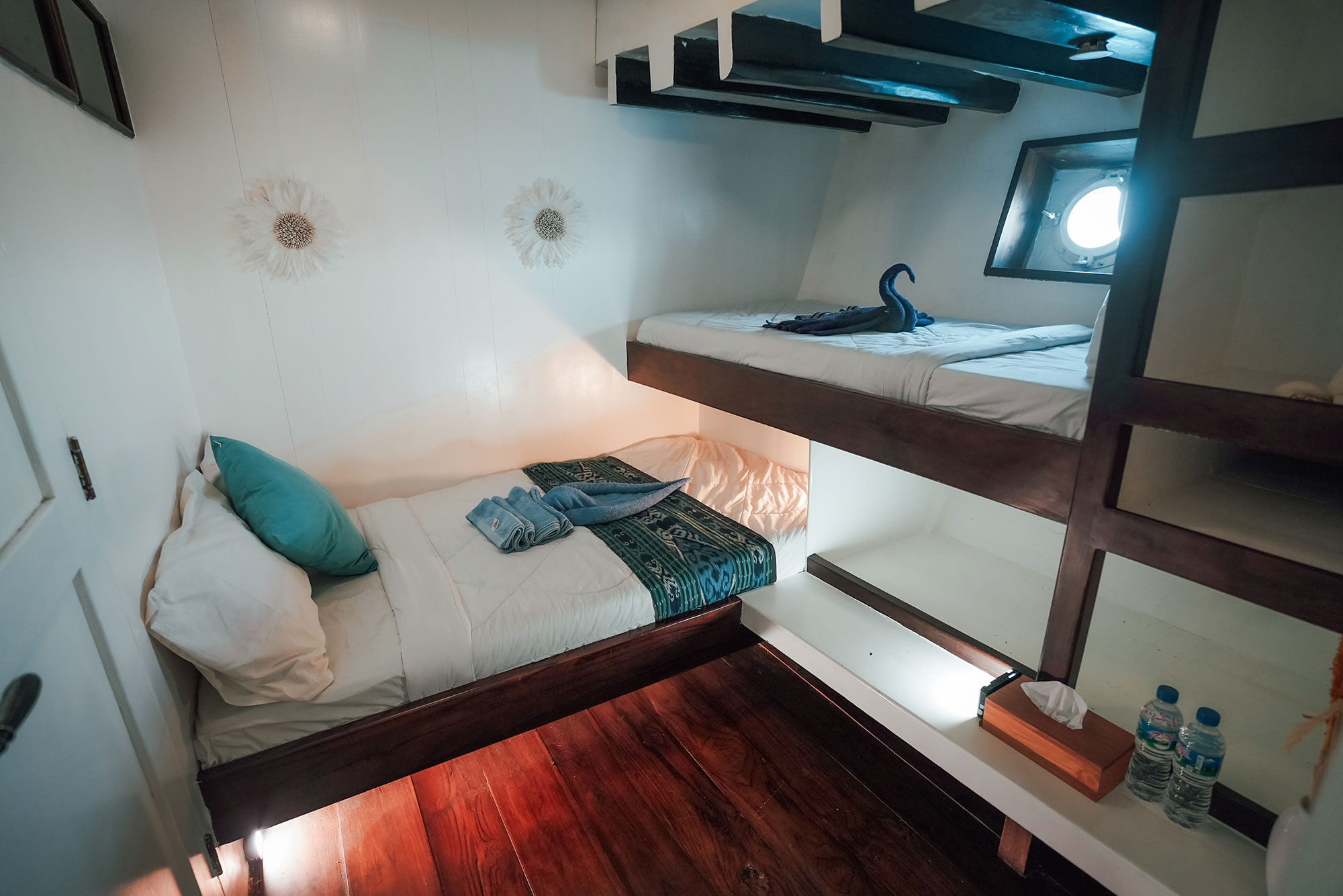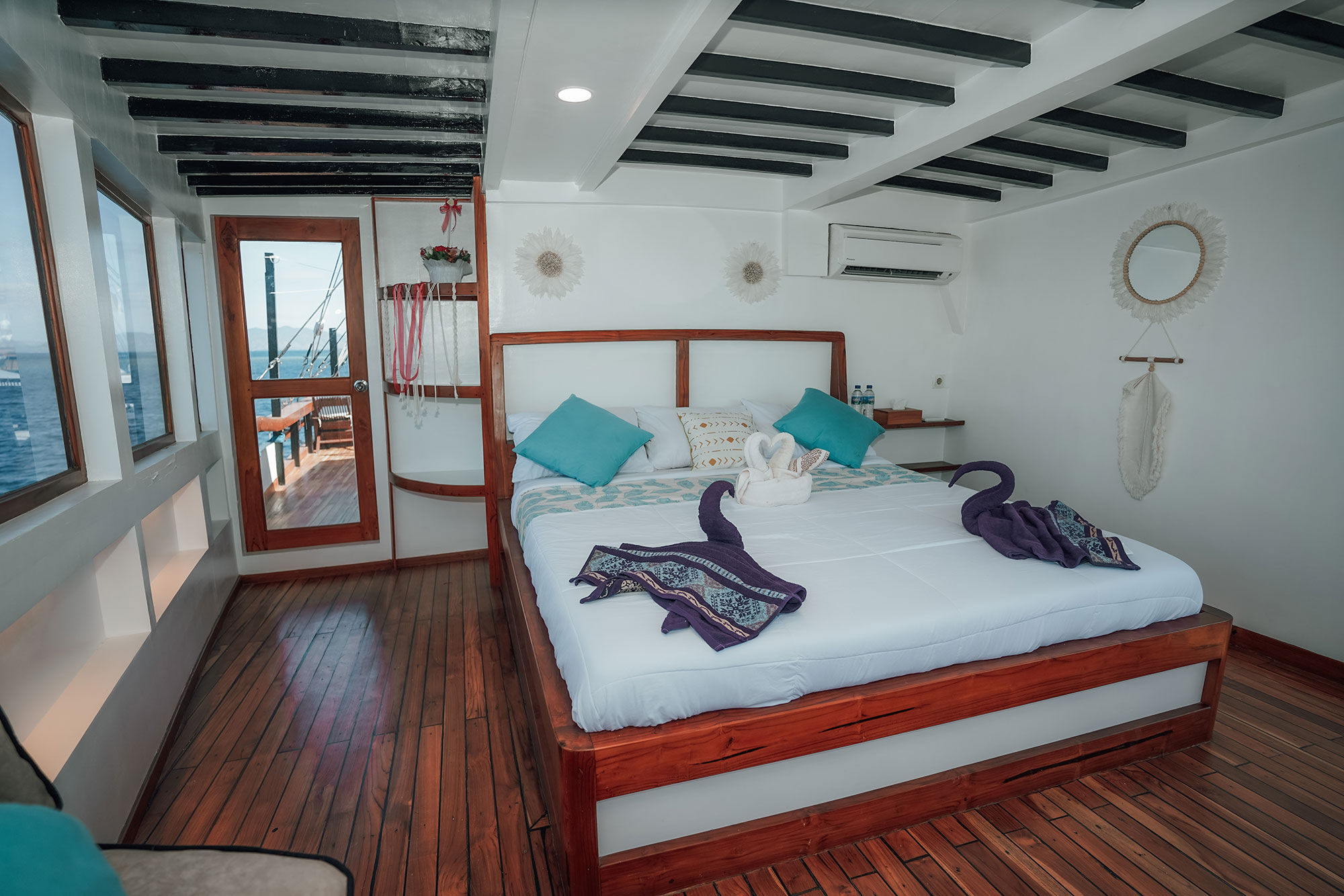 Queenesia II是一艘位于印度尼西亚的美丽32米(105英尺)长的传统帆船潜水船宿。这艘船建于2016年,由铁木制成,坚固耐用。Queenesia II可以舒适地容纳多达16名客人,设有7个舱房:1个豪华舱房、1个主甲板双人舱房、3个双人舱房和2个三人舱房。旅程中包含早餐、午餐、晚餐、点心、矿泉水以及茶和咖啡。Queenesia II的潜水行程采用1名导潜服务4位客人的比例。