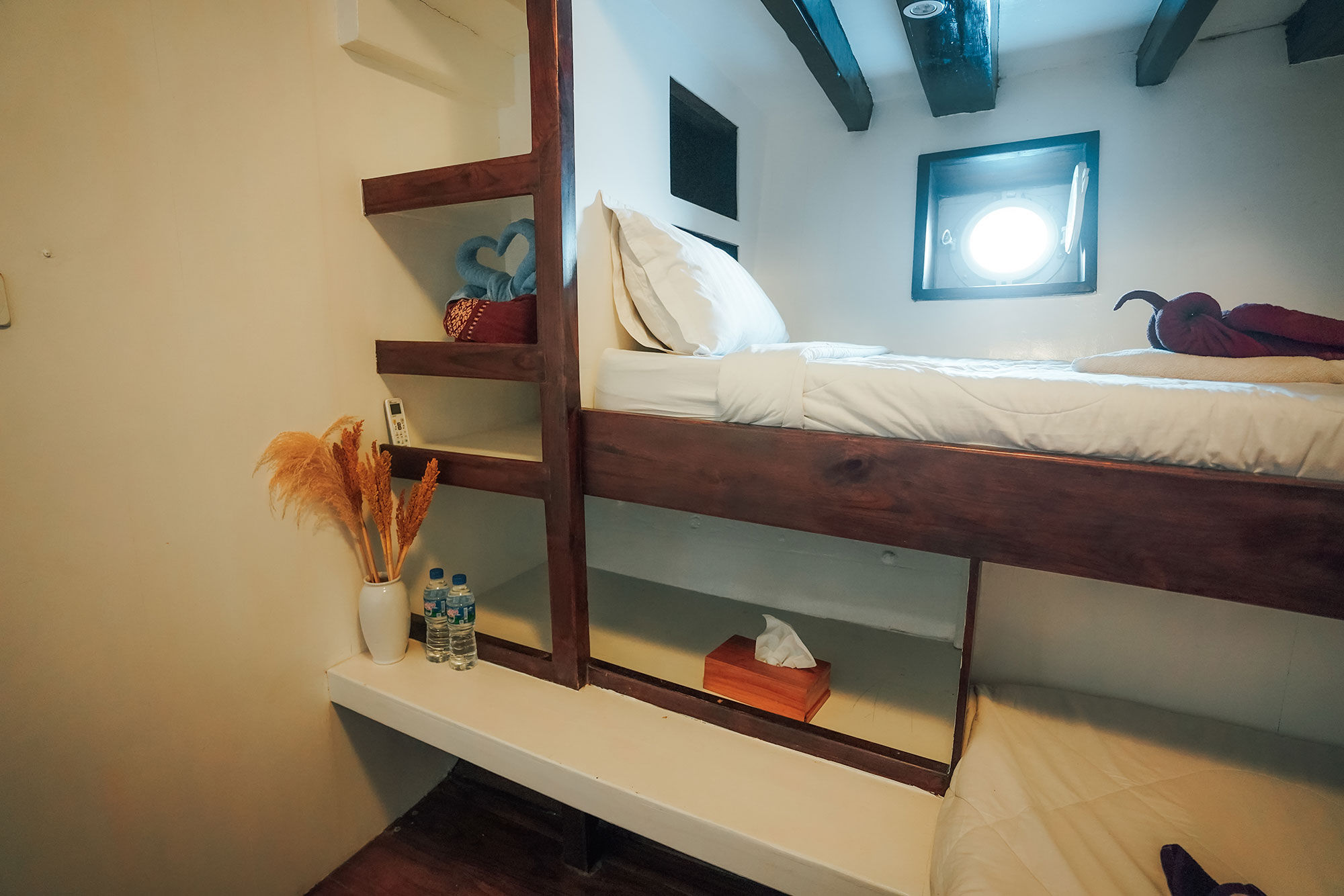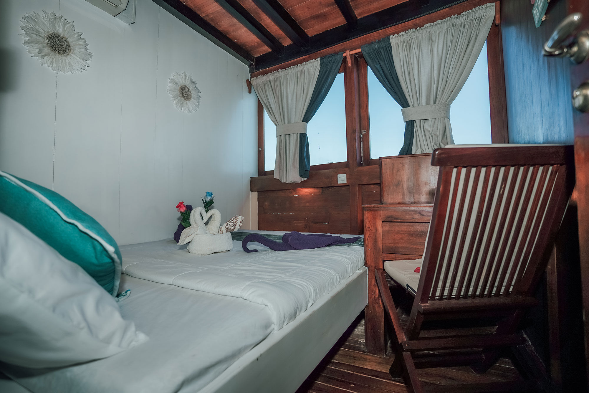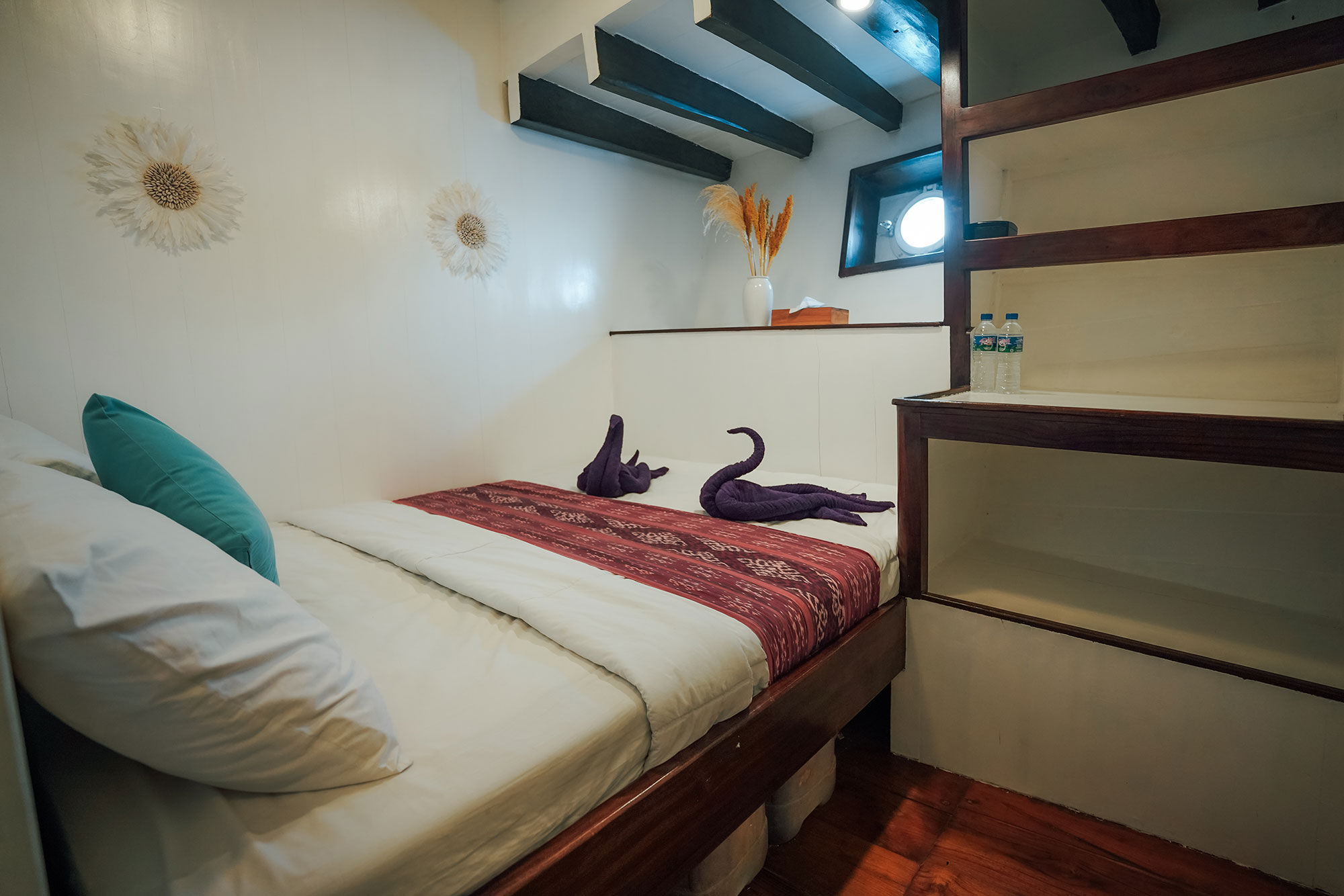 Queenesia II是一艘位于印度尼西亚的美丽32米(105英尺)长的传统帆船潜水船宿。这艘船建于2016年,由铁木制成,坚固耐用。Queenesia II可以舒适地容纳多达16名客人,设有7个舱房:1个豪华舱房、1个主甲板双人舱房、3个双人舱房和2个三人舱房。旅程中包含早餐、午餐、晚餐、点心、矿泉水以及茶和咖啡。Queenesia II的潜水行程采用1名导潜服务4位客人的比例。