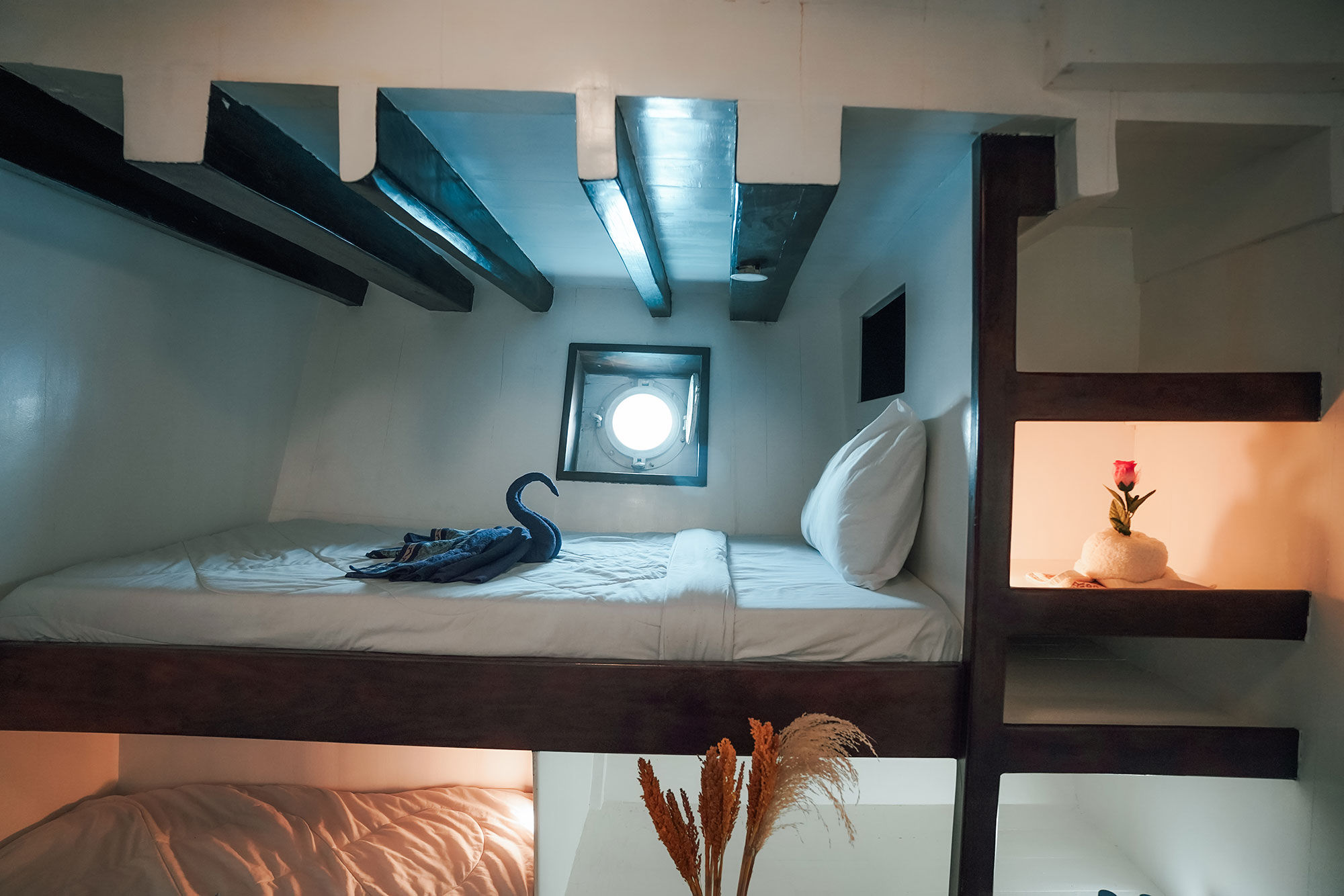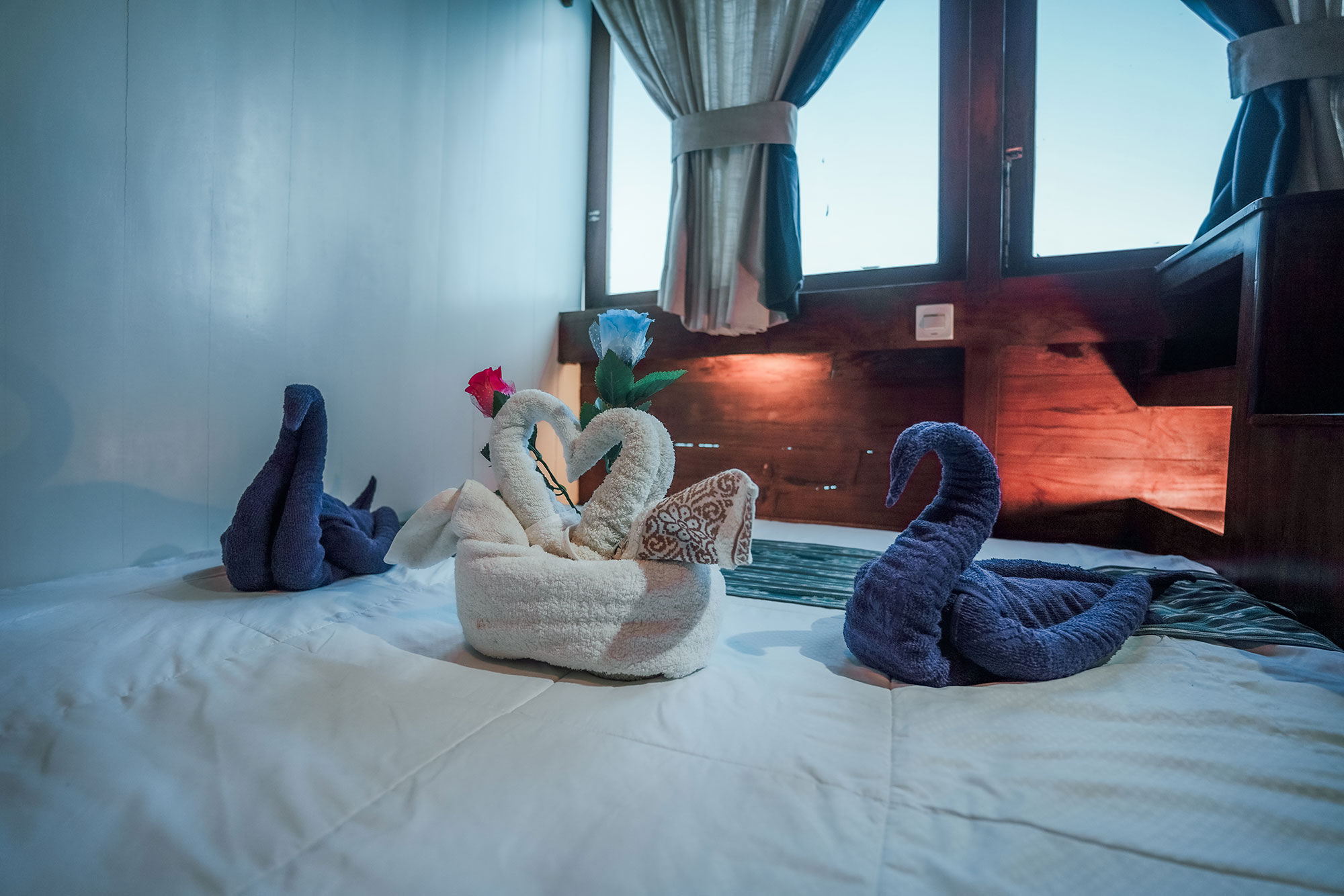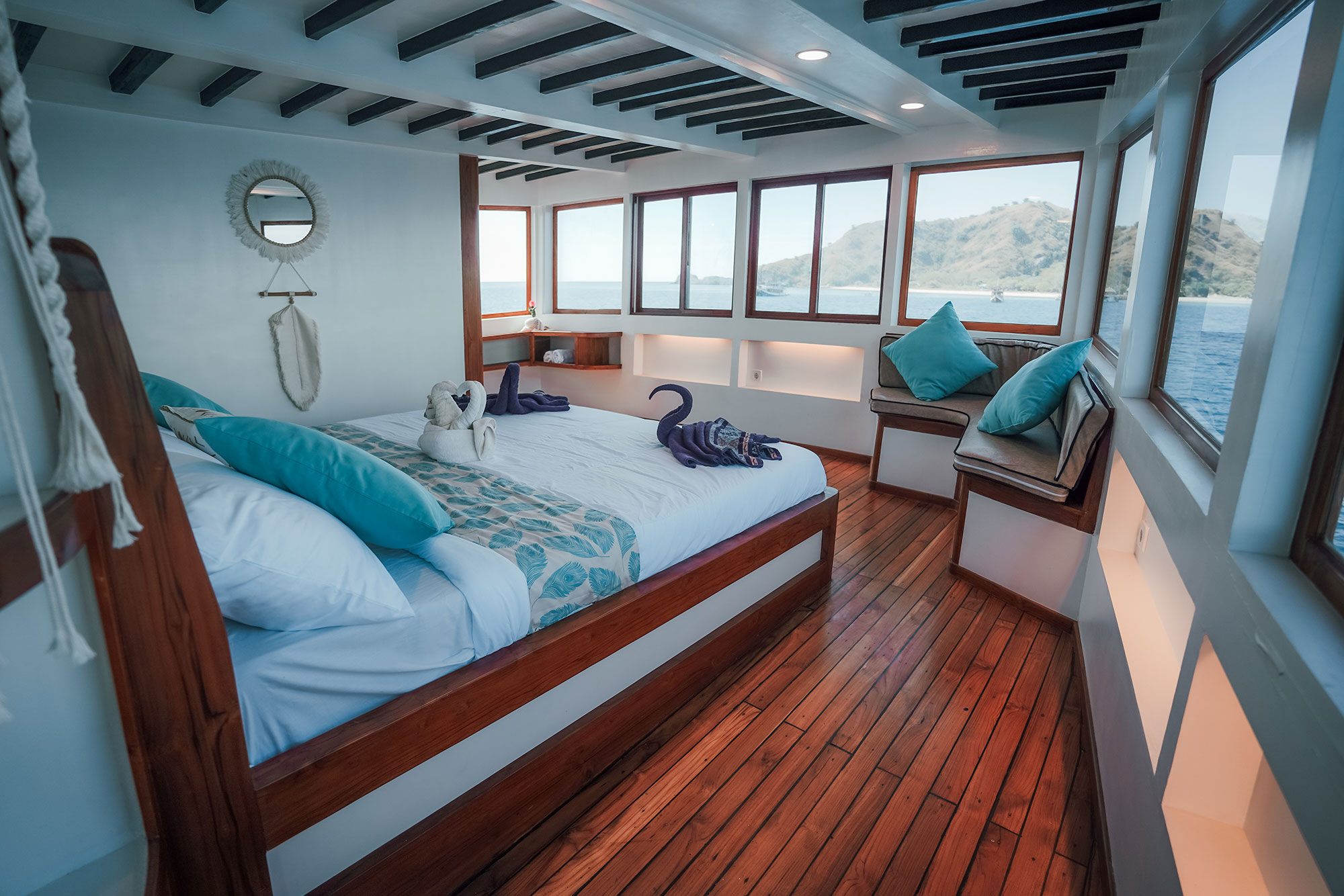 Queenesia II是一艘位于印度尼西亚的美丽32米(105英尺)长的传统帆船潜水船宿。这艘船建于2016年,由铁木制成,坚固耐用。Queenesia II可以舒适地容纳多达16名客人,设有7个舱房:1个豪华舱房、1个主甲板双人舱房、3个双人舱房和2个三人舱房。旅程中包含早餐、午餐、晚餐、点心、矿泉水以及茶和咖啡。Queenesia II的潜水行程采用1名导潜服务4位客人的比例。