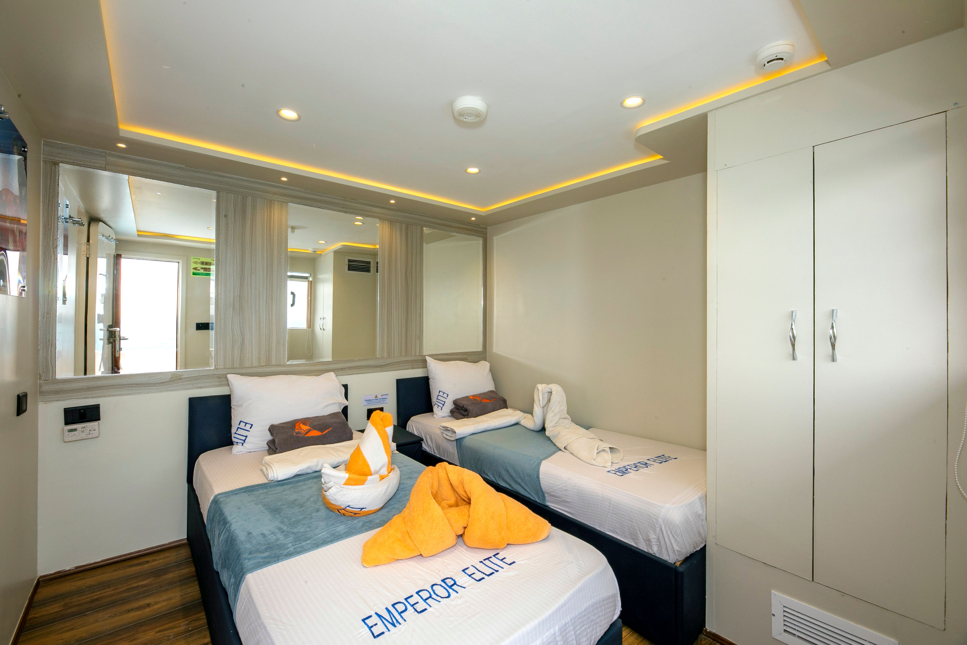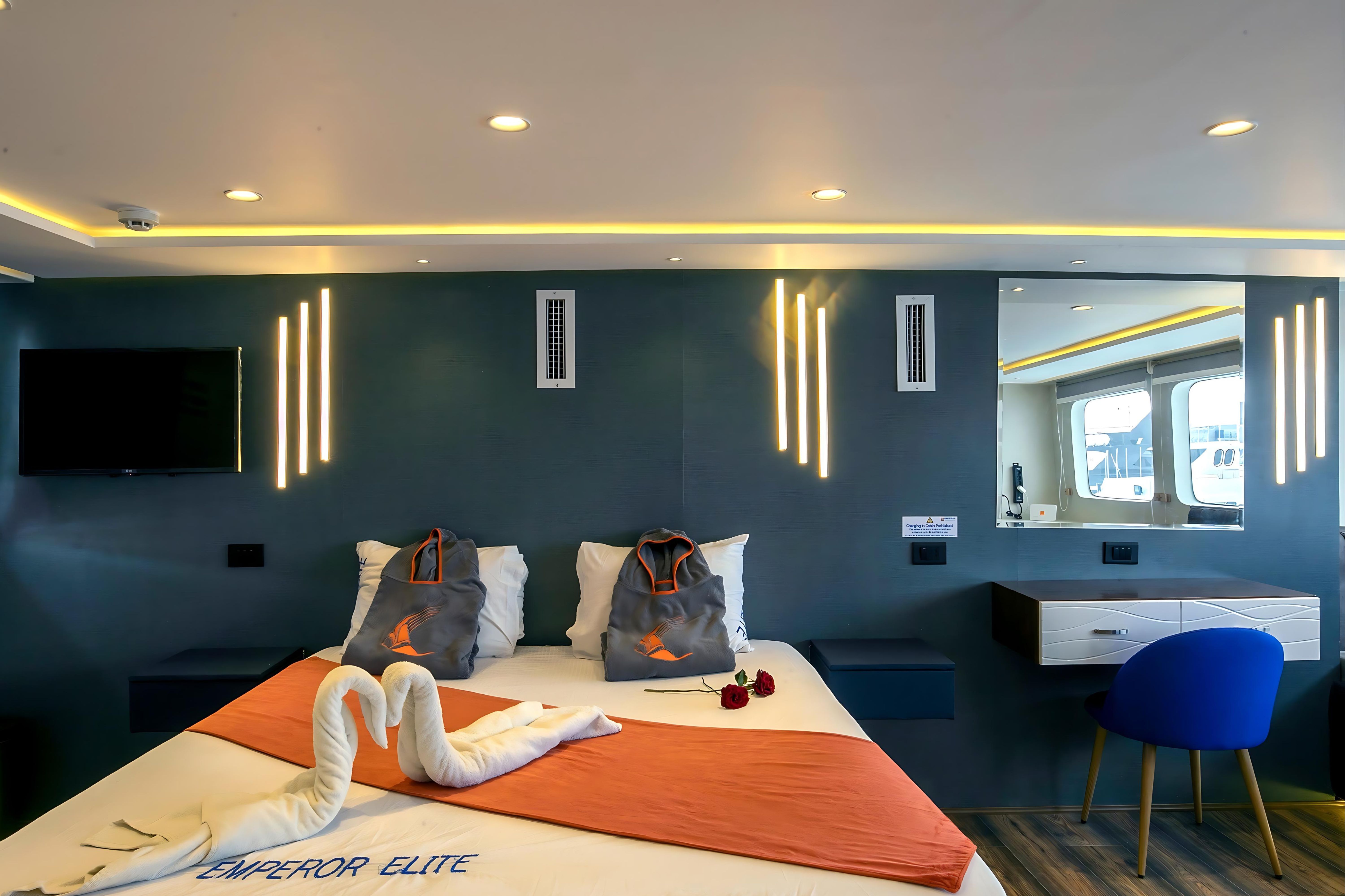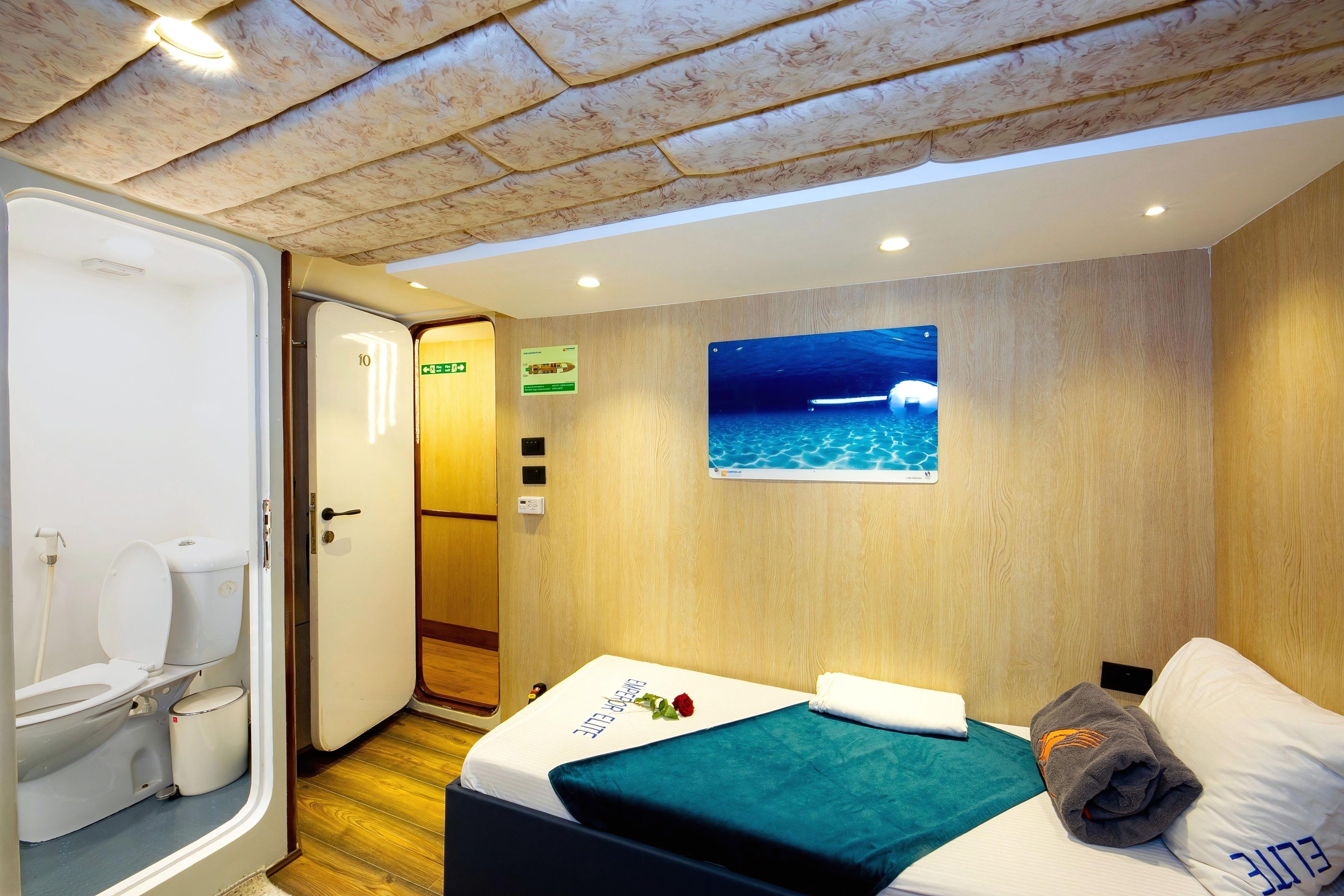M/Y Emperor Elite 位于埃及,是一艘38米长的定制船宿潜水船,全年为红海的一些最佳潜水点提供服务。她可容纳多达26位客人,并有10名船员随时为客人提供满意的服务。Emperor Elite 强调舒适性,船上有13间客舱,配备独立空调和独立浴室。下层甲板有8间标准客舱,各层甲板有3间高级双人客舱,上层甲板设有1间高级行政套房和1间双人初级套房。Emperor Elite 设有两个空调沙龙,内有酒吧和TV/Video/DVD/CD,还有一个大型遮阳日光浴甲板供休闲娱乐。Emperor Elite 是 Emperor Fleet 的一部分,该舰队在埃及、马尔代夫和印度尼西亚运营船宿潜水船。
