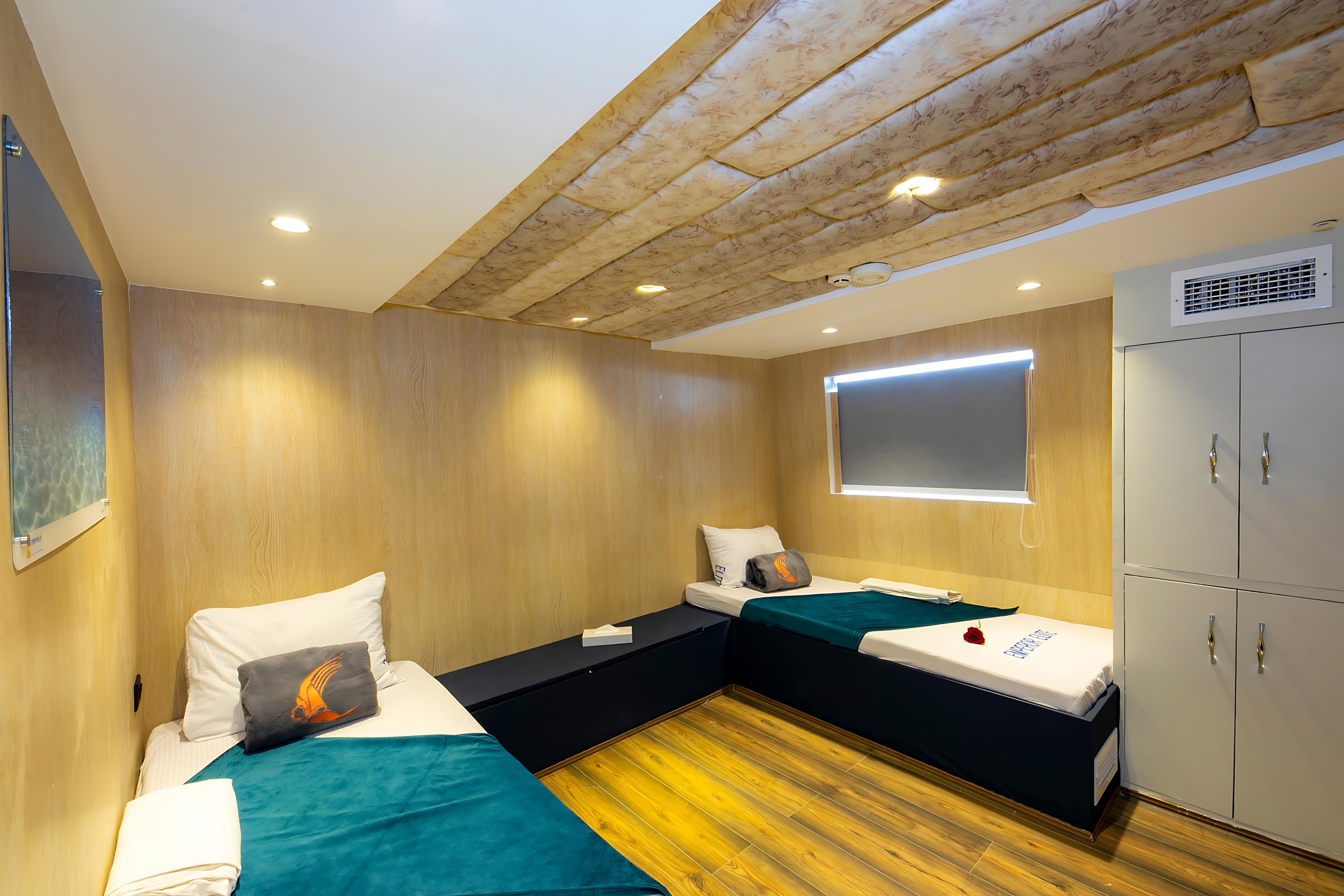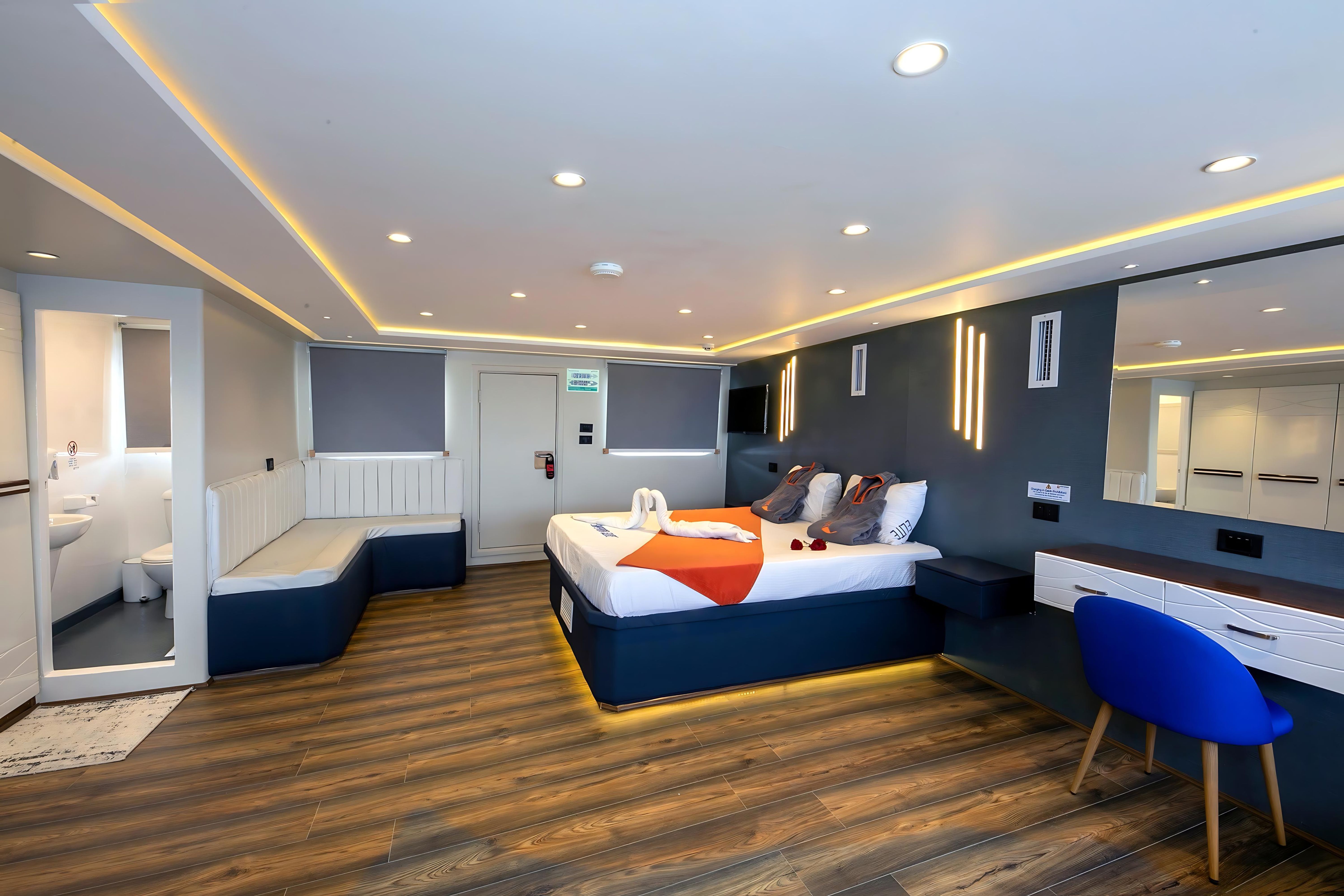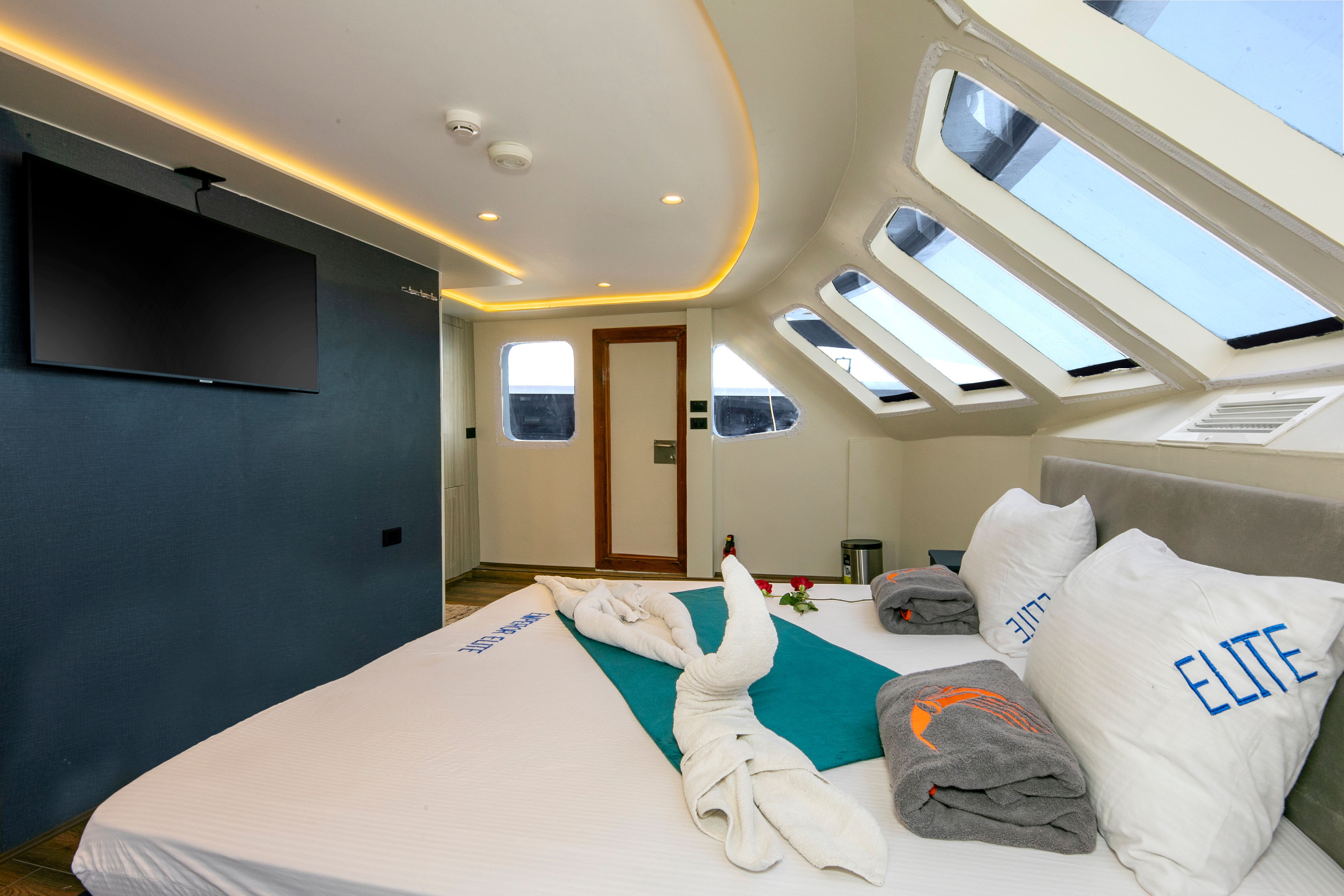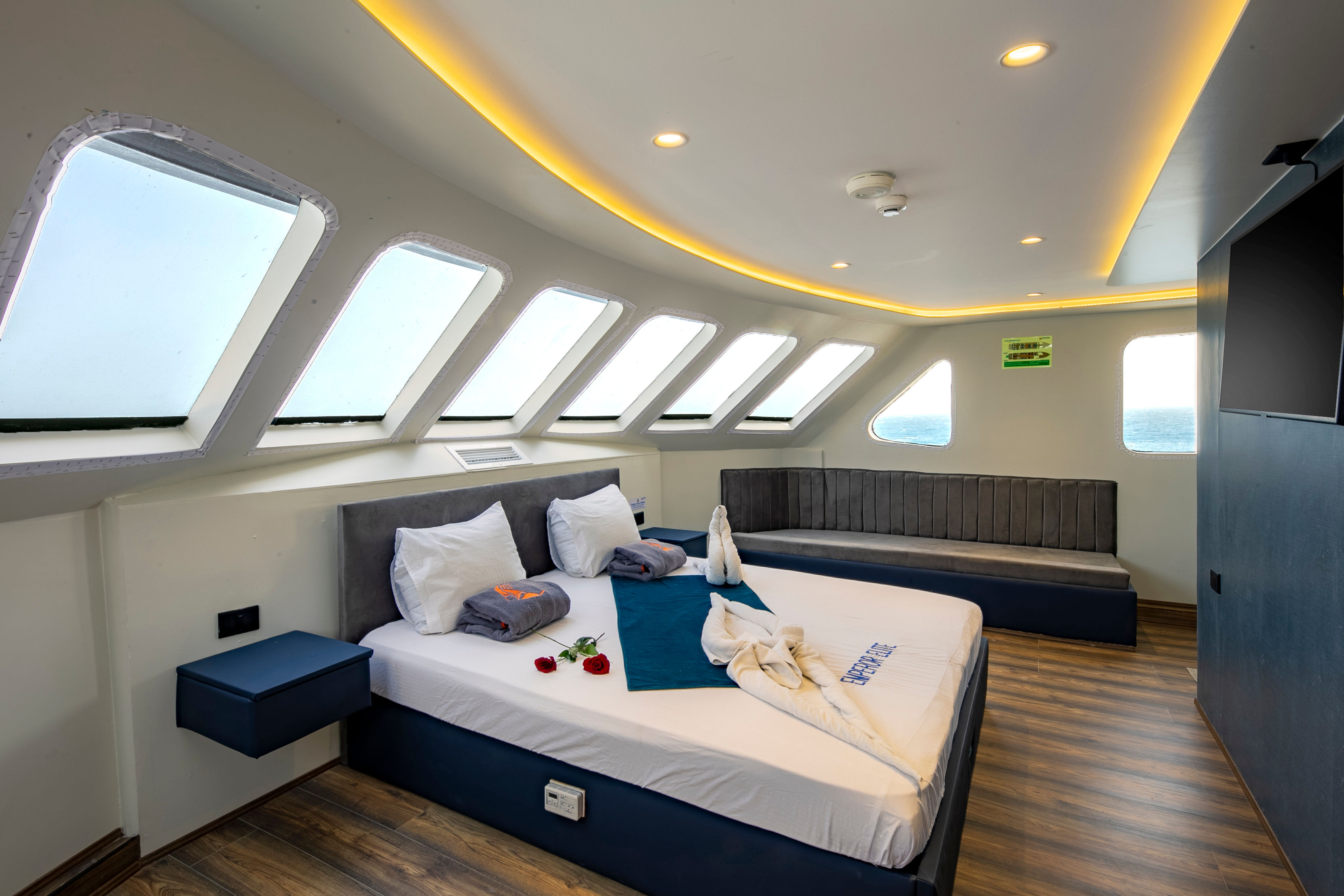 M/Y Emperor Elite 位于埃及,是一艘38米长的定制船宿潜水船,全年为红海的一些最佳潜水点提供服务。她可容纳多达26位客人,并有10名船员随时为客人提供满意的服务。Emperor Elite 强调舒适性,船上有13间客舱,配备独立空调和独立浴室。下层甲板有8间标准客舱,各层甲板有3间高级双人客舱,上层甲板设有1间高级行政套房和1间双人初级套房。Emperor Elite 设有两个空调沙龙,内有酒吧和TV/Video/DVD/CD,还有一个大型遮阳日光浴甲板供休闲娱乐。Emperor Elite 是 Emperor Fleet 的一部分,该舰队在埃及、马尔代夫和印度尼西亚运营船宿潜水船。
