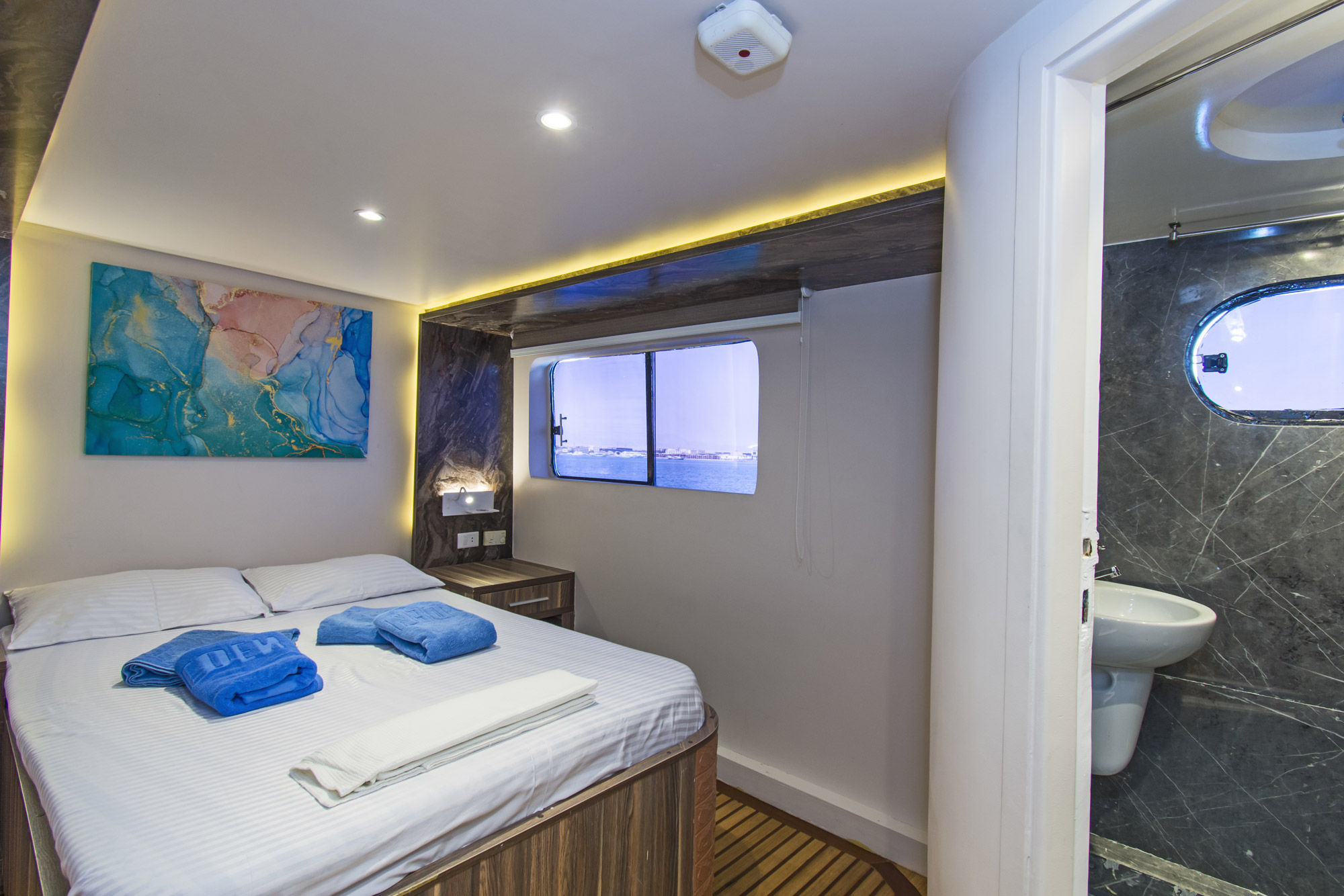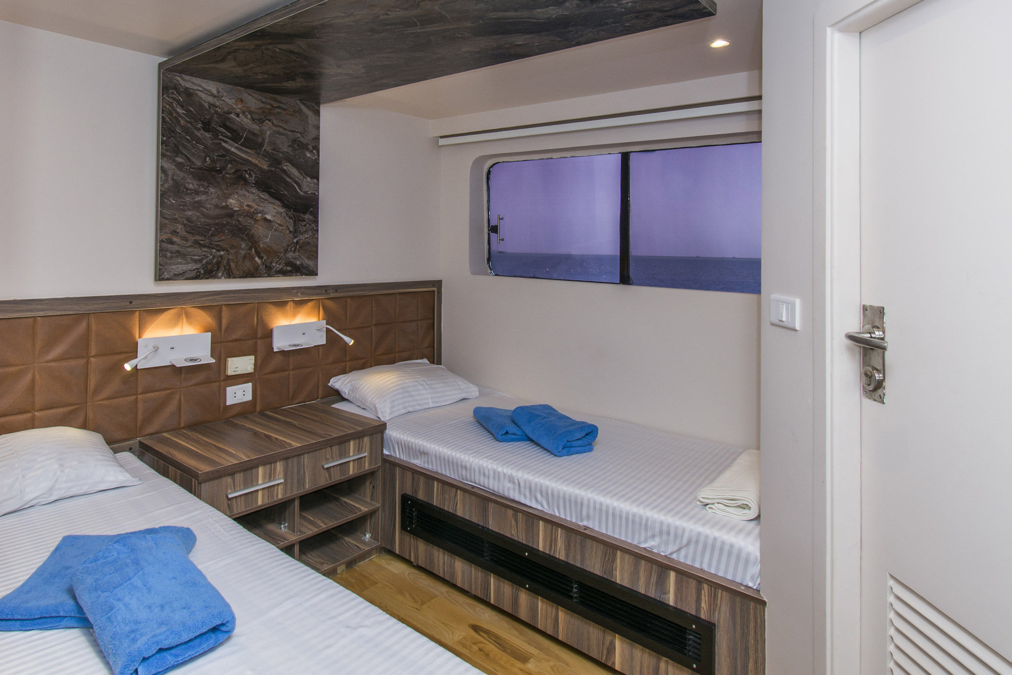 Golden Dolphin船队的新成员MY Golden Dolphin III于2008年建造,专为潜水者的需求而设计。船上有10间舱房,只能容纳20位客人。每个舱房都配有空调、私人浴室和迷你吧。主甲板有6间双床舱,上层甲板有2间双床舱,还有2间配有特大号床的双人舱,通过大窗户可以获得更多自然光线。宽敞的休息室横跨整个位于下甲板的空间,配备空调、娱乐系统、酒吧及饮料站和就餐区。日光甲板上设有第二个酒吧和遮阳休息区,是一天潜水结束后完美的放松场所。对于喜爱阳光的人,天窗甲板上设有舒适的躺椅。
