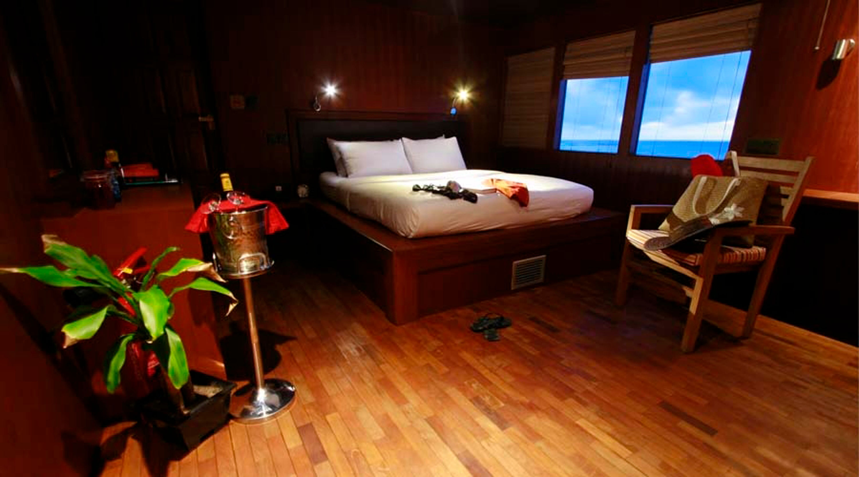 MV Theia Liveaboard拥有一个美丽的户外用餐区,享有壮观的海景,您可以在此享用精美的套餐或自助餐。而“Sky Bar”提供了一个完美的地方,让您在潜水一天之后放松身心。此外,空调沙龙还有电视和娱乐系统为您提供进一步的休闲时光。