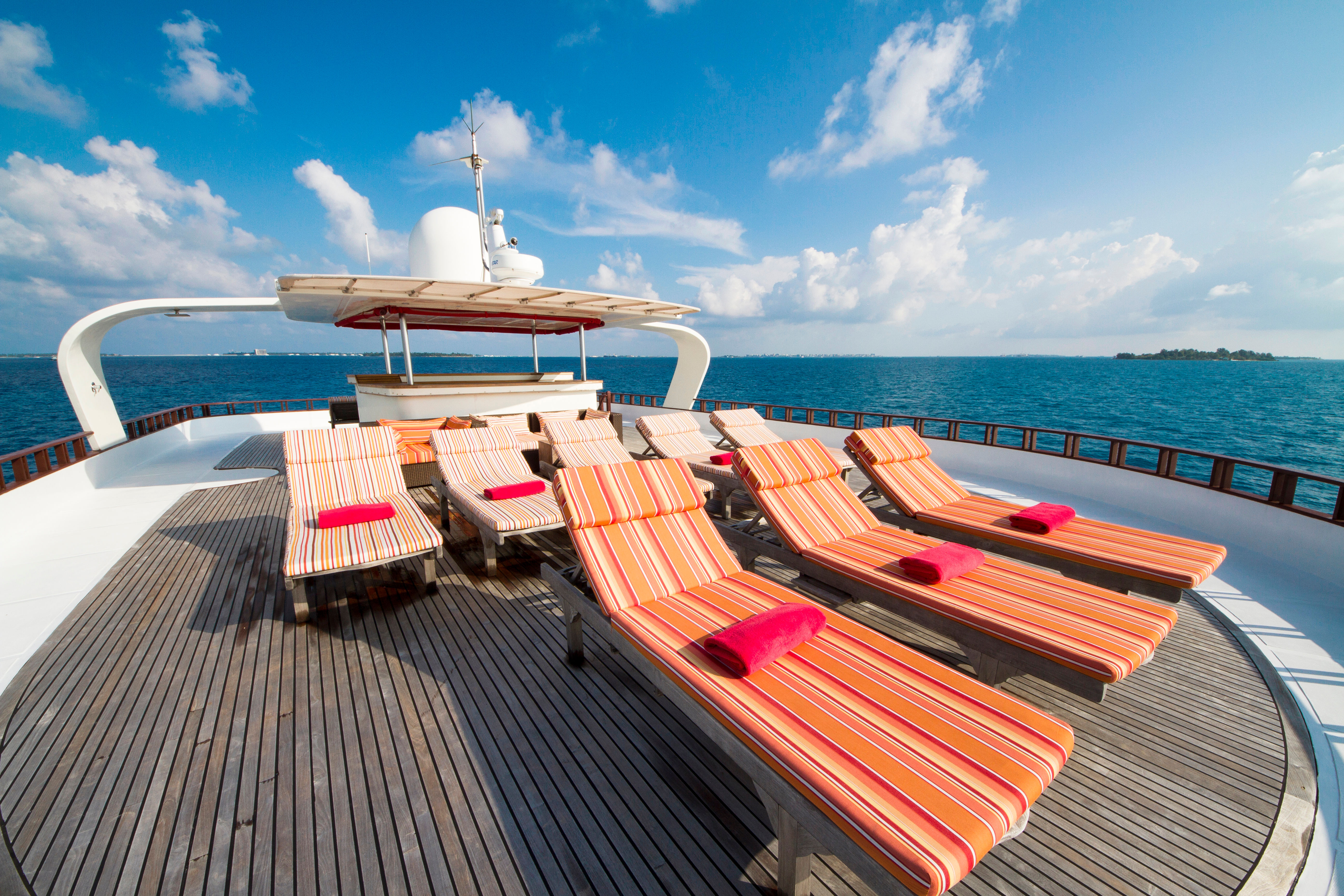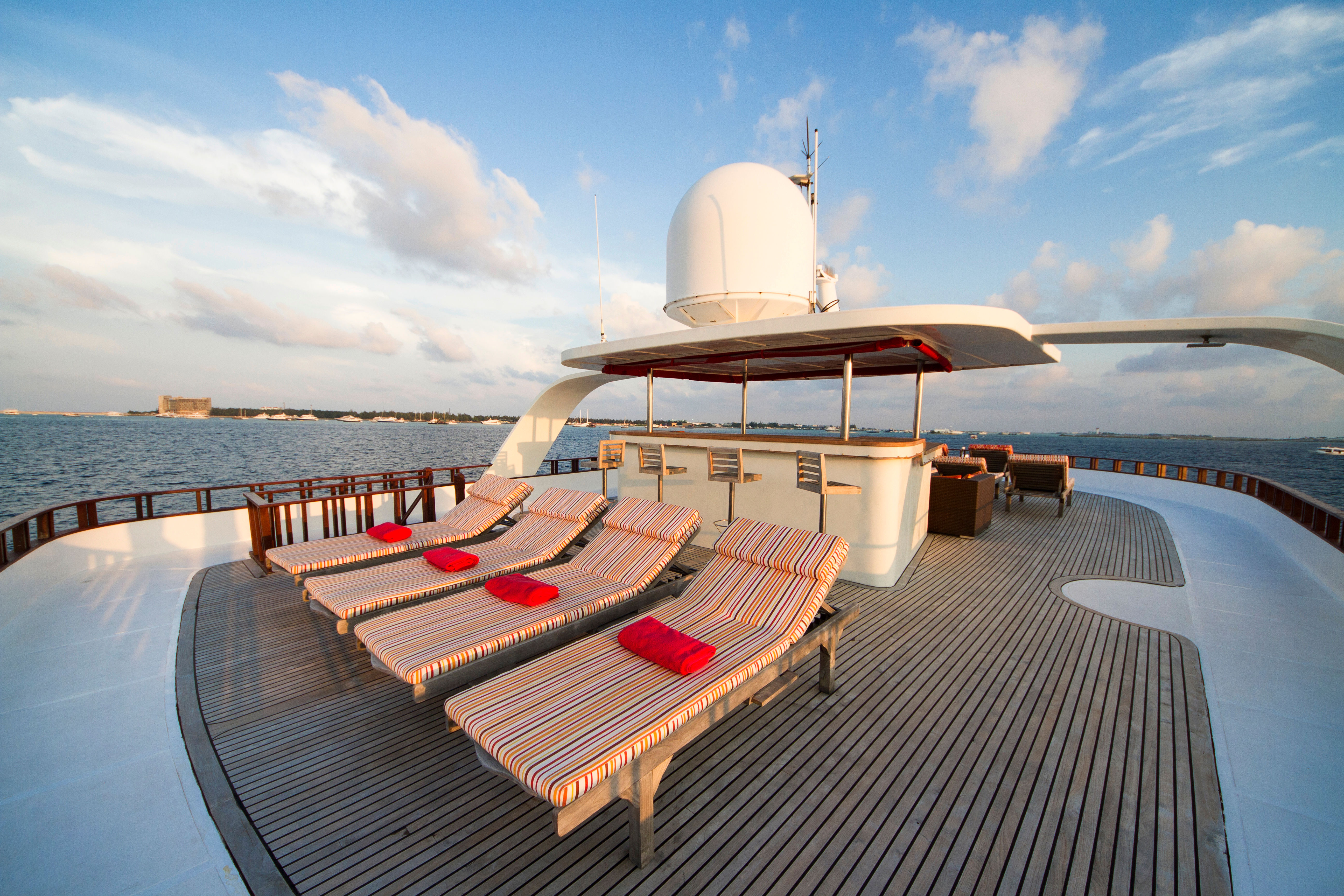 The Dune Theia Liveaboard is a 32m vessel designed to let you explore the stunning underwater world of the Maldives in luxury. The Dune Theia Liveaboard accommodates up to 20 guests in 10 tastefully decorated air-conditioned cabins with en-suite bathrooms.