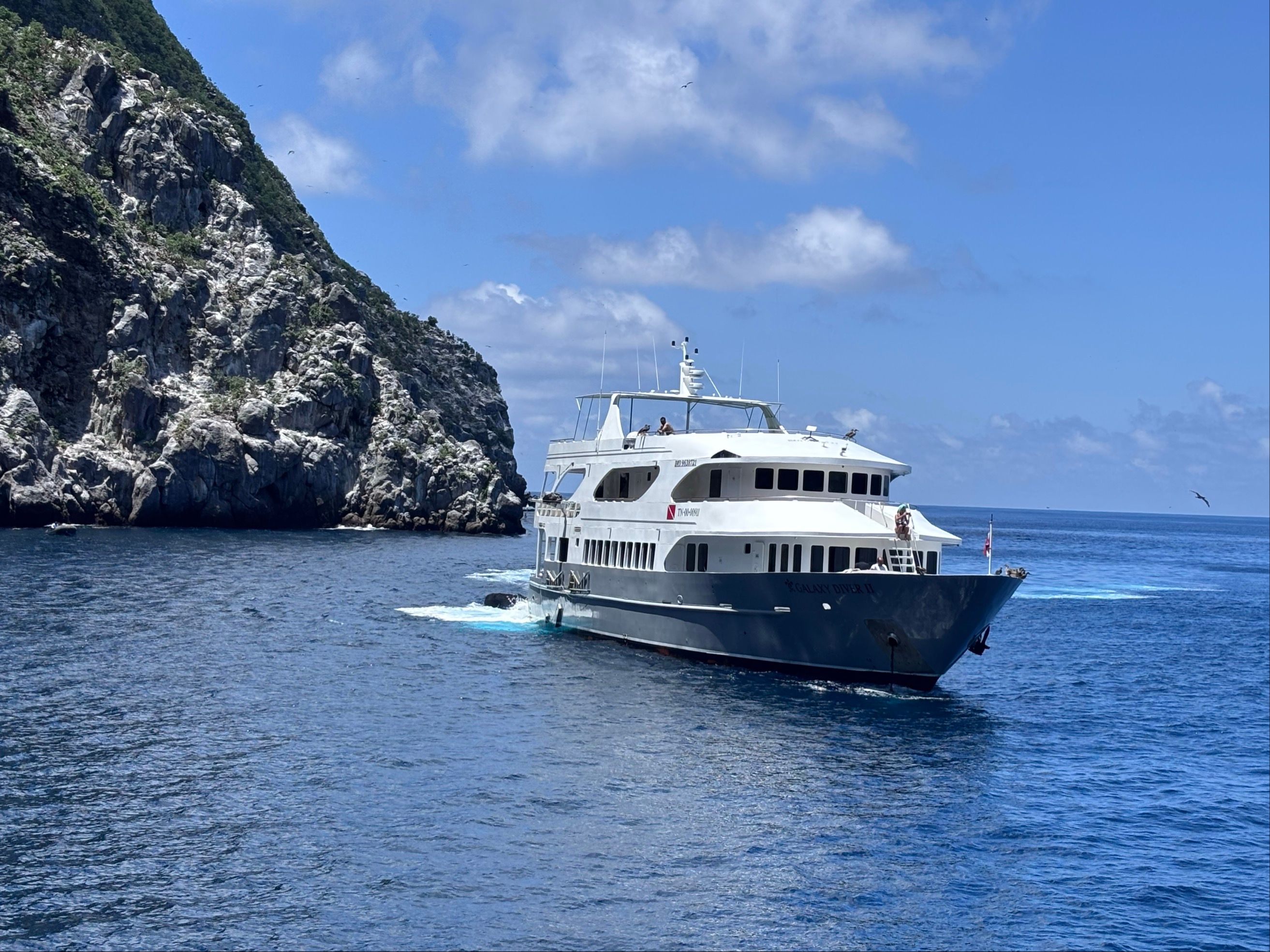Galaxy Diver II是一艘可以搭载16名乘客进行潜水和自然主义旅行的船宿潜水船,航行于加拉帕戈斯群岛(Galapagos)。船上共有8个双人舱。Galaxy Diver II的潜水行程包括前往世界闻名的潜点,如Carrion Point、Wolf Island、Shark Bay、El Arenal、Darwin’s Pillars(原Darwin's Arch)和Cousin Rock。在这些旅行中,常见的物种包括双髻鲨(Hammerhead shark)、鲸鲨(Whaleshark)、鳐鱼、加拉帕戈斯鲨鱼、虎鲨、虎鲸(Orca)。自然主义行程则带领客人进行独特的野生动物观赏和观光陆地游览。