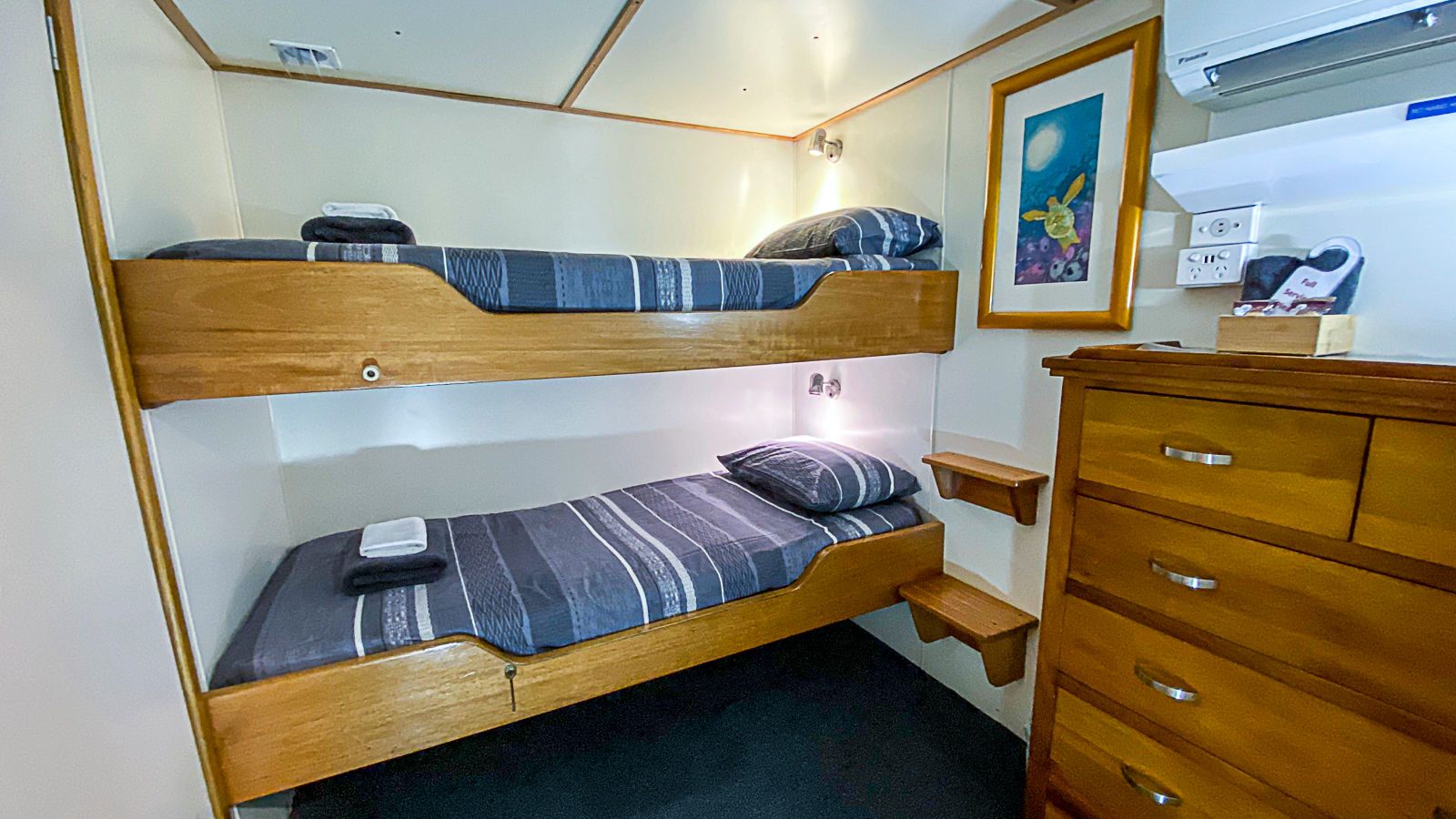 MV Spoilsport船宿是一艘屡获殊荣的船只,它是专为探索珊瑚海这一少有潜水地点而定制建造的。船只的双船体设计增加了稳定性,使其全年航行平稳。船上提供四种不同的客舱标准,以满足不同的预算需求,从配备双层床的经济型客舱到带双人床和海景的高级客舱。