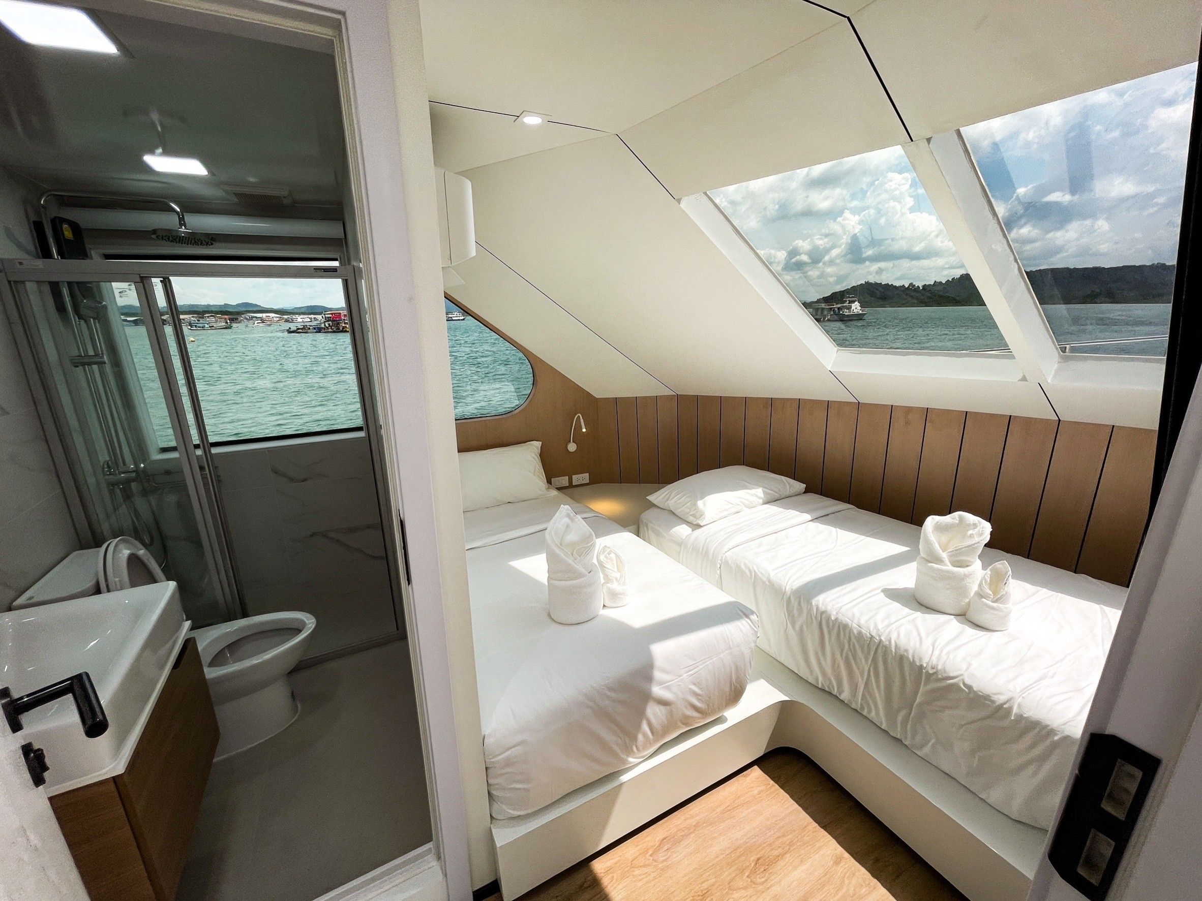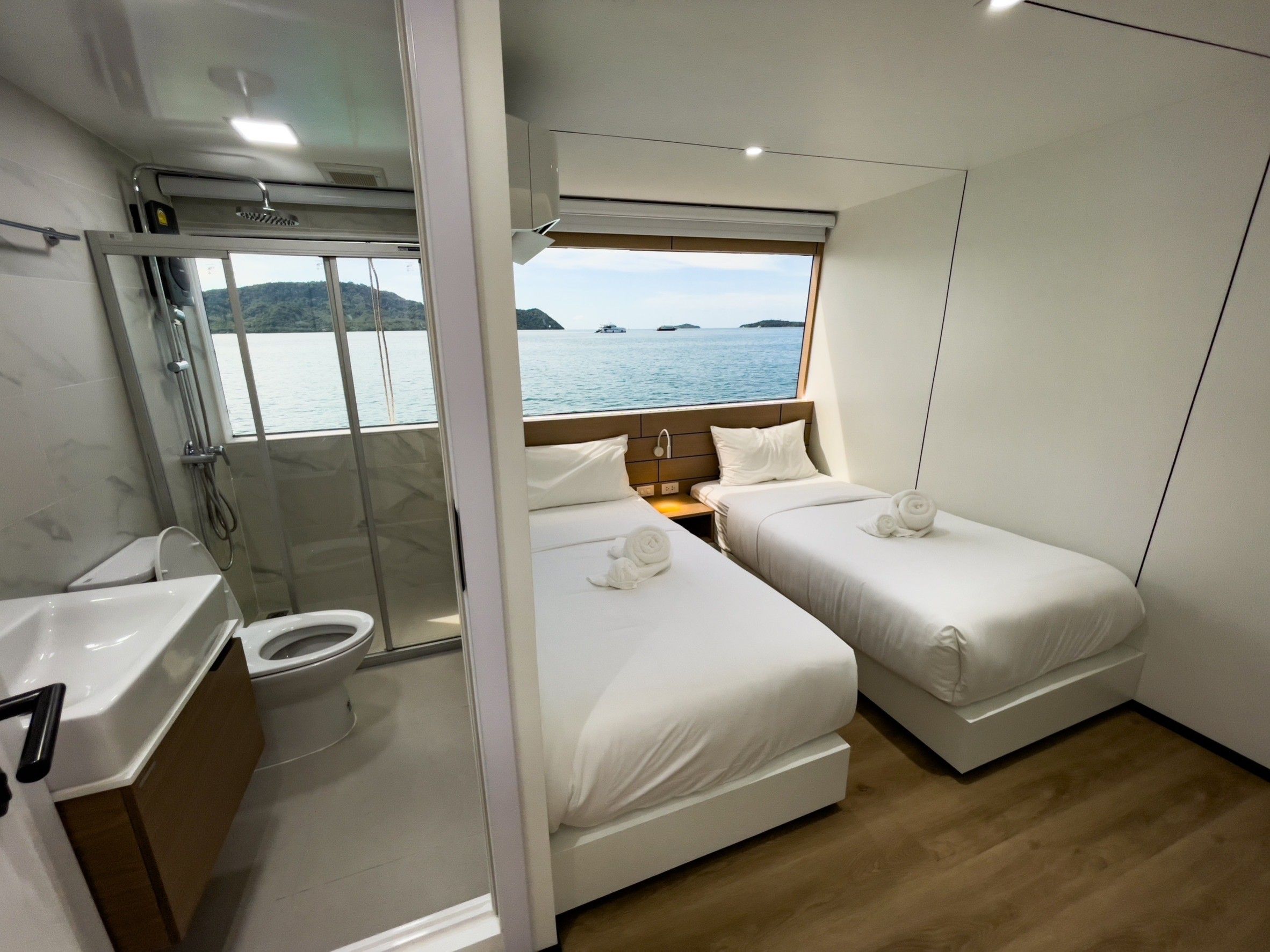 客人将享受4个宽阔的甲板,其中包括一个带热水浴缸和日光浴区的日光甲板。相机室配有五个工作台、冲洗水箱和一个潜水平台。船上提供免费的Nitrox(氮气),最多可进行15次潜水,另有一个提供PlayStation 5和Nintendo等娱乐选项的休息室。每天提供四餐自助餐,涵盖泰国及西式料理,并可根据需求提供素食和纯素食选项。