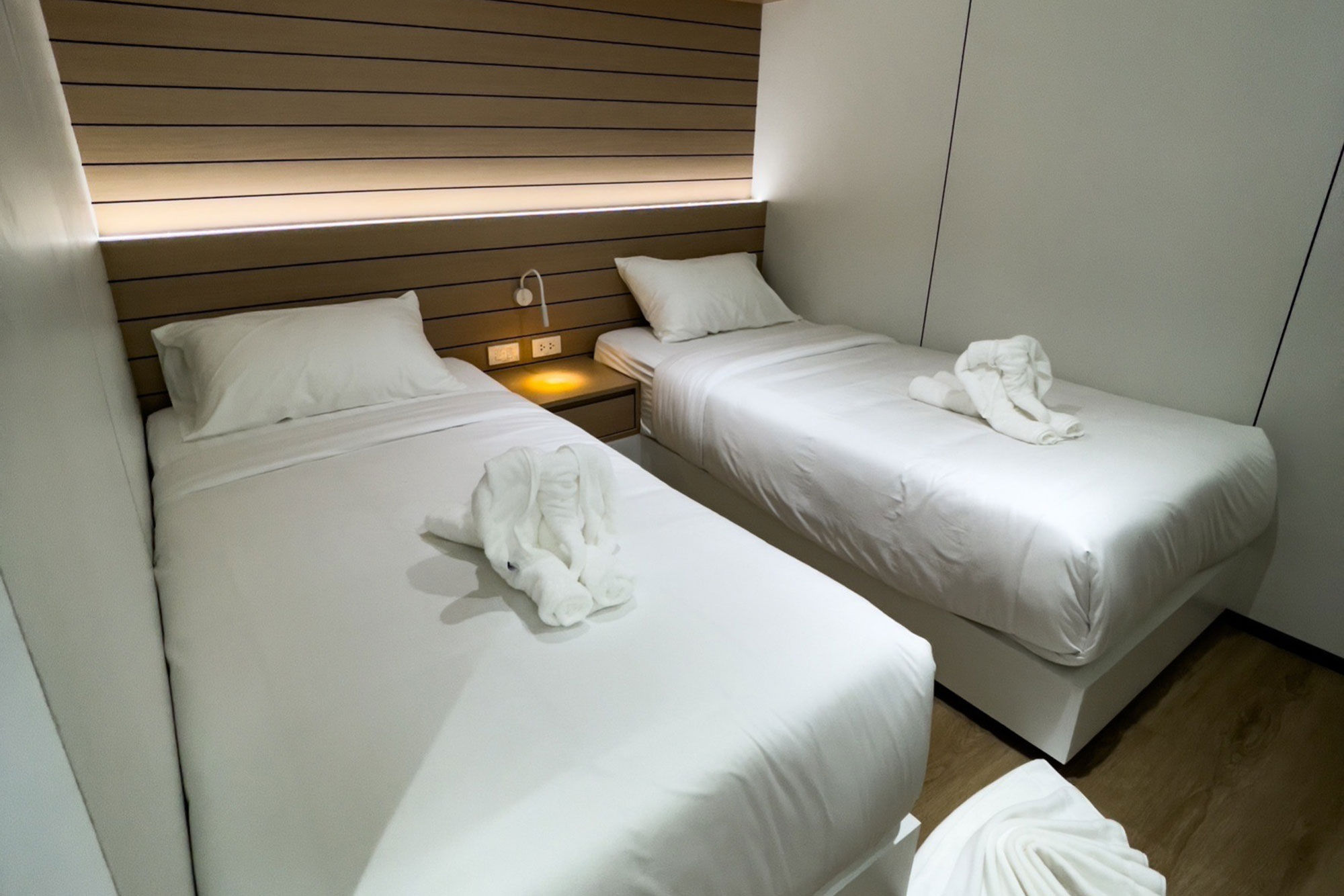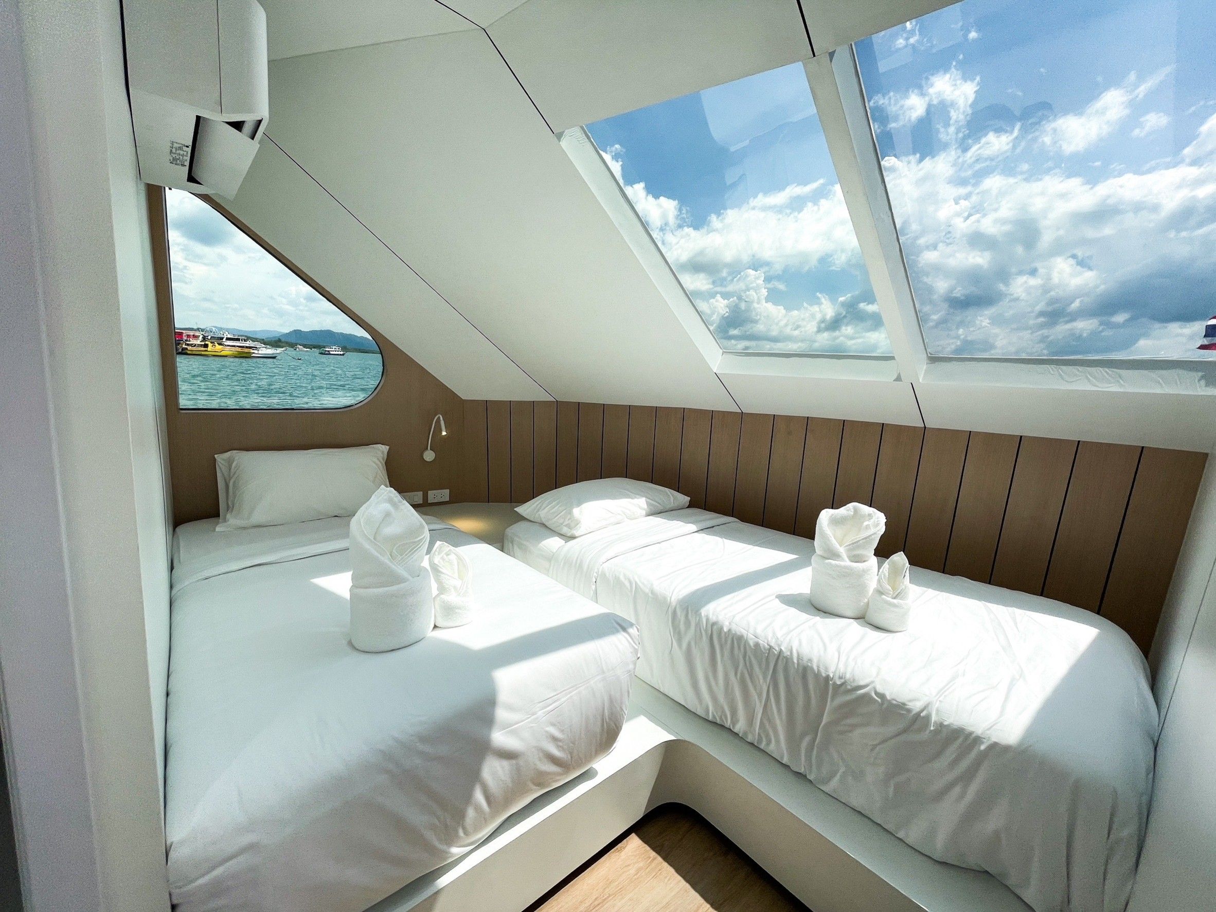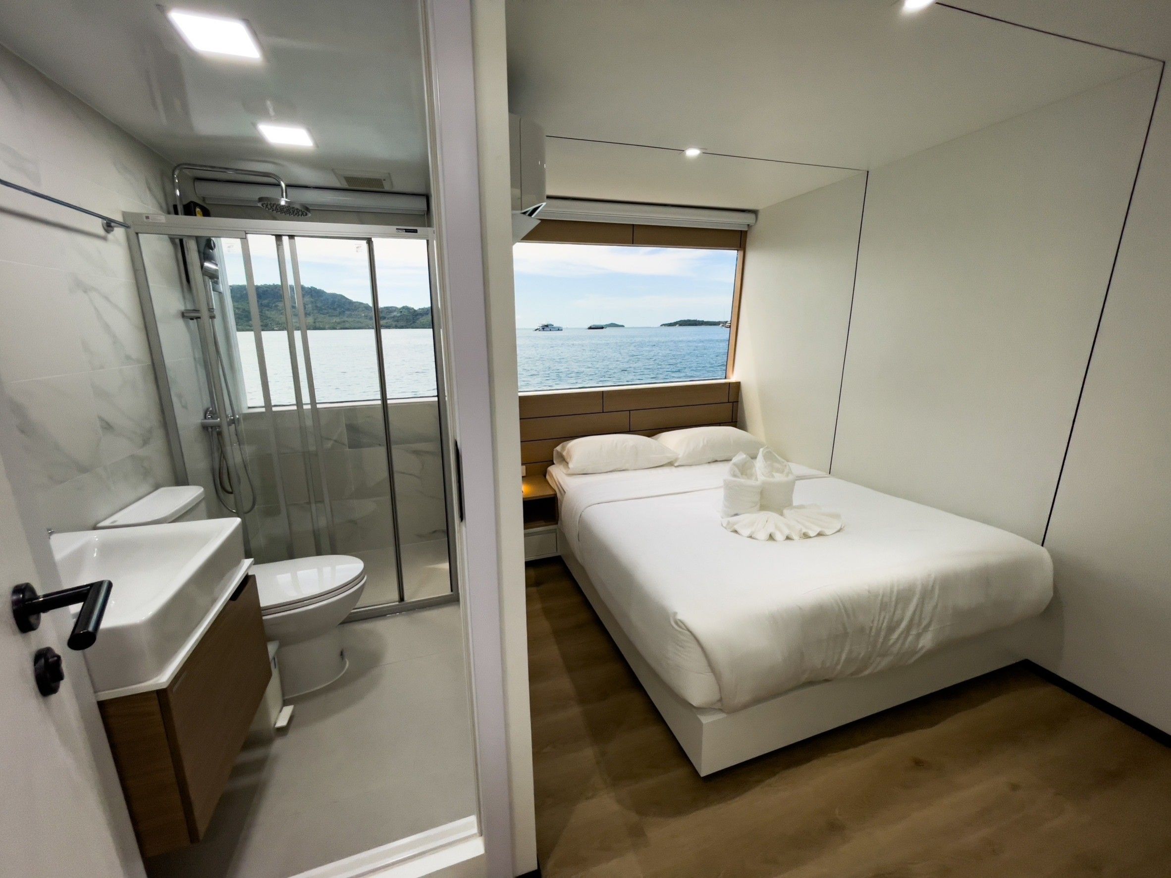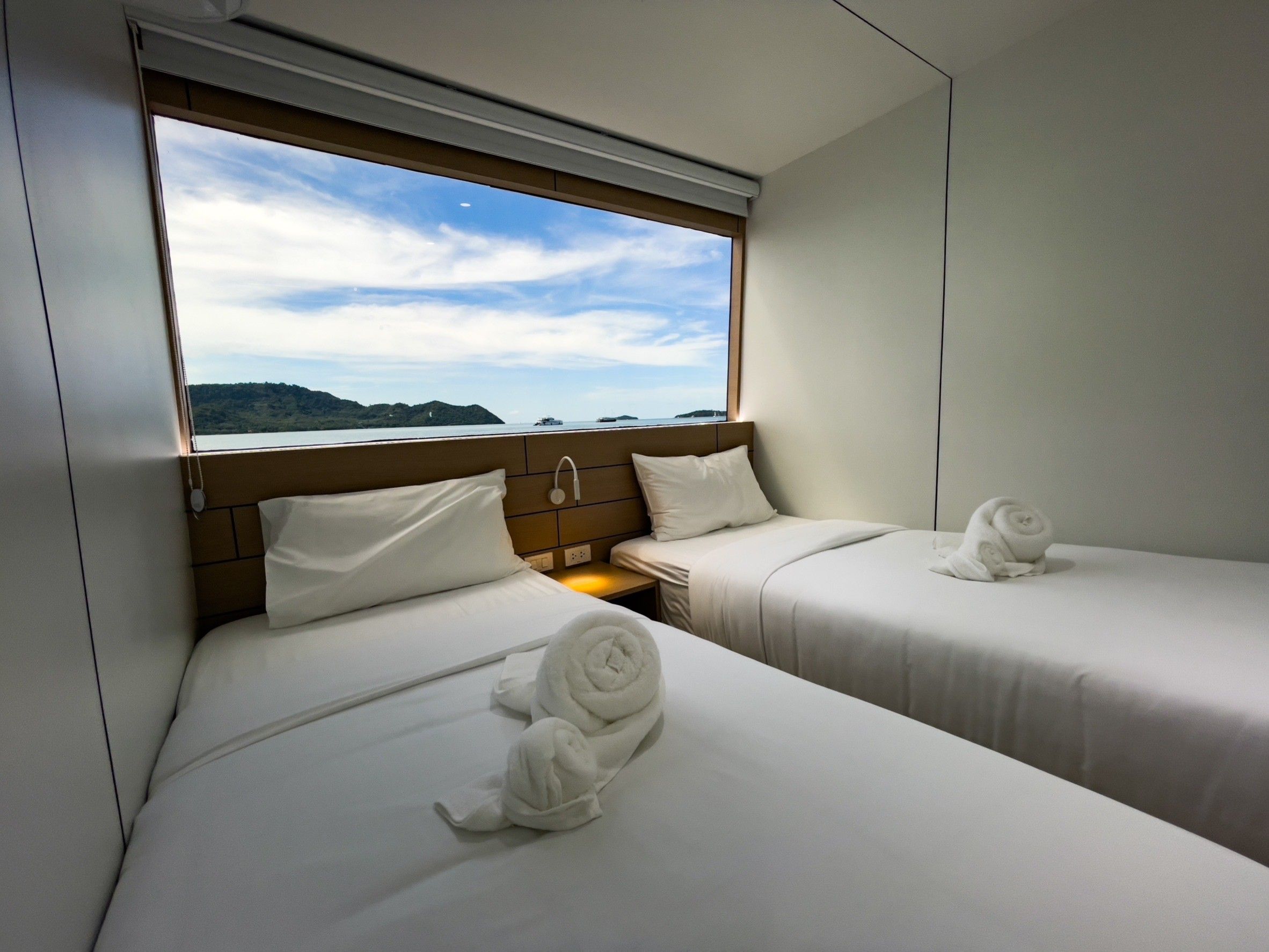 客人将享受4个宽阔的甲板,其中包括一个带热水浴缸和日光浴区的日光甲板。相机室配有五个工作台、冲洗水箱和一个潜水平台。船上提供免费的Nitrox(氮气),最多可进行15次潜水,另有一个提供PlayStation 5和Nintendo等娱乐选项的休息室。每天提供四餐自助餐,涵盖泰国及西式料理,并可根据需求提供素食和纯素食选项。