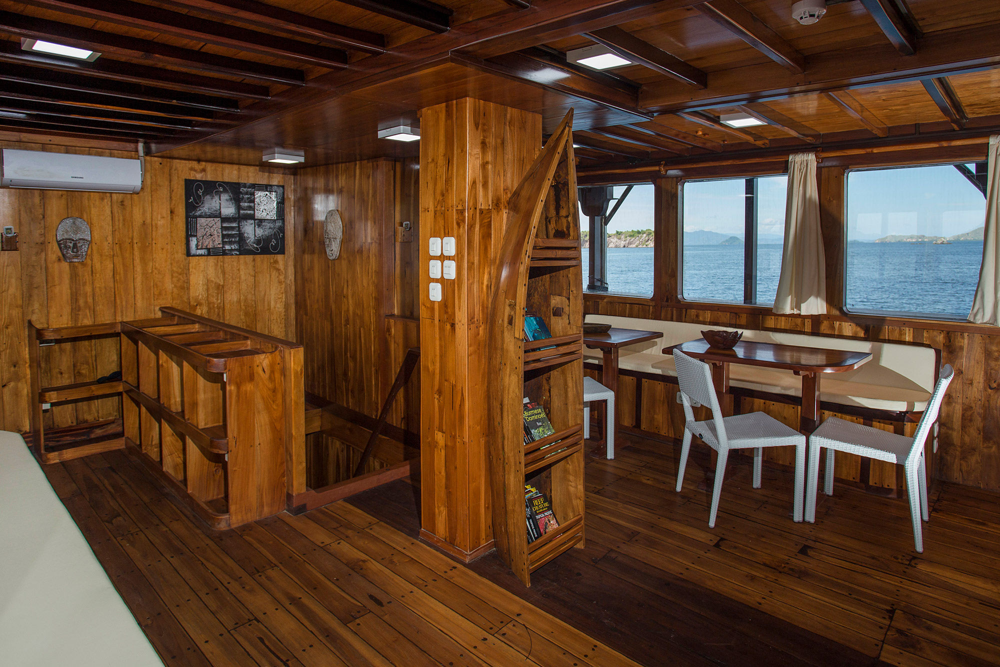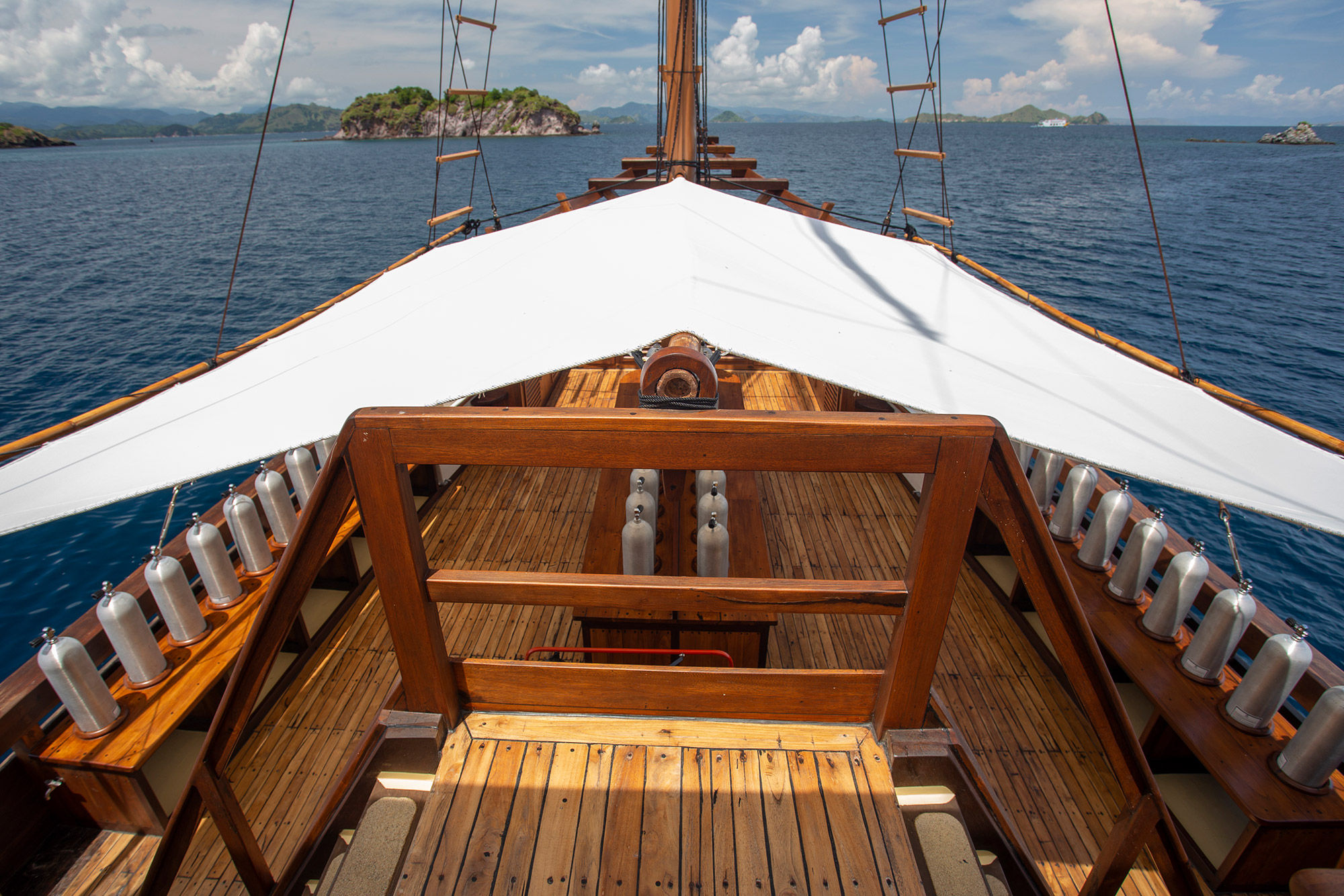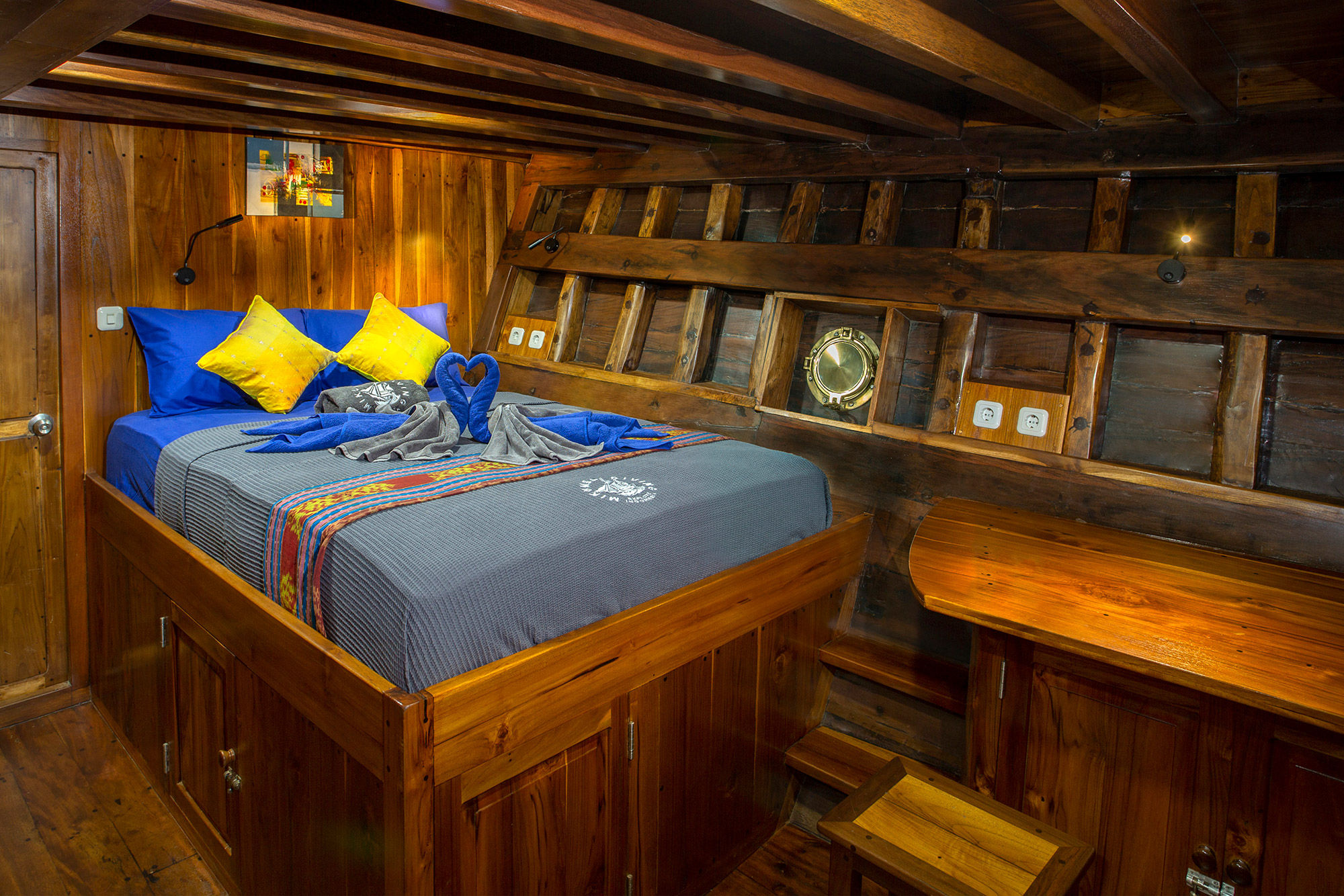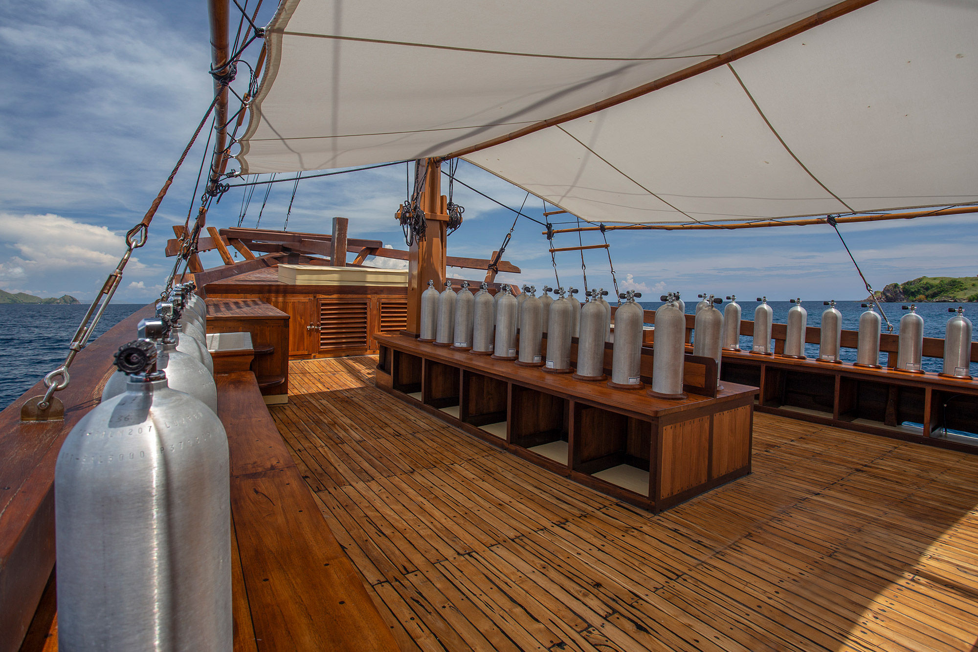 Built in Sulawesi, considered the “boatyard” of Indonesia, Jelajahi Laut is a beautiful phinisi boat constructed in 2021 with local teak wood and ironwood, ready to take you to the hottest dive spots in Indonesia. Jelajahi Laut means “Explore the Sea,” which she delivers with expeditions to Komodo, Raja Ampat, Banda Islands, Alor, and Ambon, to name a few. This traditional phinisi was designed by divers, optimizing the comforts for diver guests with a spacious equipment area and camera station, where you can gear up and prepare for your underwater adventure.