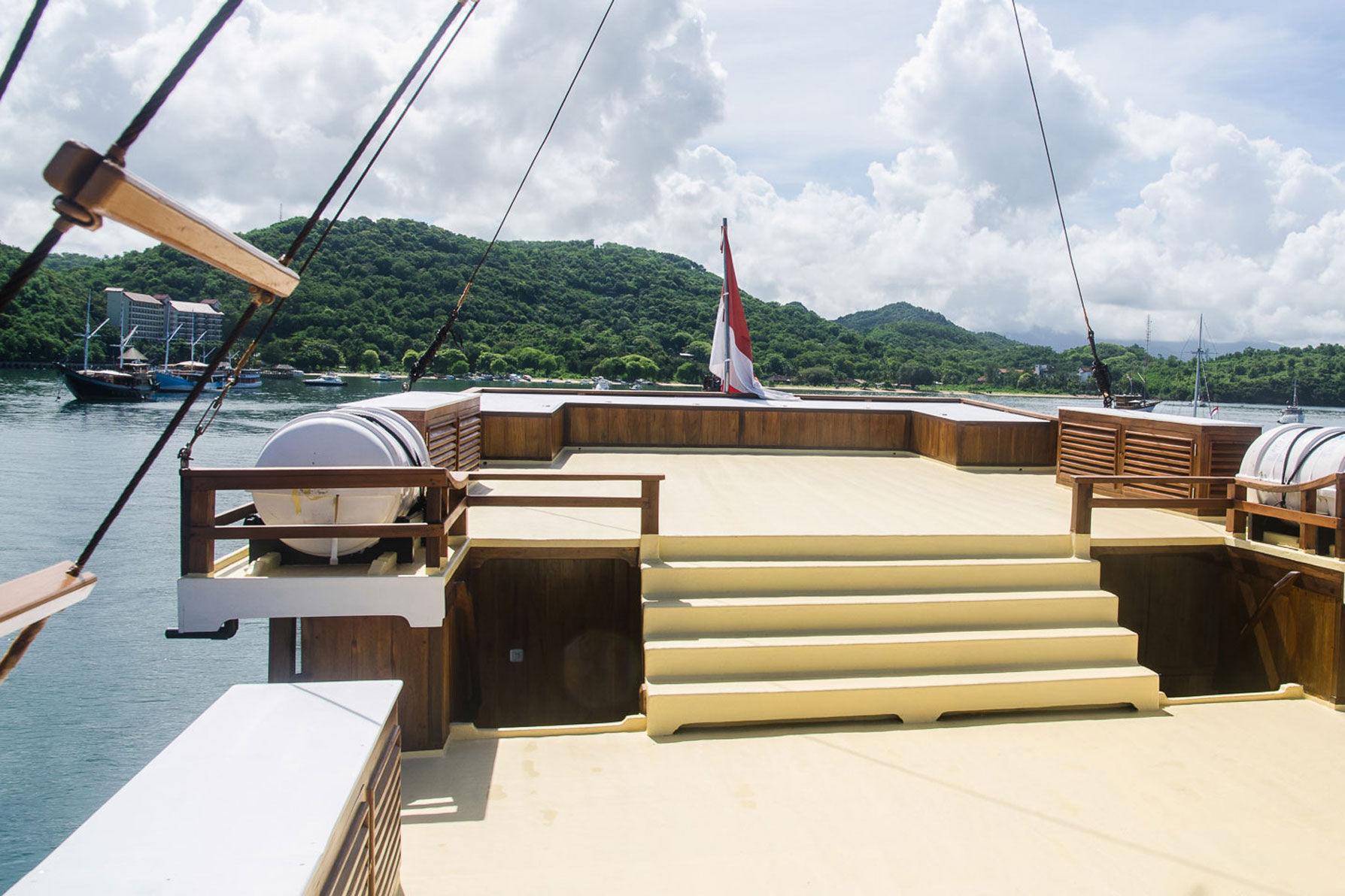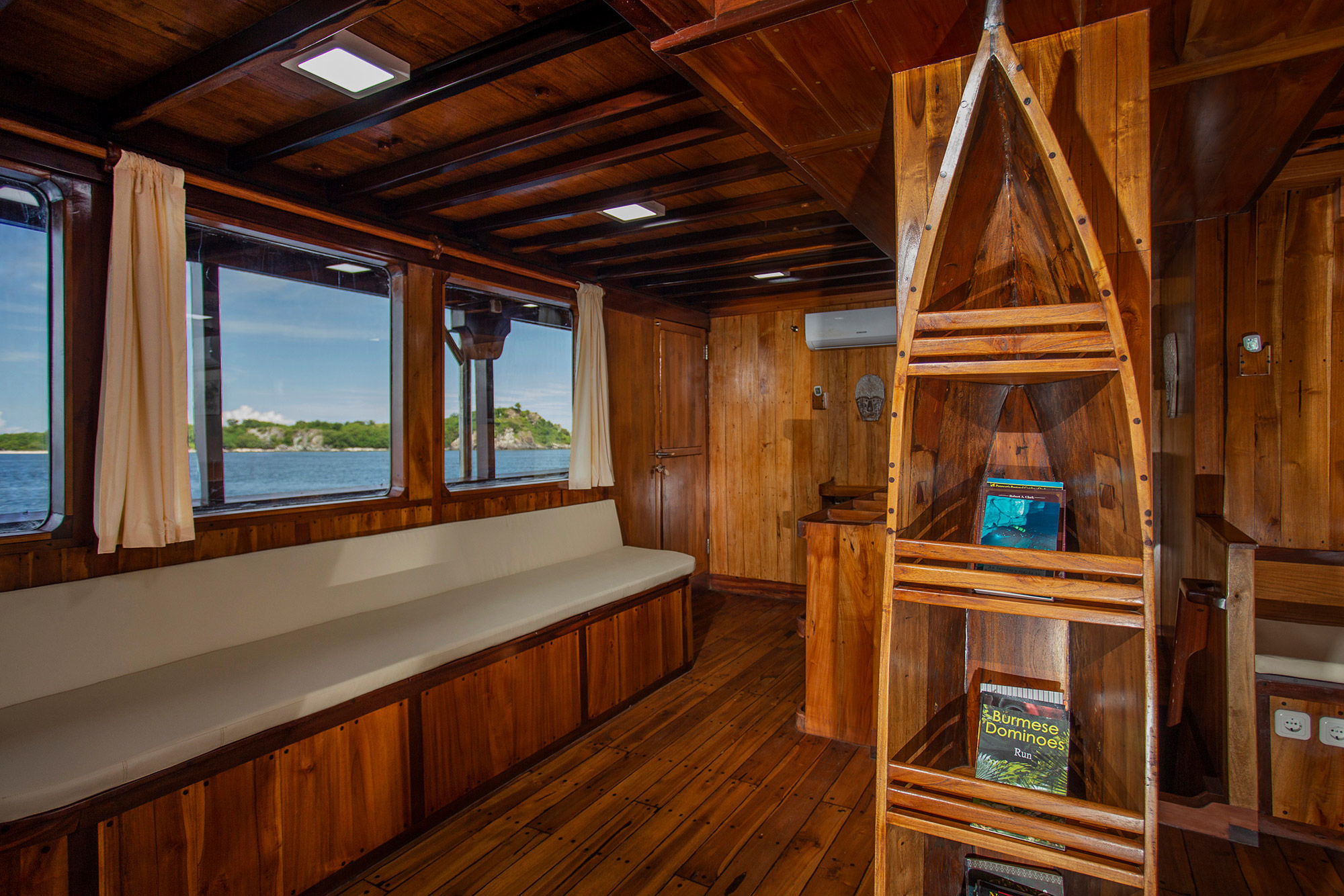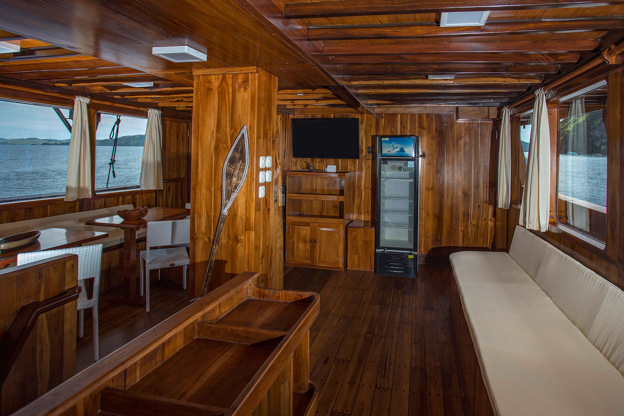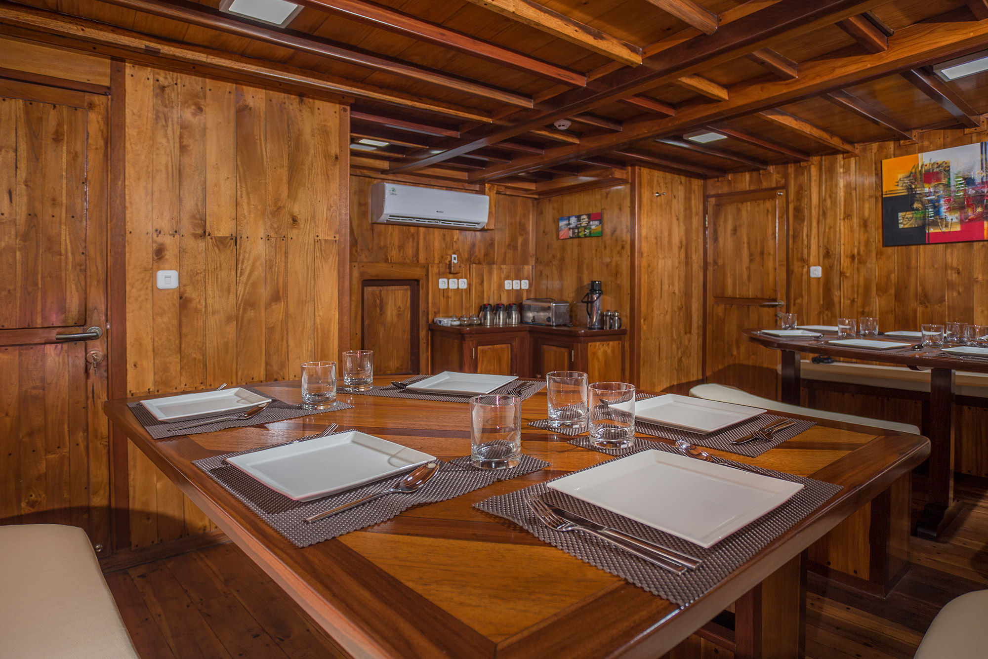 Built in Sulawesi, considered the “boatyard” of Indonesia, Jelajahi Laut is a beautiful phinisi boat constructed in 2021 with local teak wood and ironwood, ready to take you to the hottest dive spots in Indonesia. Jelajahi Laut means “Explore the Sea,” which she delivers with expeditions to Komodo, Raja Ampat, Banda Islands, Alor, and Ambon, to name a few. This traditional phinisi was designed by divers, optimizing the comforts for diver guests with a spacious equipment area and camera station, where you can gear up and prepare for your underwater adventure.