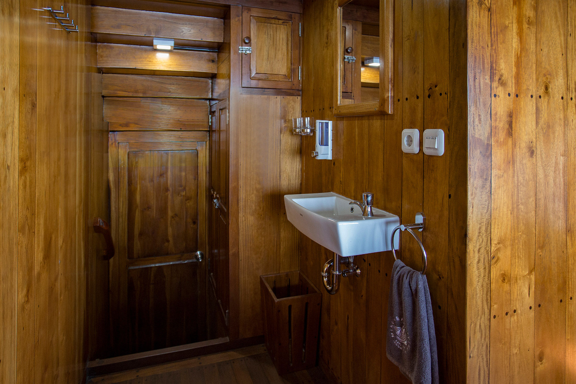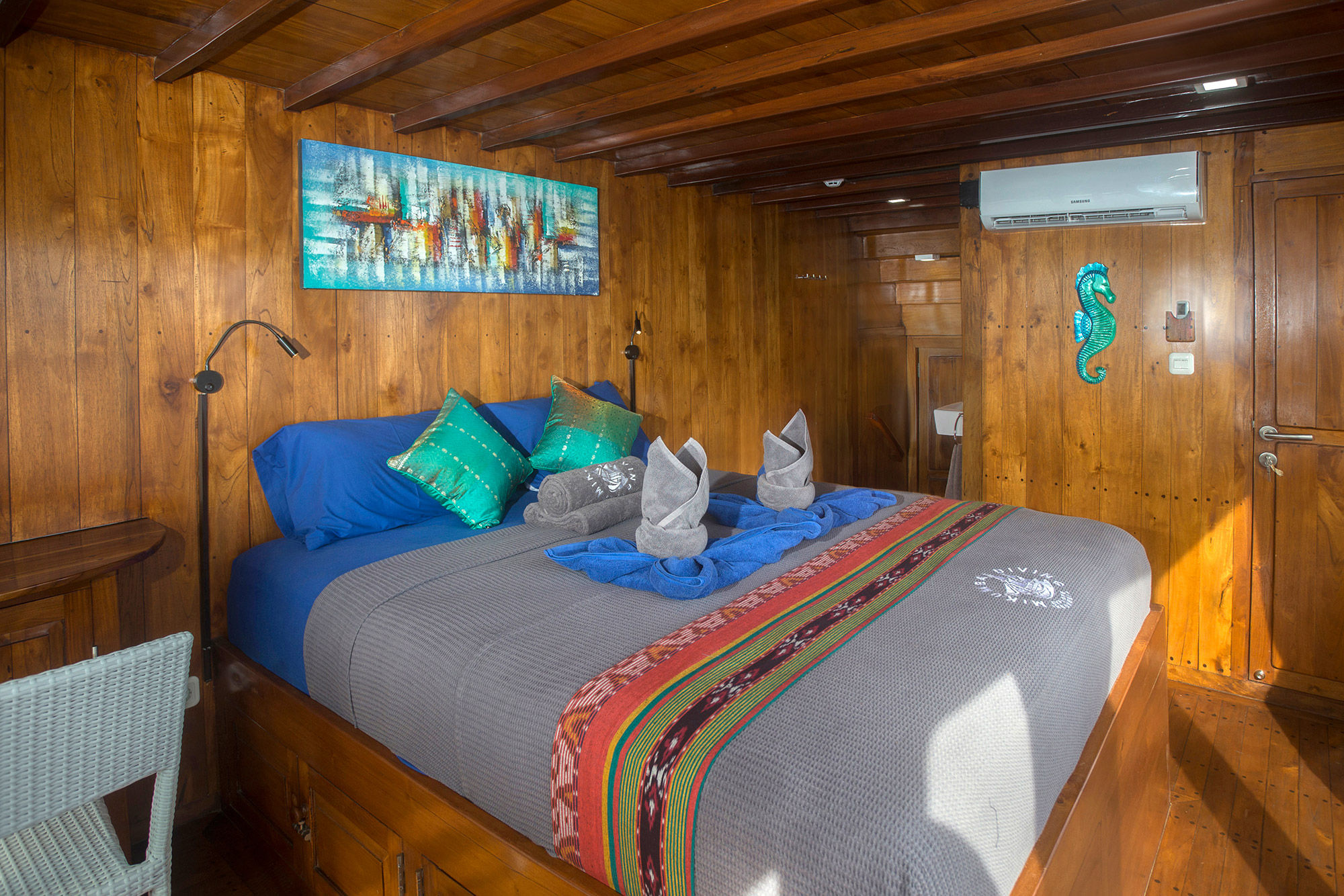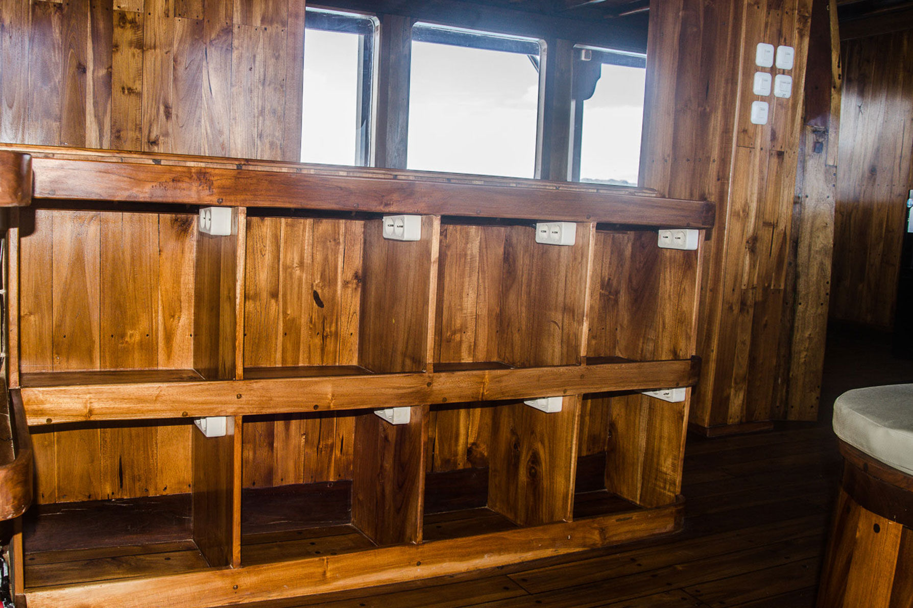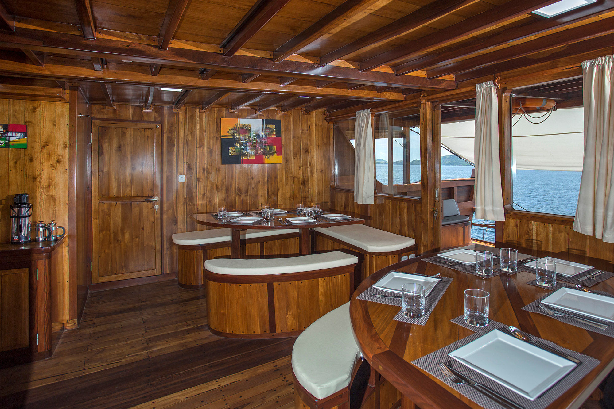 Built in Sulawesi, considered the “boatyard” of Indonesia, Jelajahi Laut is a beautiful phinisi boat constructed in 2021 with local teak wood and ironwood, ready to take you to the hottest dive spots in Indonesia. Jelajahi Laut means “Explore the Sea,” which she delivers with expeditions to Komodo, Raja Ampat, Banda Islands, Alor, and Ambon, to name a few. This traditional phinisi was designed by divers, optimizing the comforts for diver guests with a spacious equipment area and camera station, where you can gear up and prepare for your underwater adventure.
