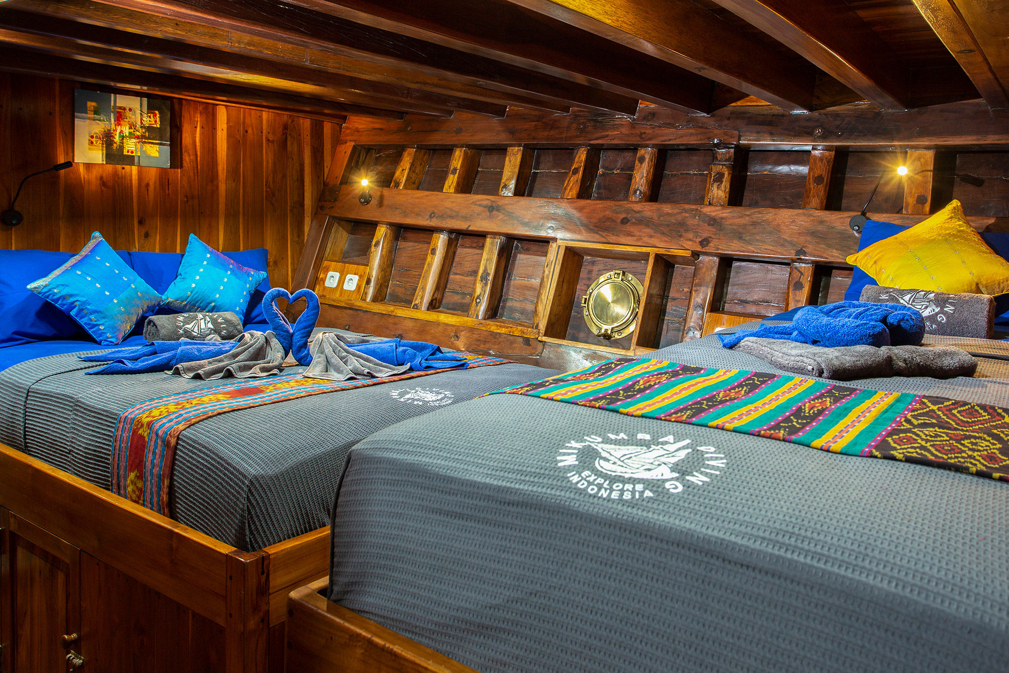 Jelajahi Laut拥有6个舒适的客舱,最多可携带14位喜爱冒险的客人,提供亲密的潜水巡航体验,探索受欢迎的潜水地和一些偏远岛屿、当地村庄和新潜水点。船上的小型本地船员和潜水导游团队热诚欢迎您成为他们家庭的一员,带您了解他们在印度尼西亚群岛的故乡。无论是在拉贾安帕特观看大洋生物,还是在安汶观察微小生物,Jelajahi Laut的本地导游知道如何在满足您的愿望清单的同时避开人群。