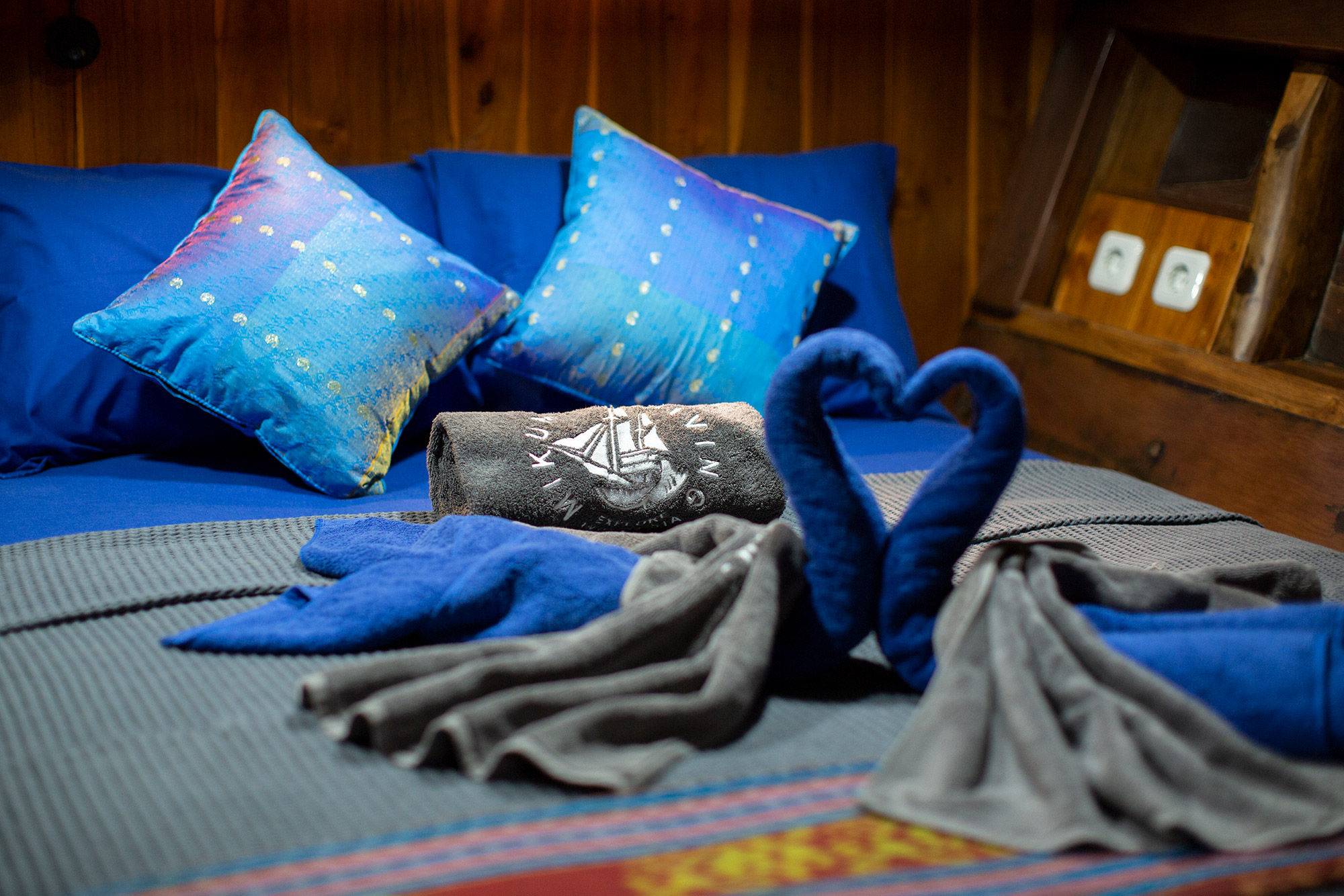 由印度尼西亚素有“船厂”之称的苏拉威西建造,Jelajahi Laut是一艘美丽的 phinisi 船,于2021年以当地的柚木和铁木建成,准备带您前往印度尼西亚最热门的潜水点。Jelajahi Laut意为“探索海洋”,她通过前往科莫多(Komodo)、拉贾安帕特(Raja Ampat)、班达群岛(Banda Islands)、阿洛(Alor)和安汶(Ambon)等地的探险实现这一目标。这艘传统的 phinisi 由潜水员设计,为潜水客人优化了舒适性,提供宽敞的设备区域和摄影器材工作台,让您可以准备并投入水下探险。