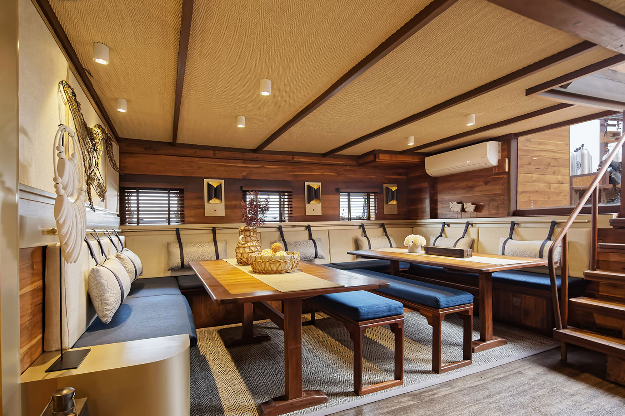 社交区域包括室内休息室、酒吧和用餐区,从您踏入的那一刻起就能感受到明亮和舒适。户外用餐甲板是享用印尼美食或在探索一天后于星空下放松的完美场所。