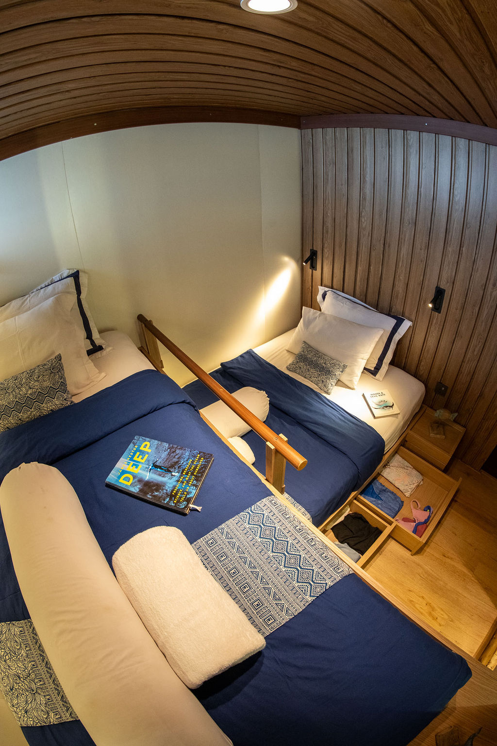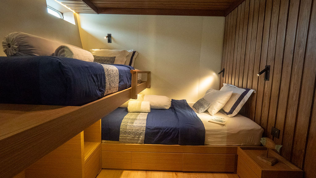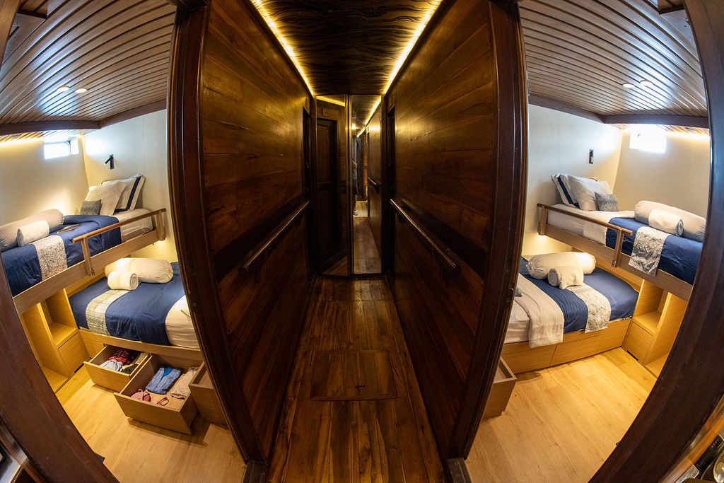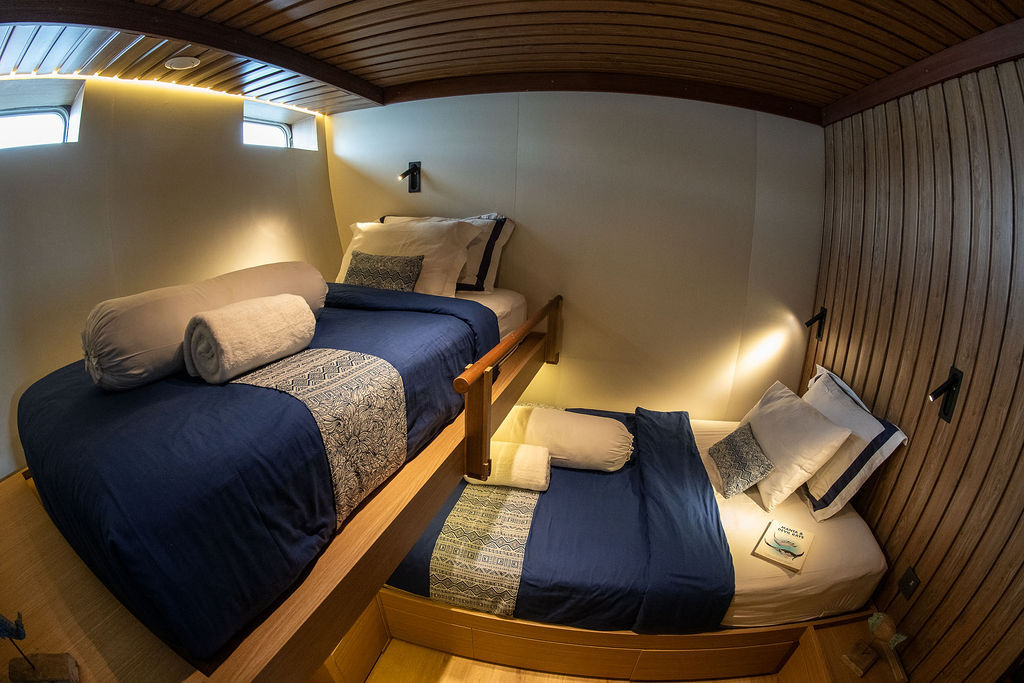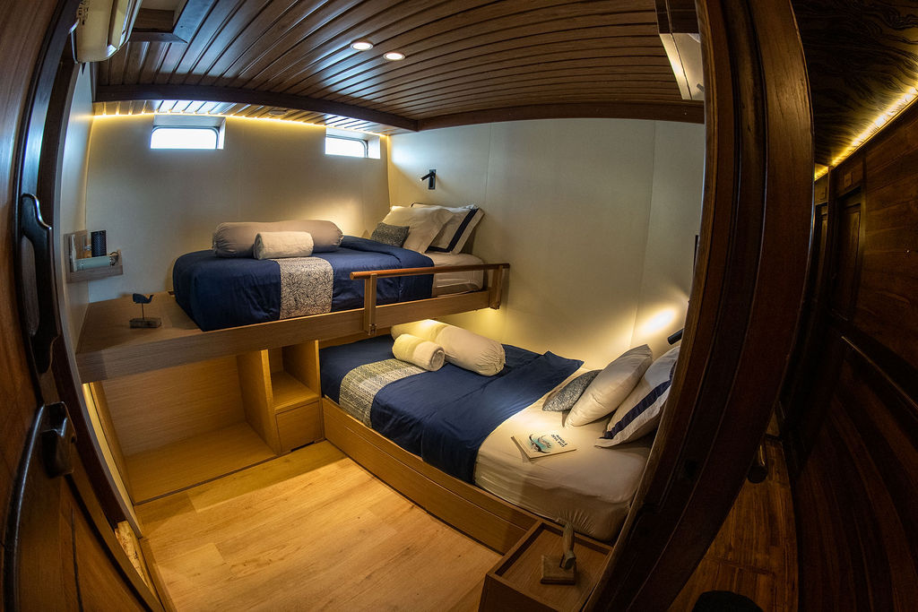 乘坐美丽的Amaya Explorer Phinisi前往印度尼西亚潜水船宿,体验一生难忘的探险之旅。Amaya Explorer结合了传统木质风格与现代化设施,提供奢华住宿,能接待16-20位客人。无论是包船航行还是加入共享航程,Amaya Explorer都能提供Komodo奢华潜水旅行所需的一切。每间客舱都配备空调,装饰典雅,设有舒适的床铺、储物空间、充电端口,以及私人浴室。