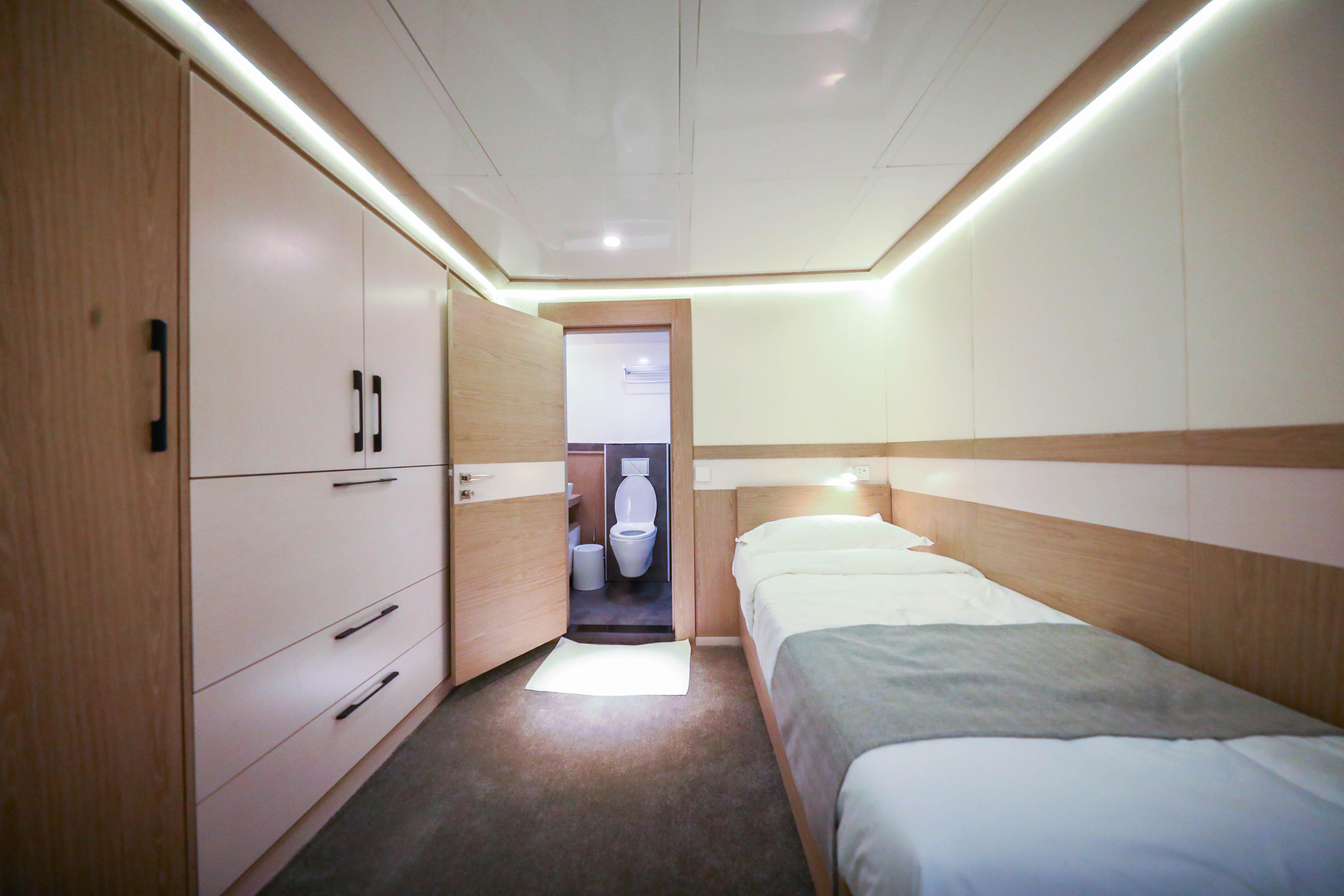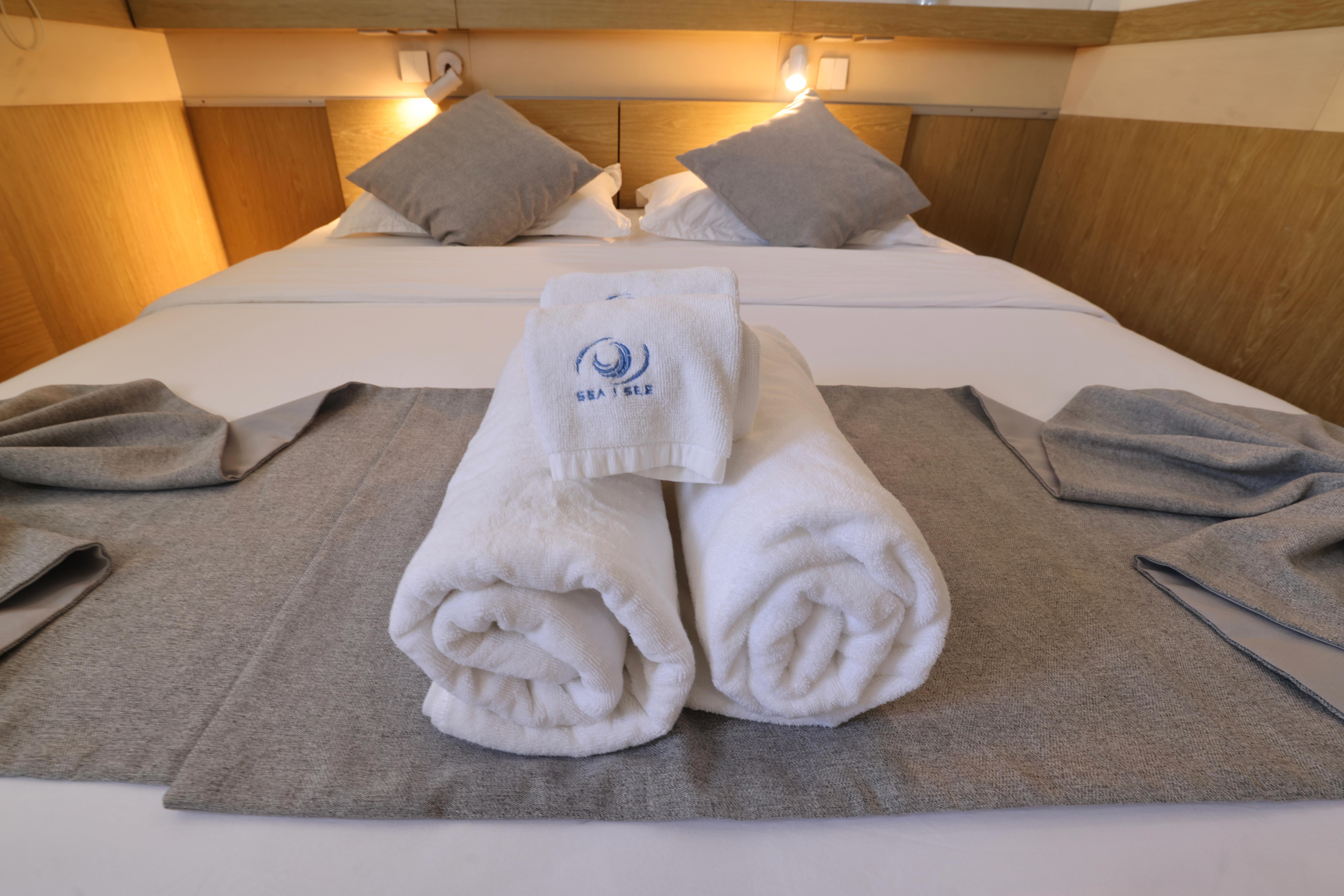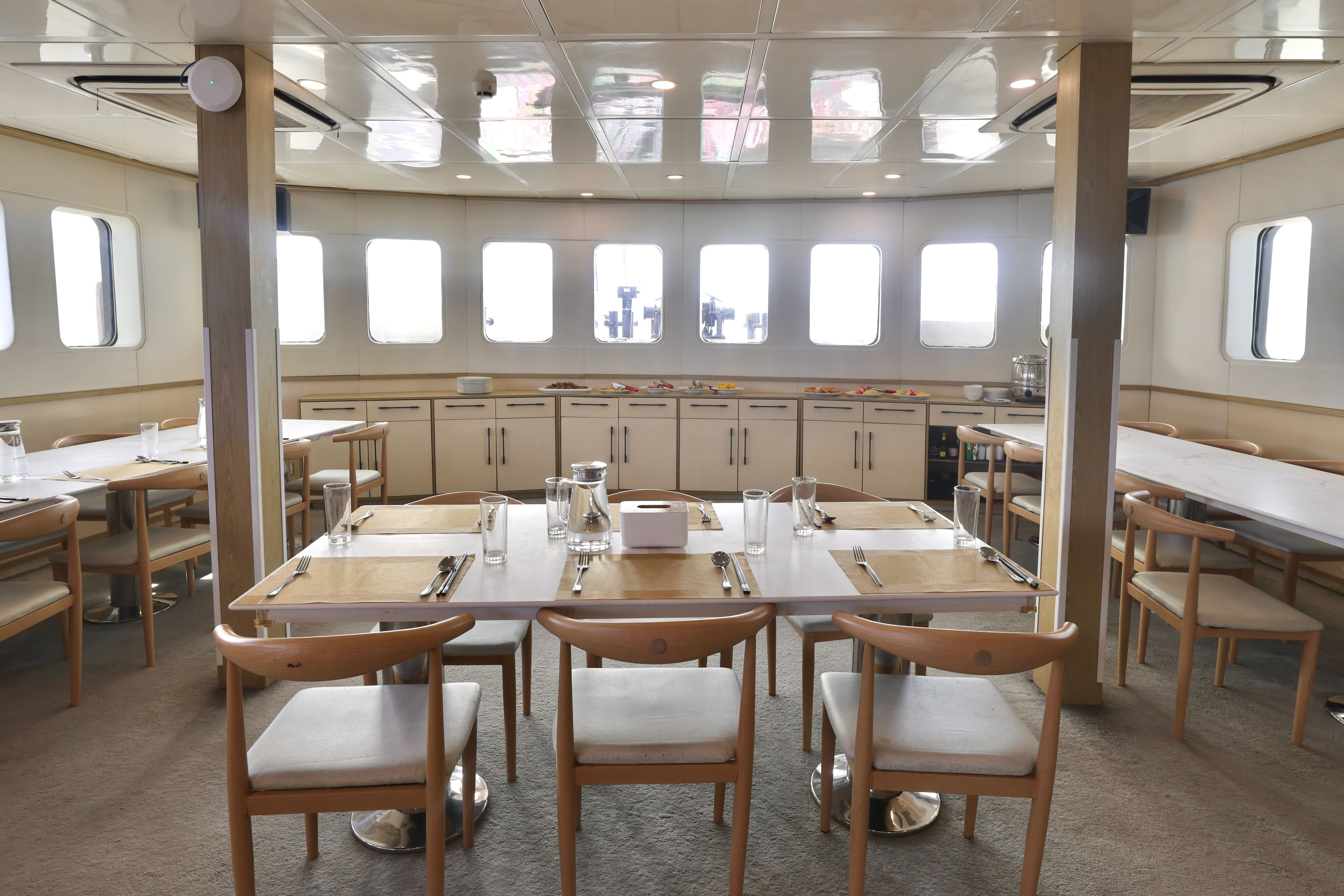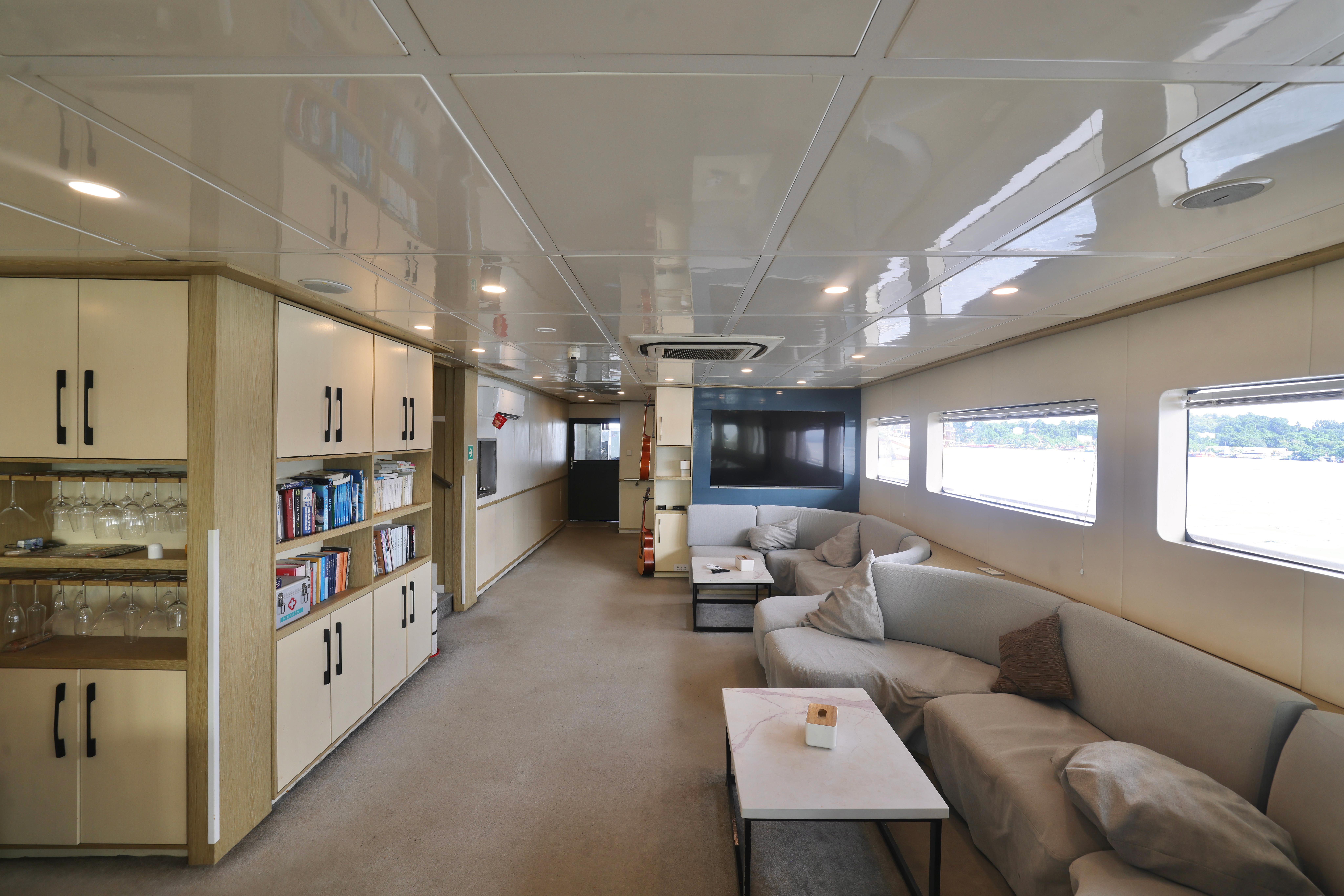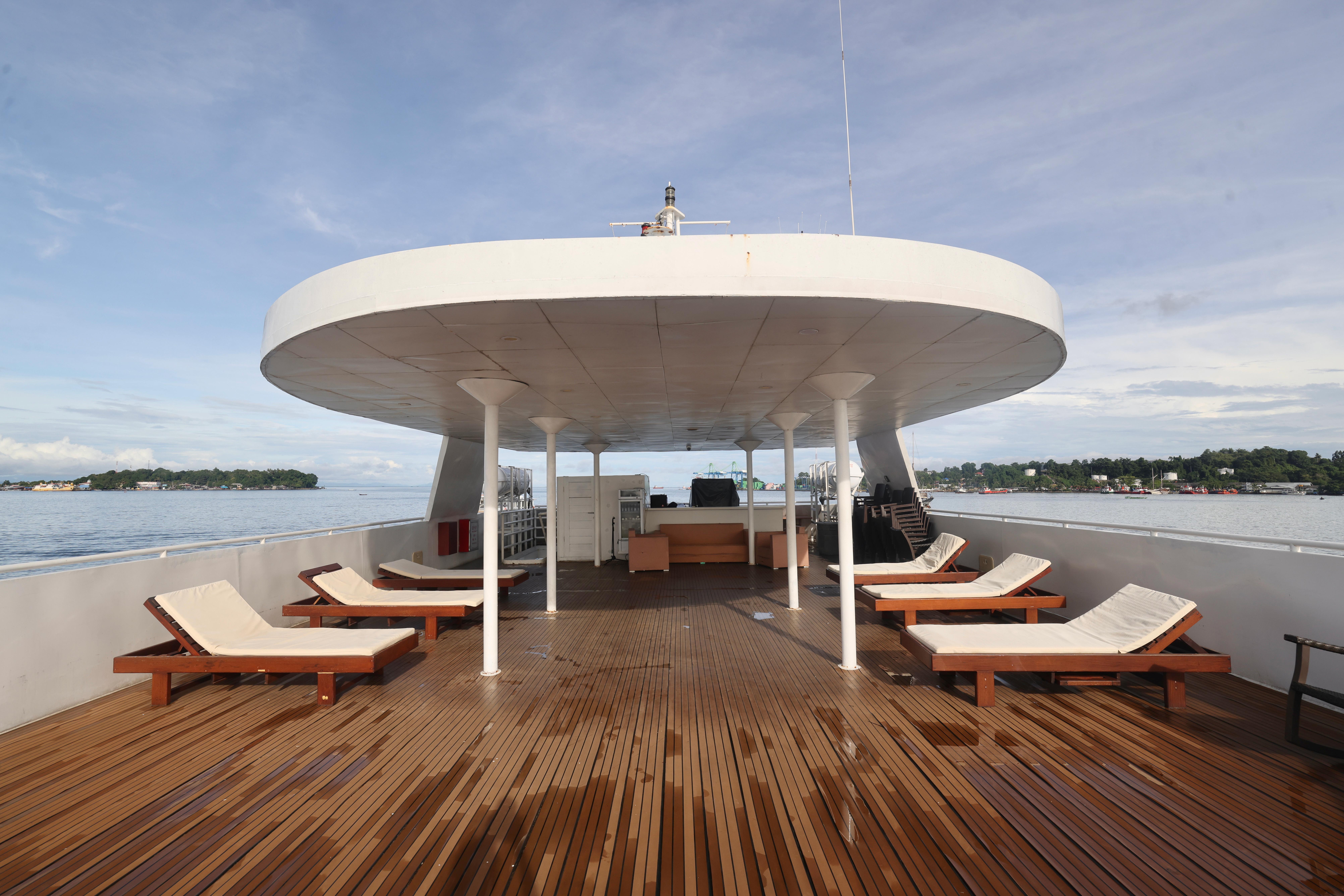 Topside, the M/V Seaisee 1 yacht has everything you would expect from a luxury floating hotel. At an impressive 45m meters in length and only catering to 24 guests, there is more than enough deck space for rest and relaxation while cruising throughout Indonesia. The upper deck has comfortable sun loungers, a hot tub, and an alfresco dining area, perfect for soaking up the sun or enjoying the sea breeze with a drink. A wide choice of cabins is available, ranging from single to Sea View with a private Jacuzzi and balcony. They all feature individually controlled AC, ample storage space, and an en-suite bathroom.