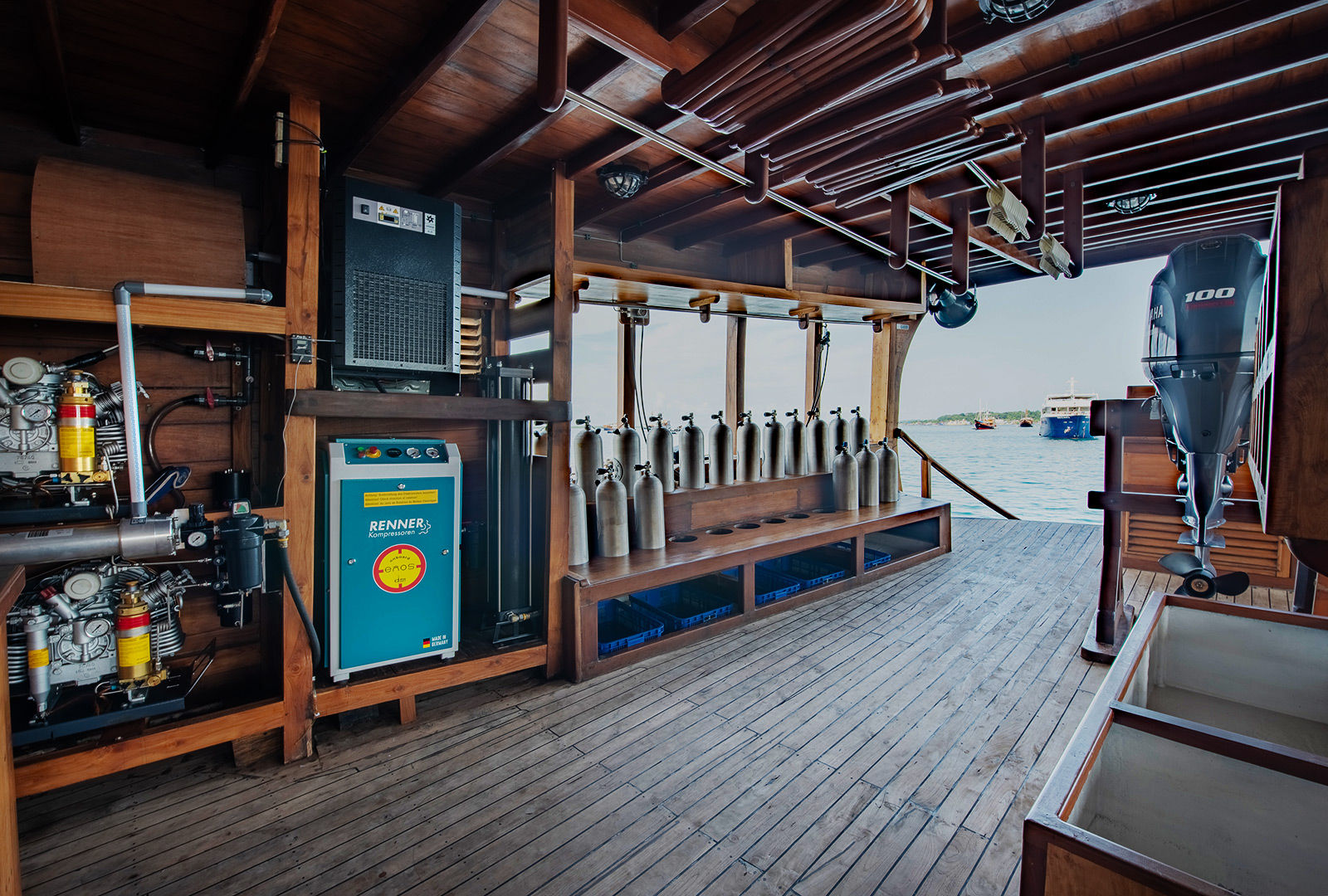Divers benefit from a dedicated dive deck with personal gear stations, refillable tanks, and easy access to dive tenders. There is also a fully equipped, air-conditioned camera room for preparing underwater photography. Between dives, guests enjoy delicious cuisine served in indoor or al fresco dining areas, and unwind on the hammock deck, in the bow’s chill-out zone, or on a sun lounger with a drink in hand.