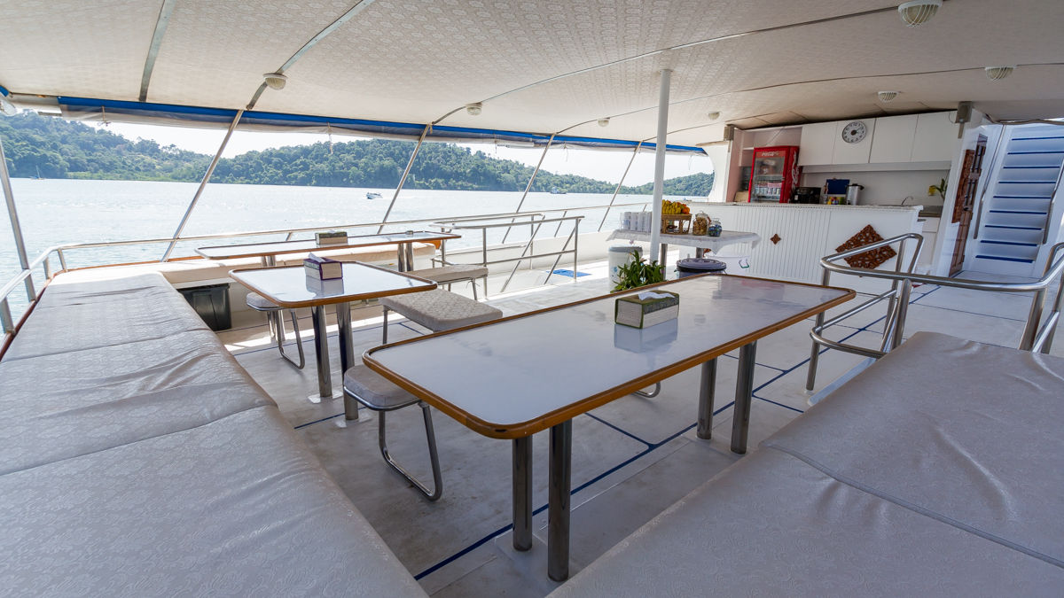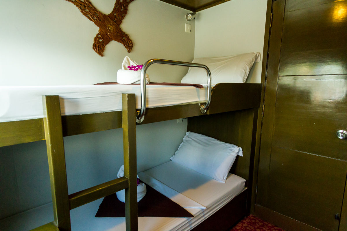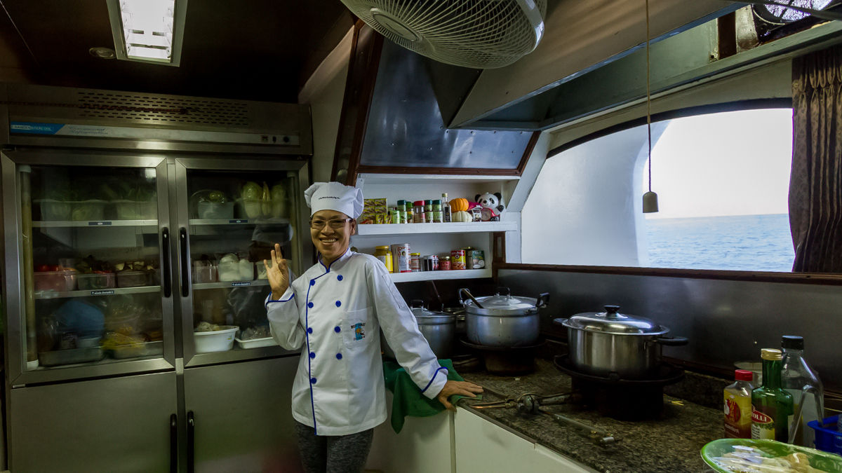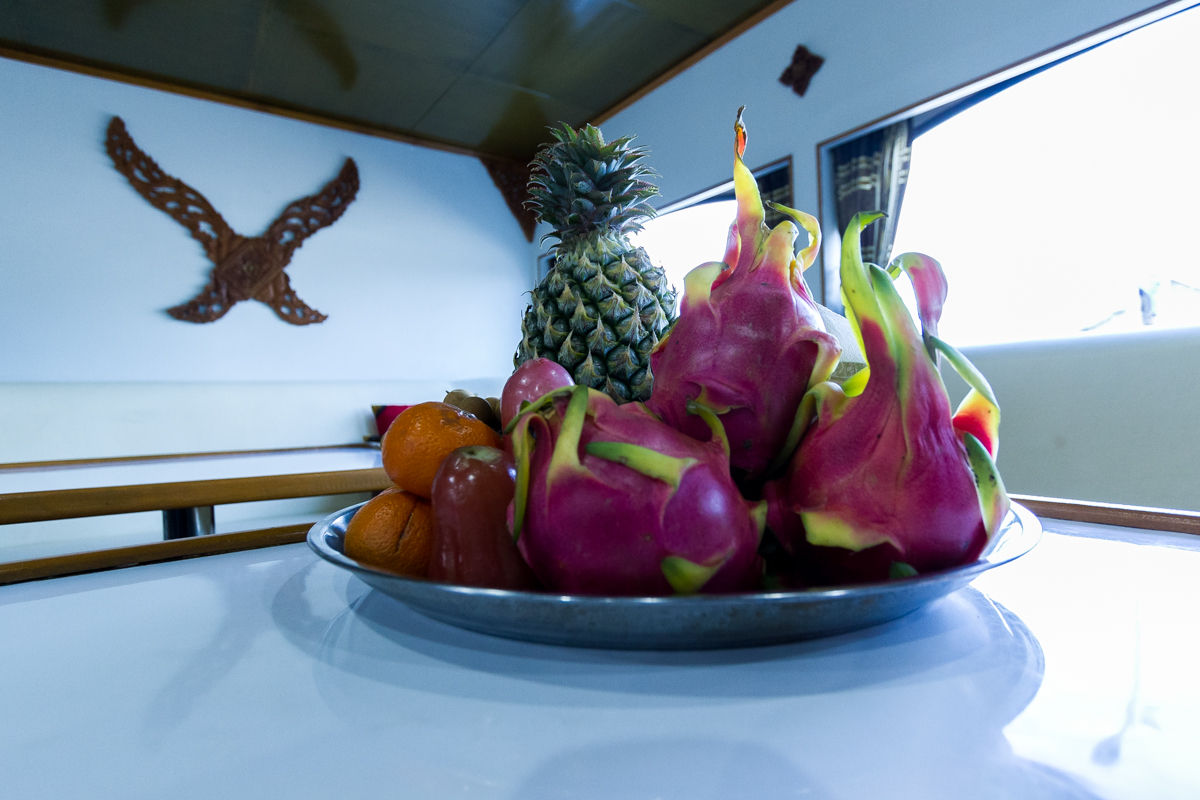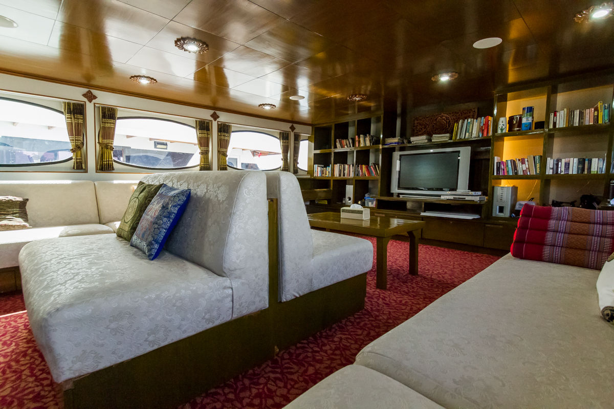 Topside, the MV Pawara Liveaboard offers 2 budget cabins with shared bathrooms and 10 cabins with en-suite bathrooms. Each cabin is air-conditioned and provides towels, toiletries, and a safety deposit box. For relaxation in between dives, guests can choose from the entertainment room equipped with a TV, DVD, sound system, karaoke, games, and more, or the sun deck with comfortable soft mattresses. In the dining room, 3 delicious Thai and International cuisine meals will be served daily, and cookies, fresh fruit, tea, coffee, and drinking water are available all day.