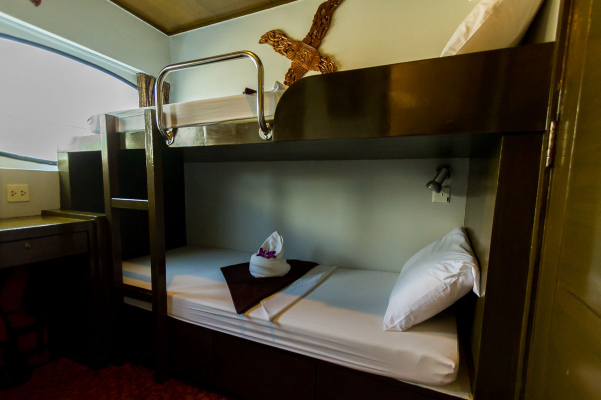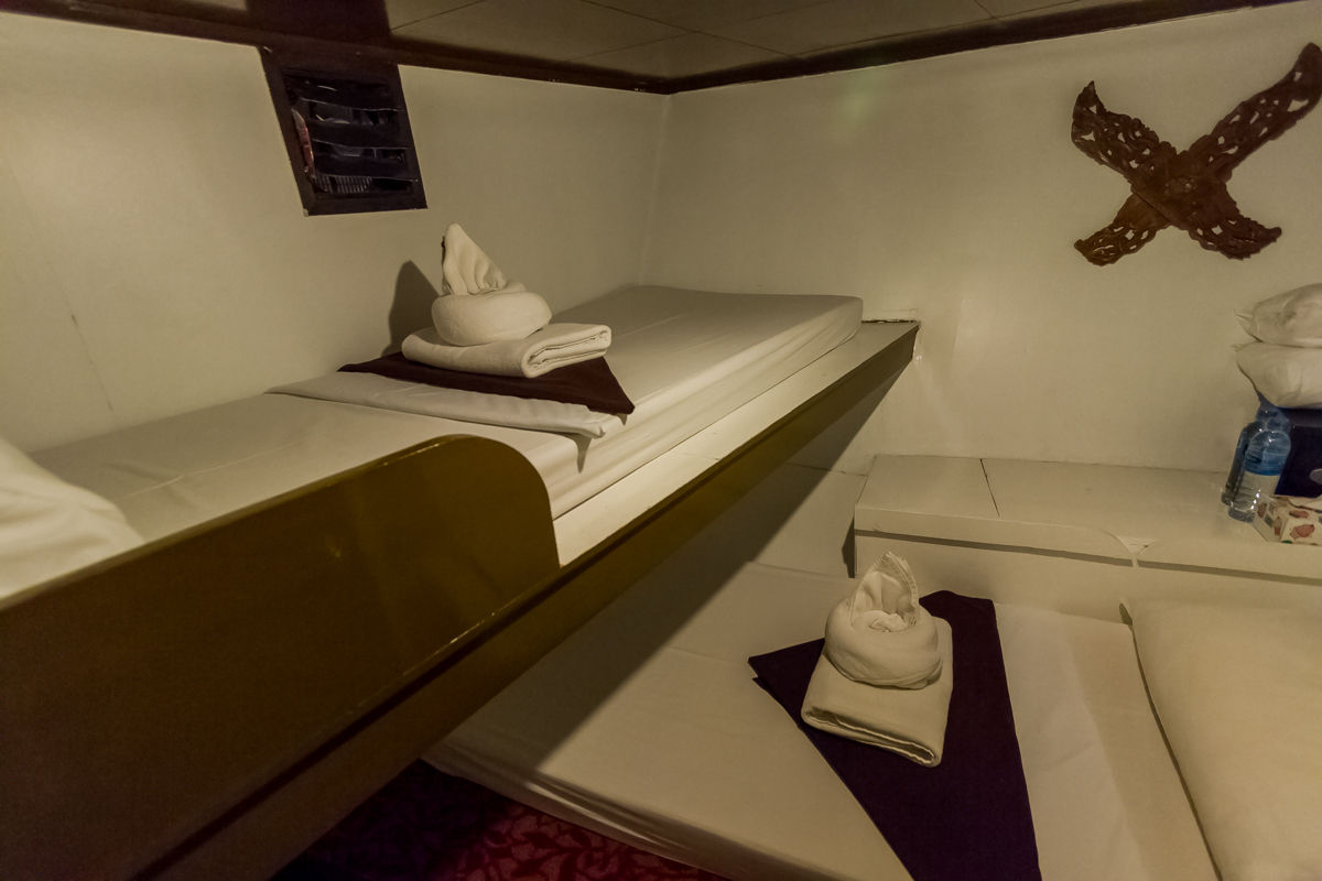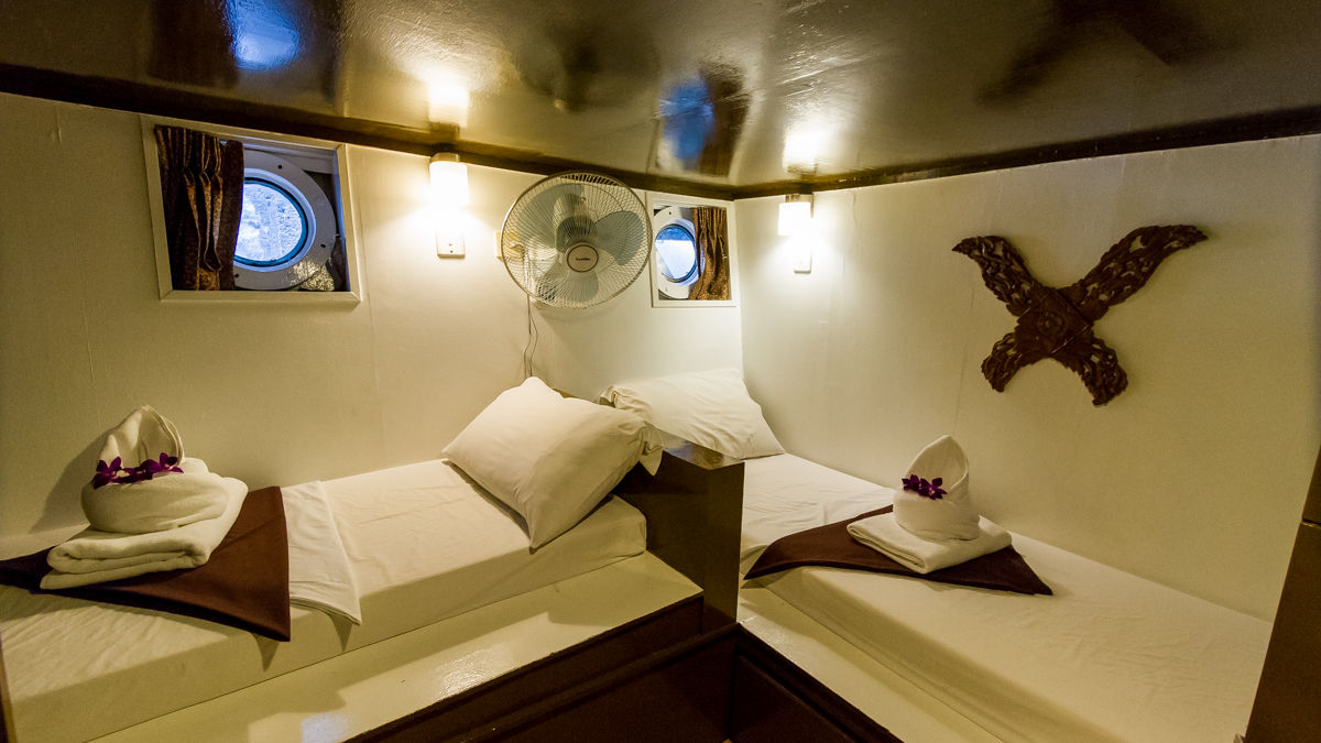 在甲板上,MV Pawara船宿提供2间带共用浴室的经济舱和10间带独立浴室的舱房。每间客舱都配备空调,提供毛巾、洗漱用品和保险箱。在潜水间隙,客人可以选择在配有电视、DVD、音响系统、卡拉OK、游戏等设备的娱乐室放松,或者在带有舒适软床垫的日光浴甲板上休息。在餐厅,提供每天三顿美味的泰国和国际美食,还有全天供应的饼干、新鲜水果、茶、咖啡和饮用水。