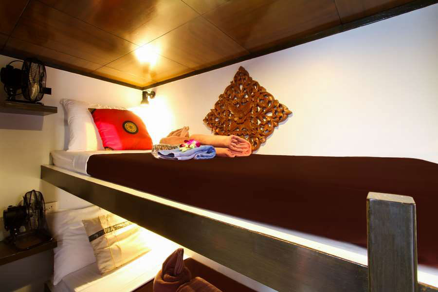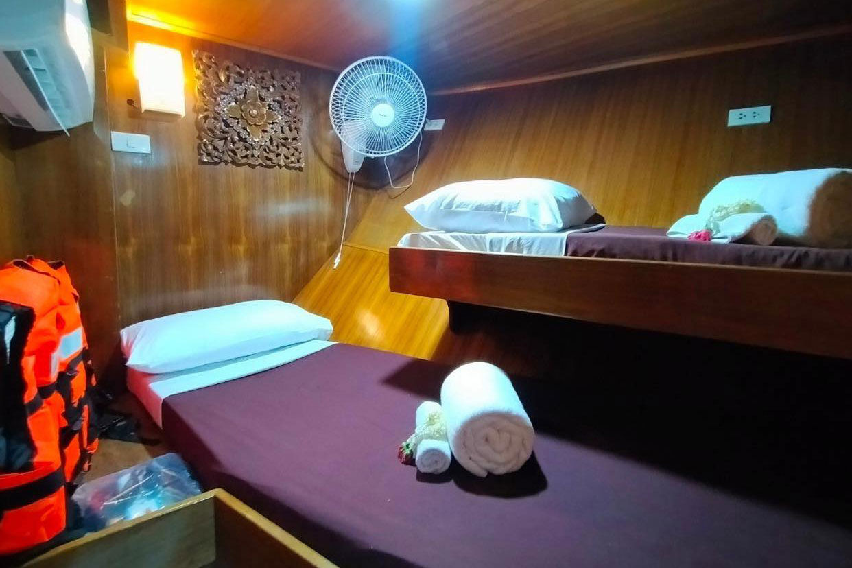 在甲板上,MV Pawara船宿提供2间带共用浴室的经济舱和10间带独立浴室的舱房。每间客舱都配备空调,提供毛巾、洗漱用品和保险箱。在潜水间隙,客人可以选择在配有电视、DVD、音响系统、卡拉OK、游戏等设备的娱乐室放松,或者在带有舒适软床垫的日光浴甲板上休息。在餐厅,提供每天三顿美味的泰国和国际美食,还有全天供应的饼干、新鲜水果、茶、咖啡和饮用水。